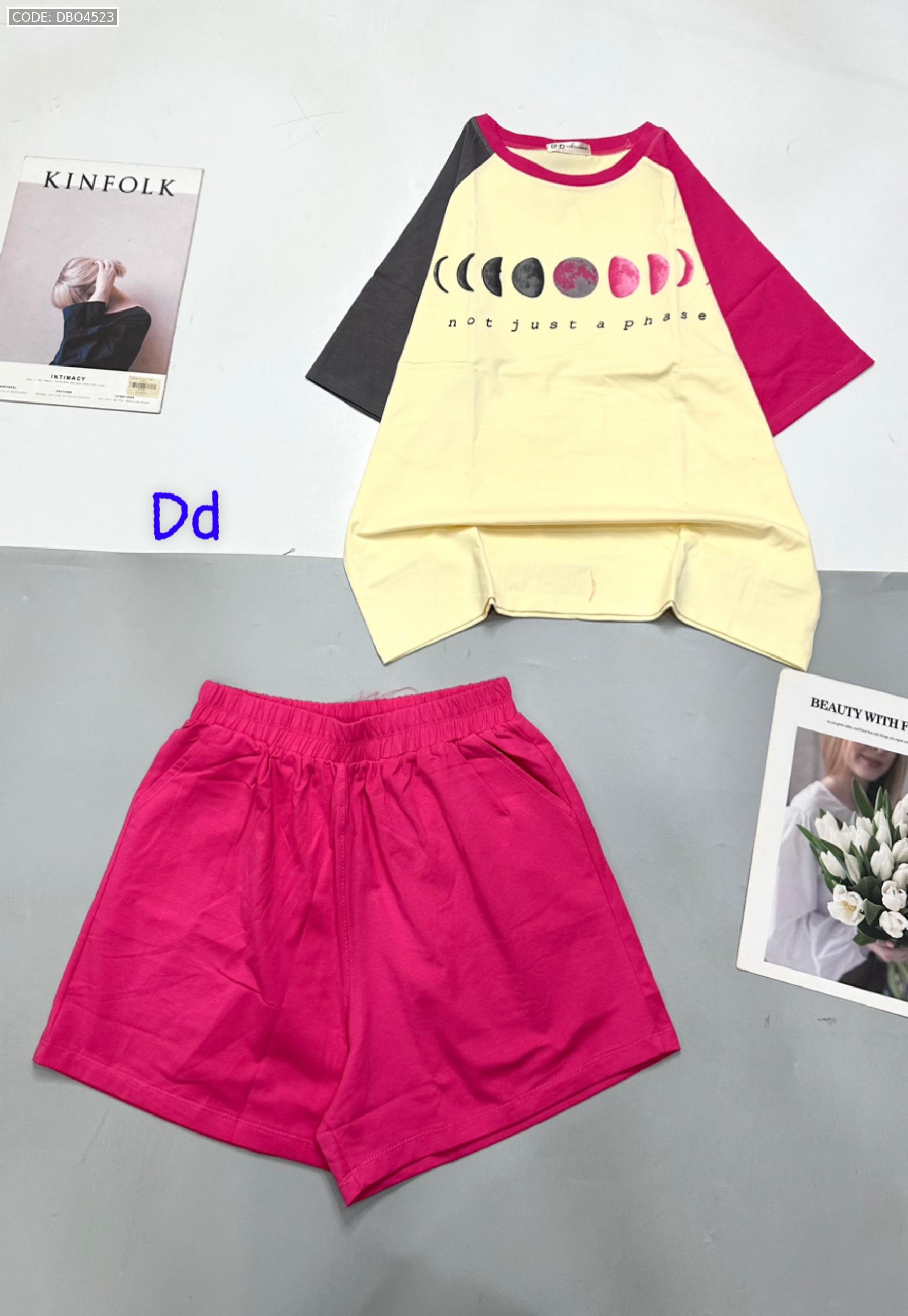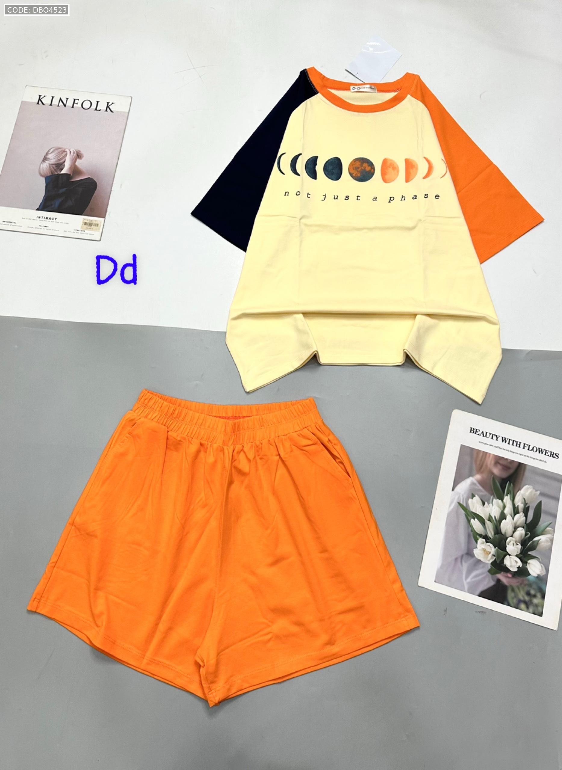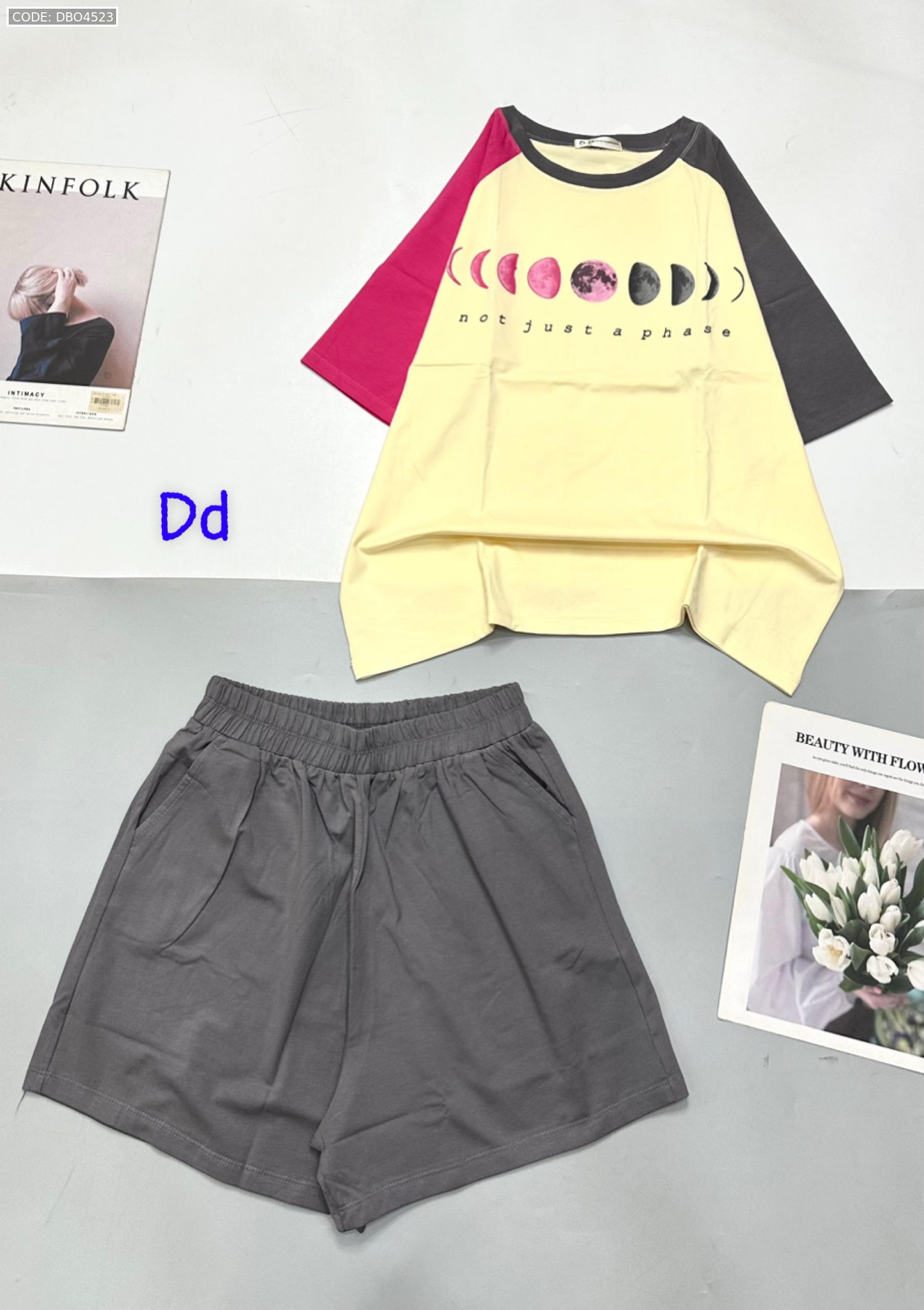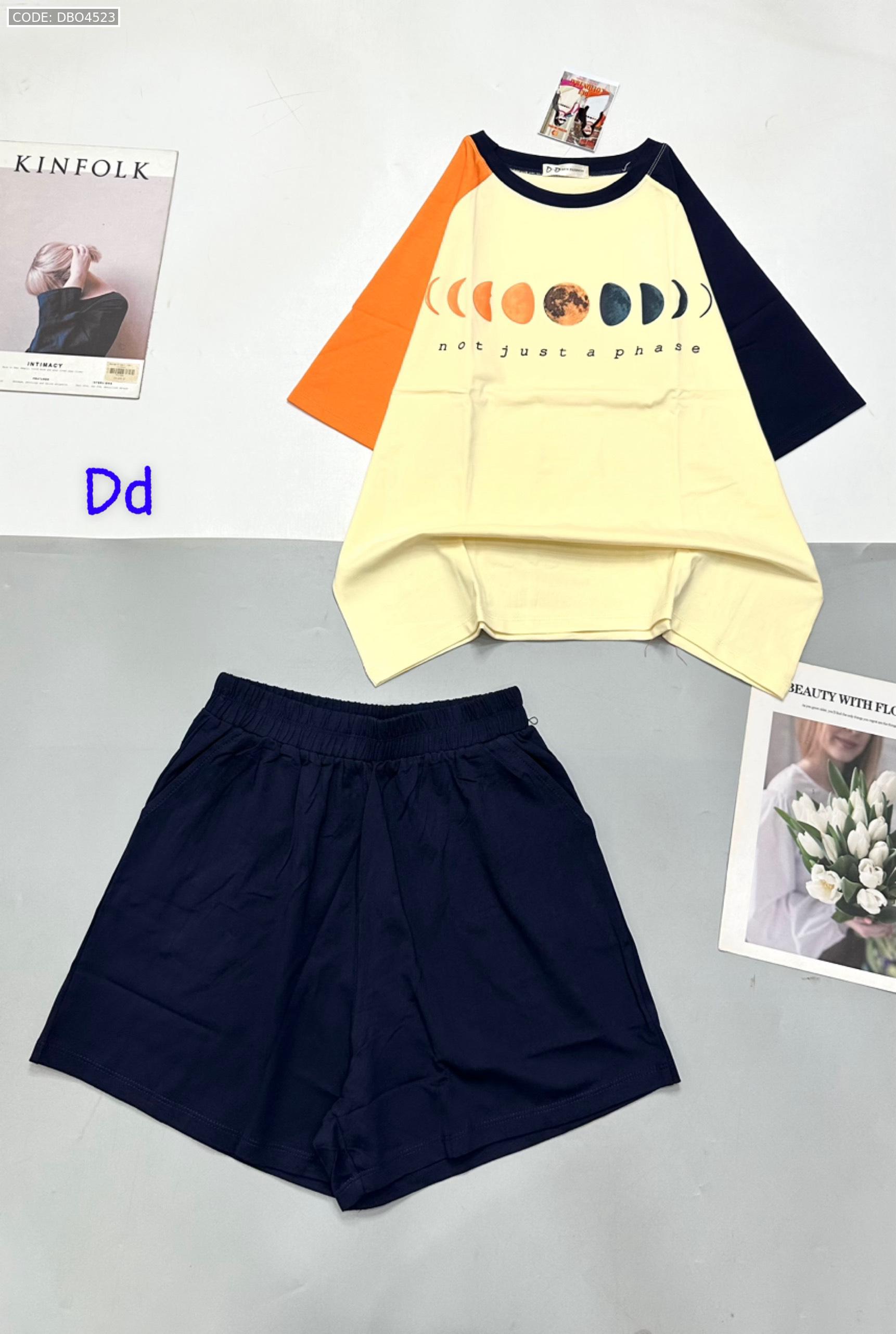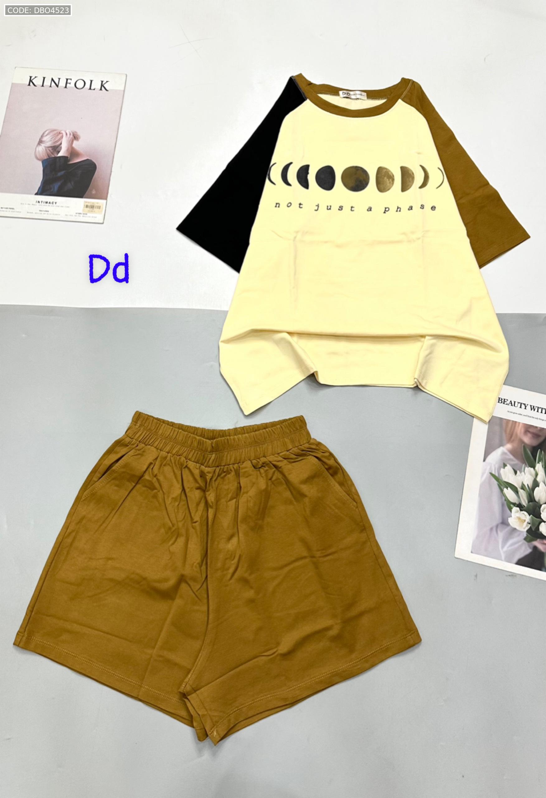 Đồ bộ quần đùi áo tay ngắn in hình trái đất tay hai màu