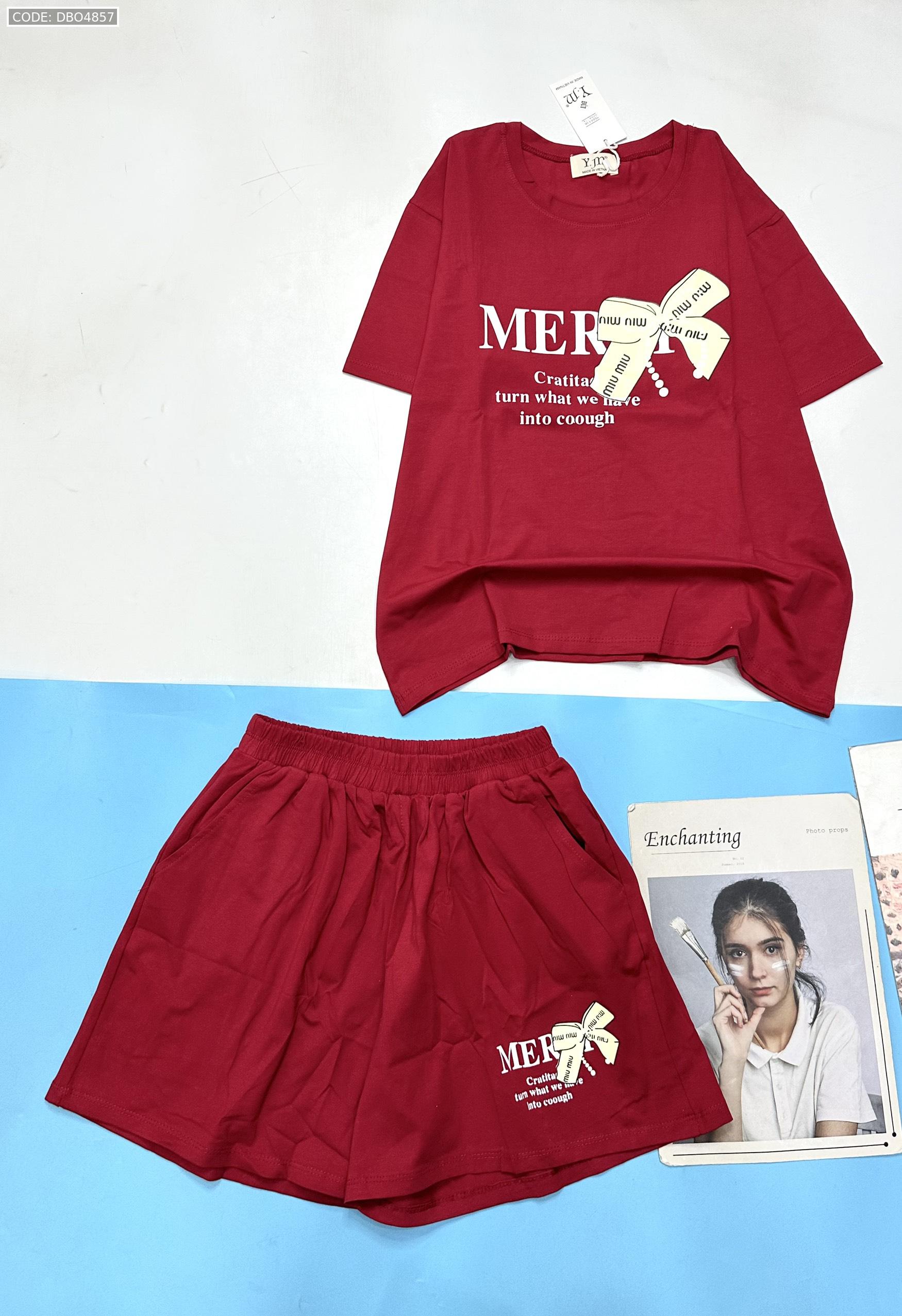 đồ bộ quần đùi áo tay ngắn in nơ nổi