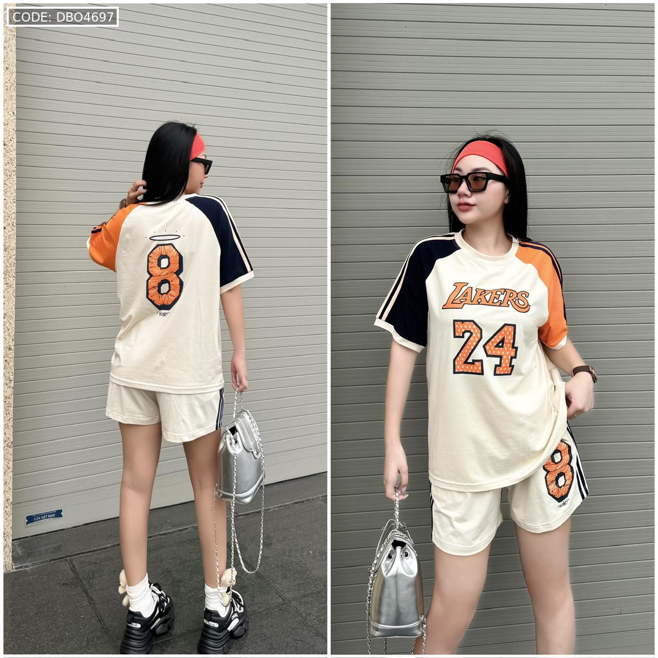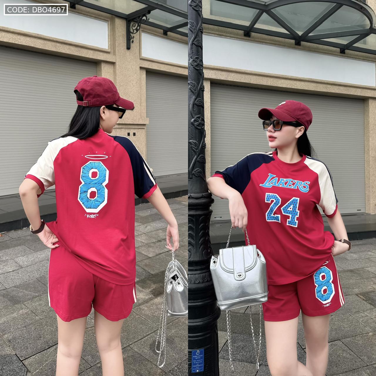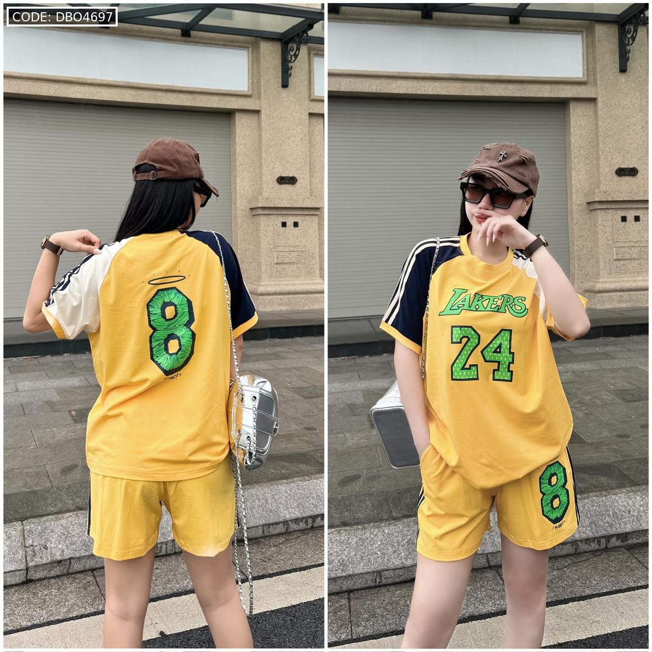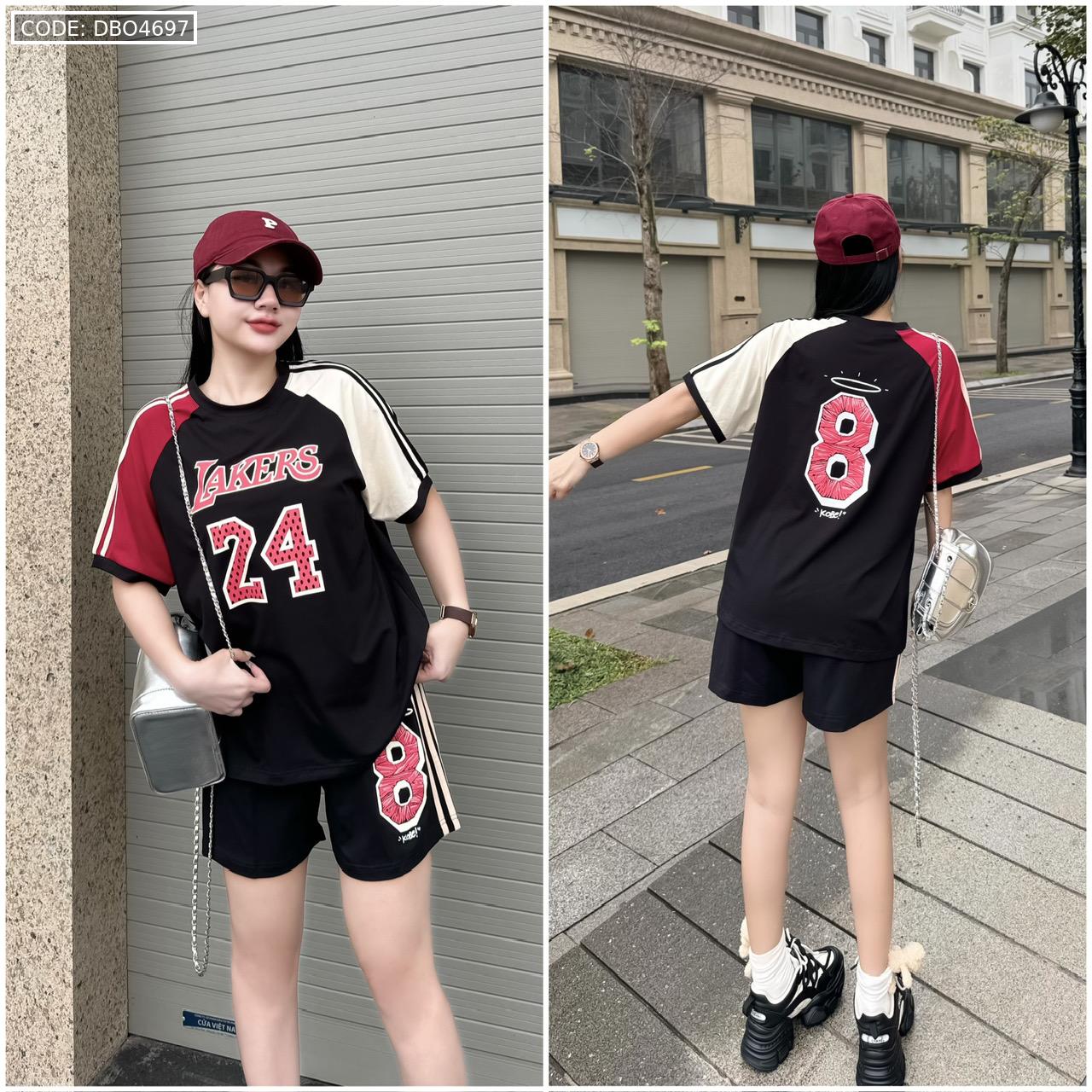 Đồ bộ quần đùi áo tay ngắn in số 8 và 24 tay 2 màu