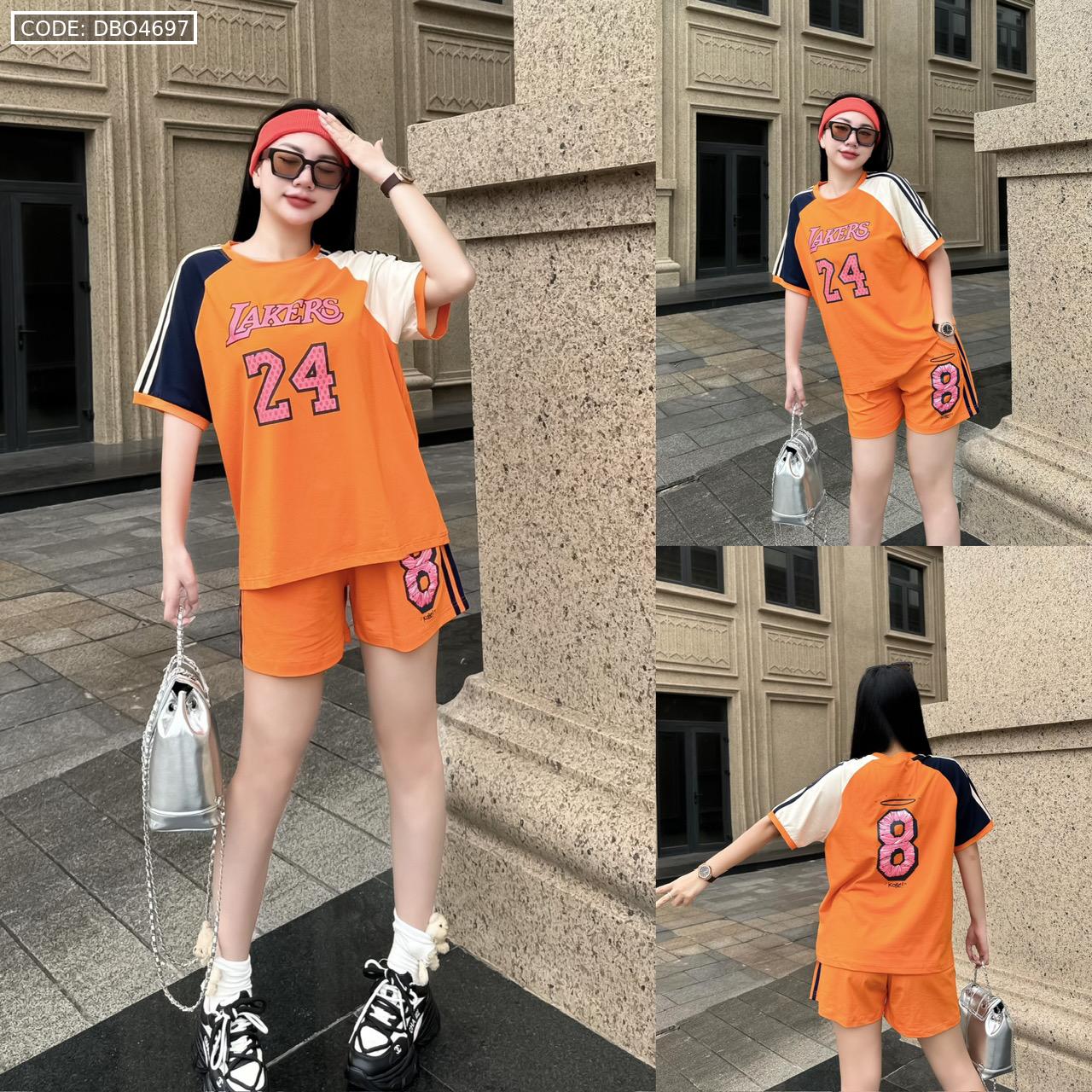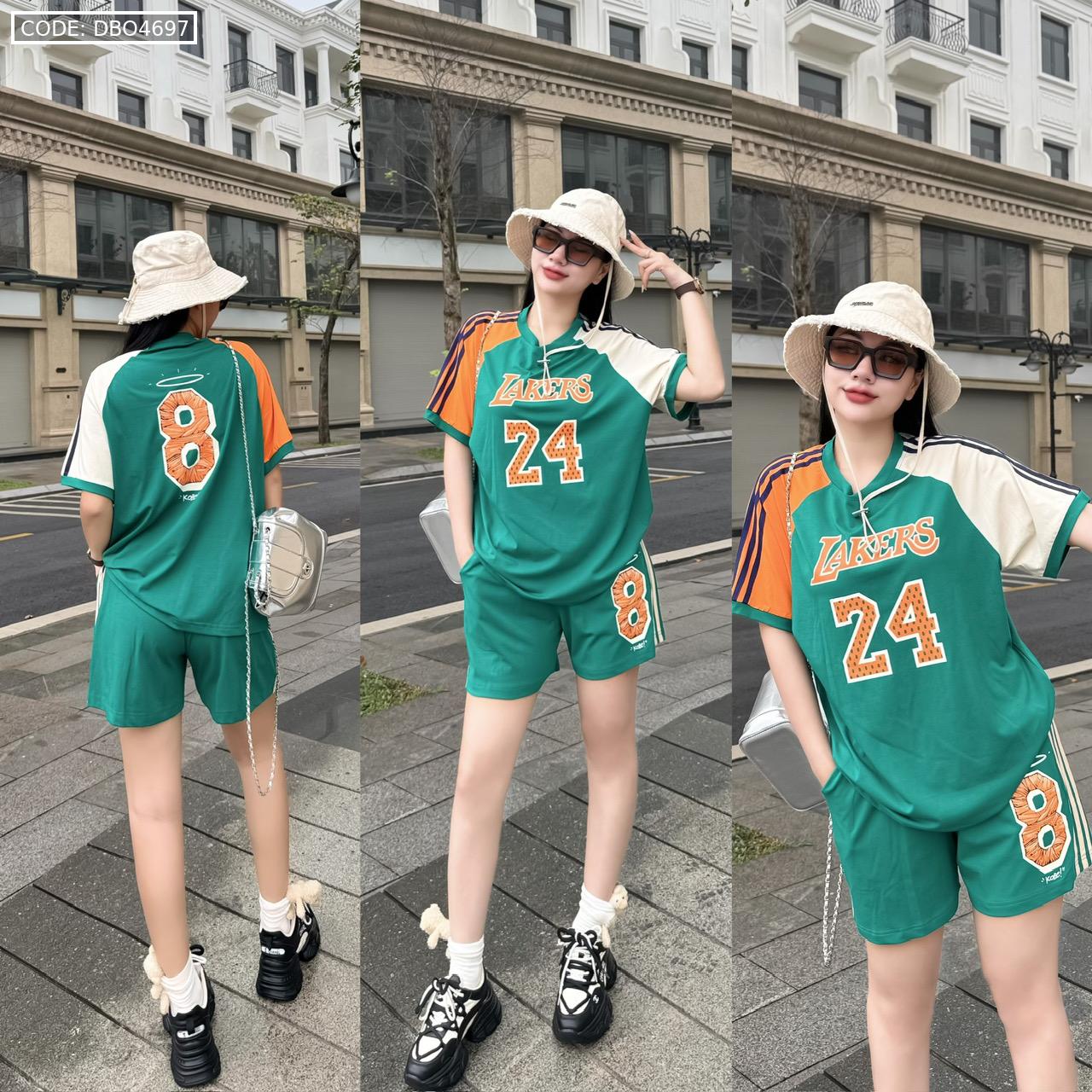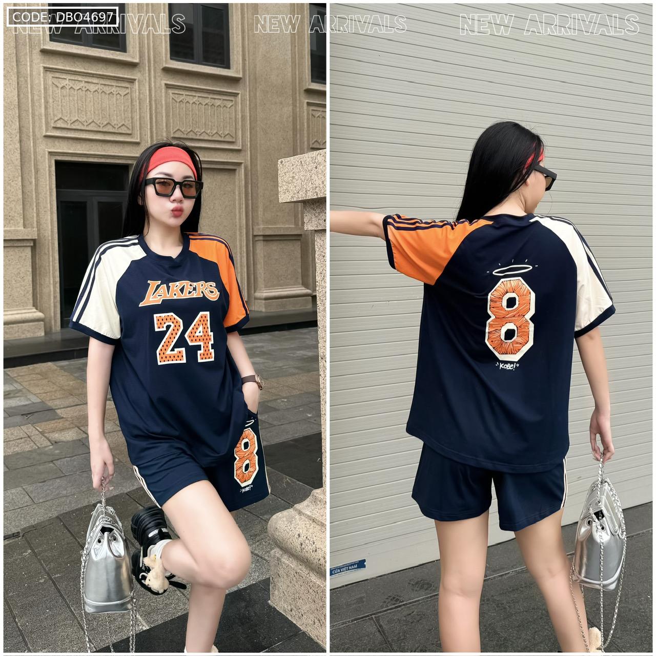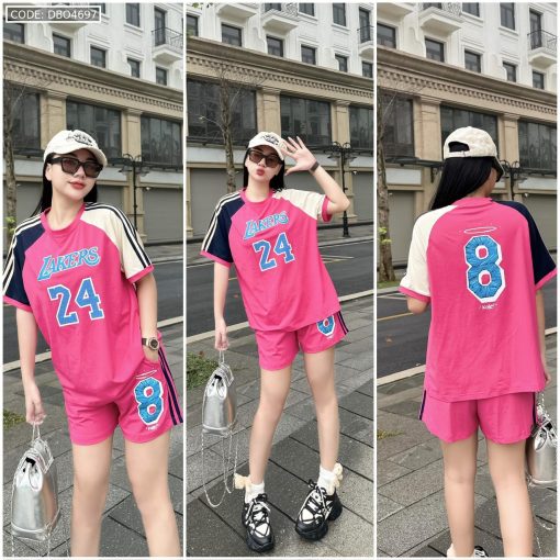 Đồ bộ quần đùi áo tay ngắn in số 8 và 24 tay 2 màu