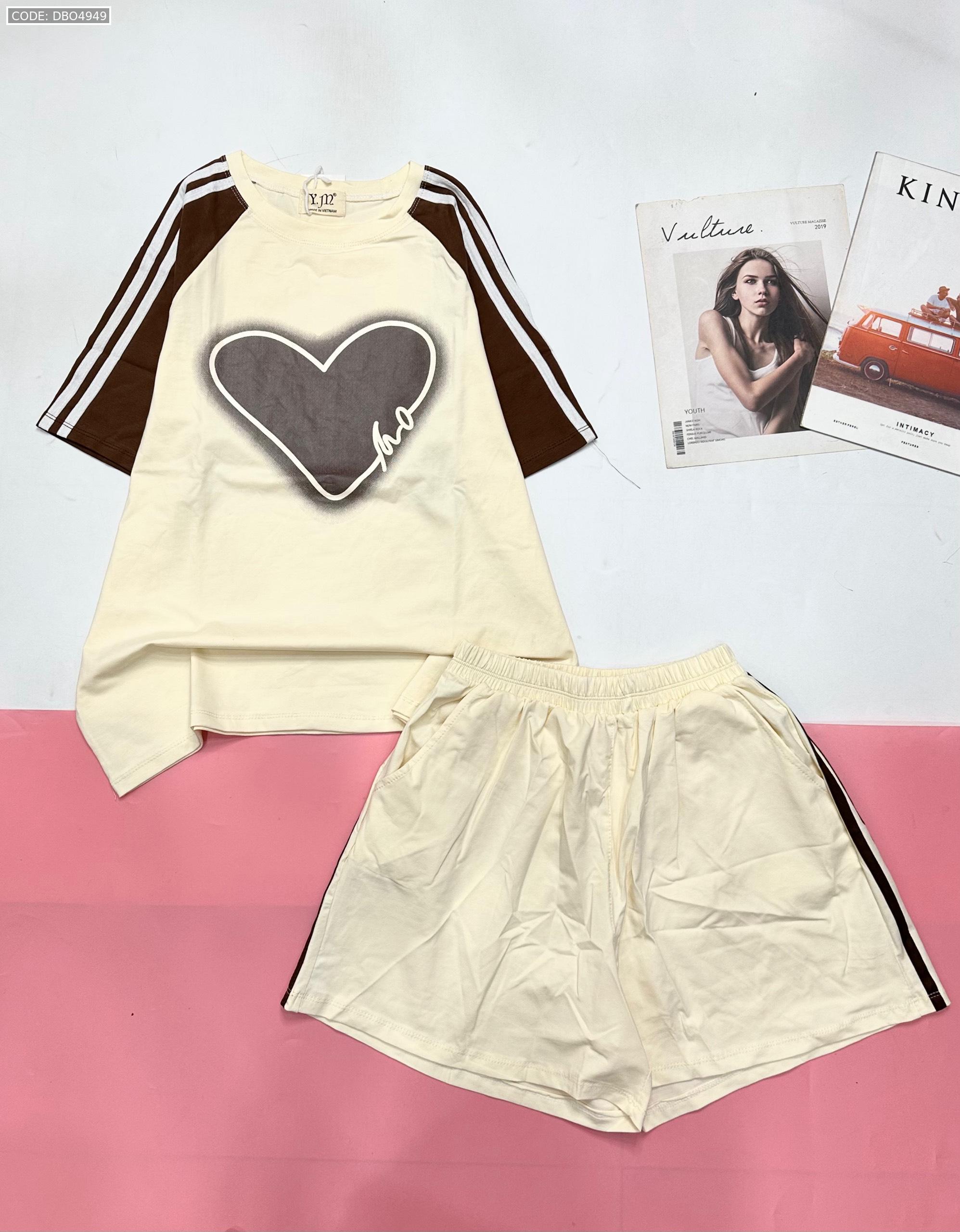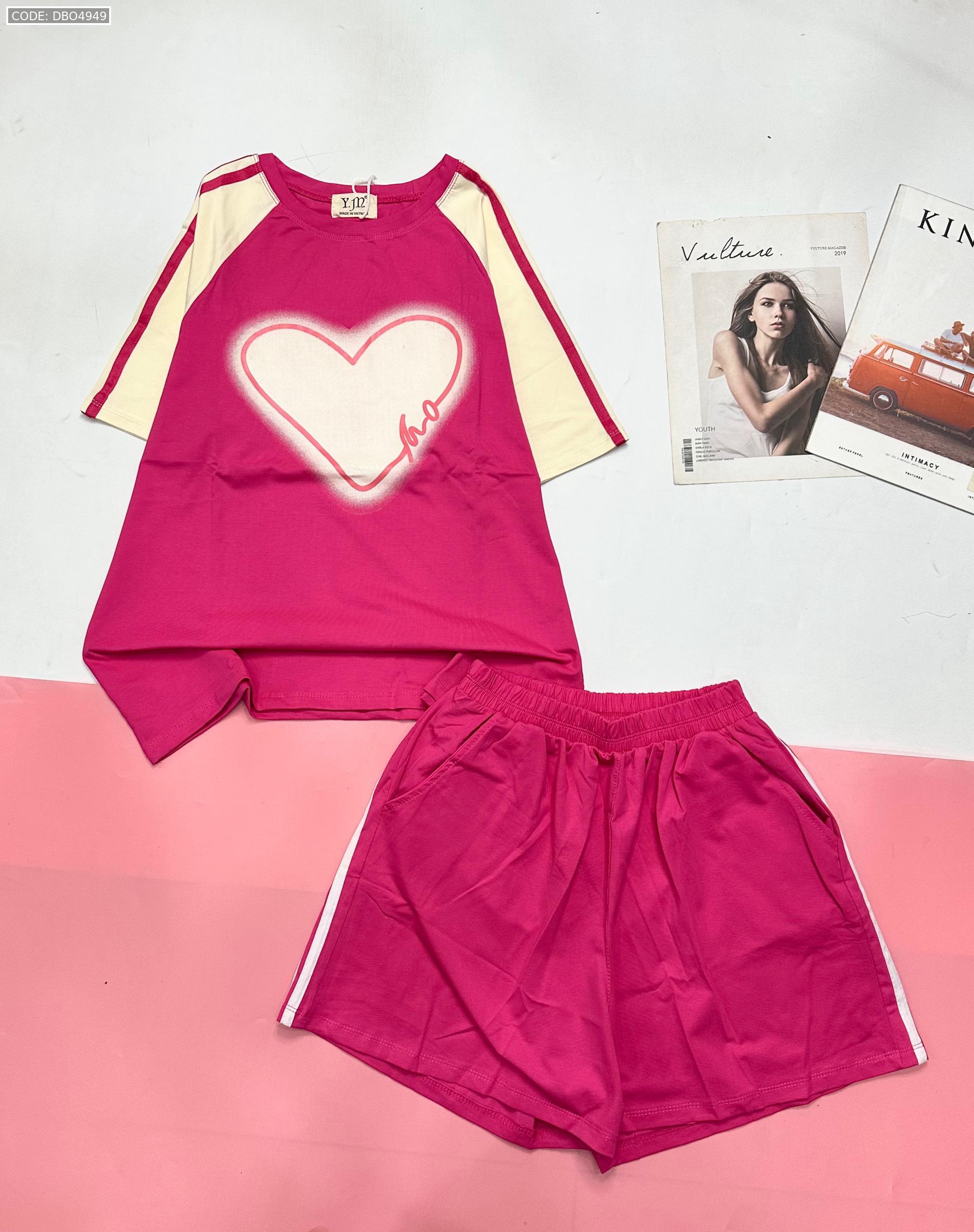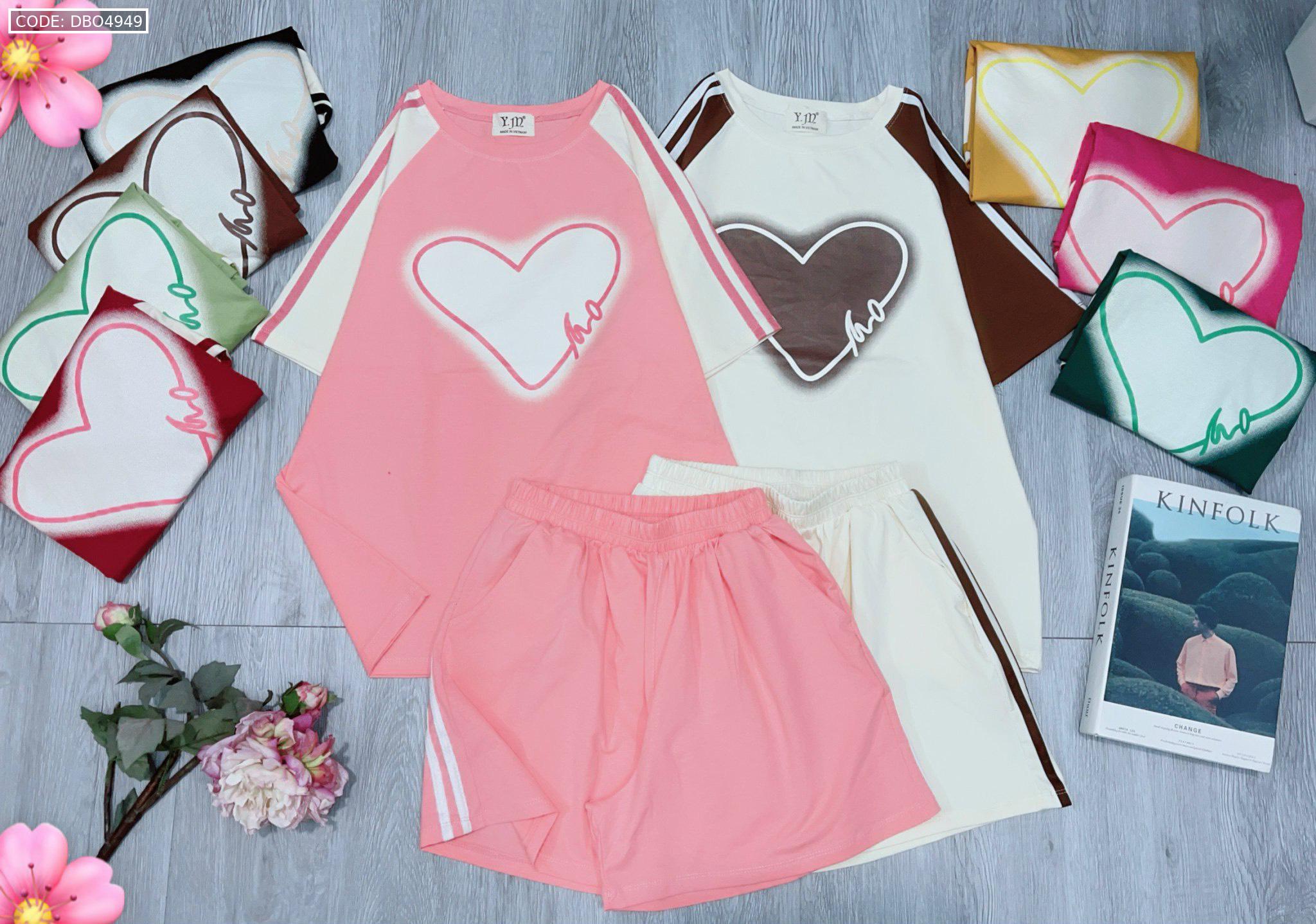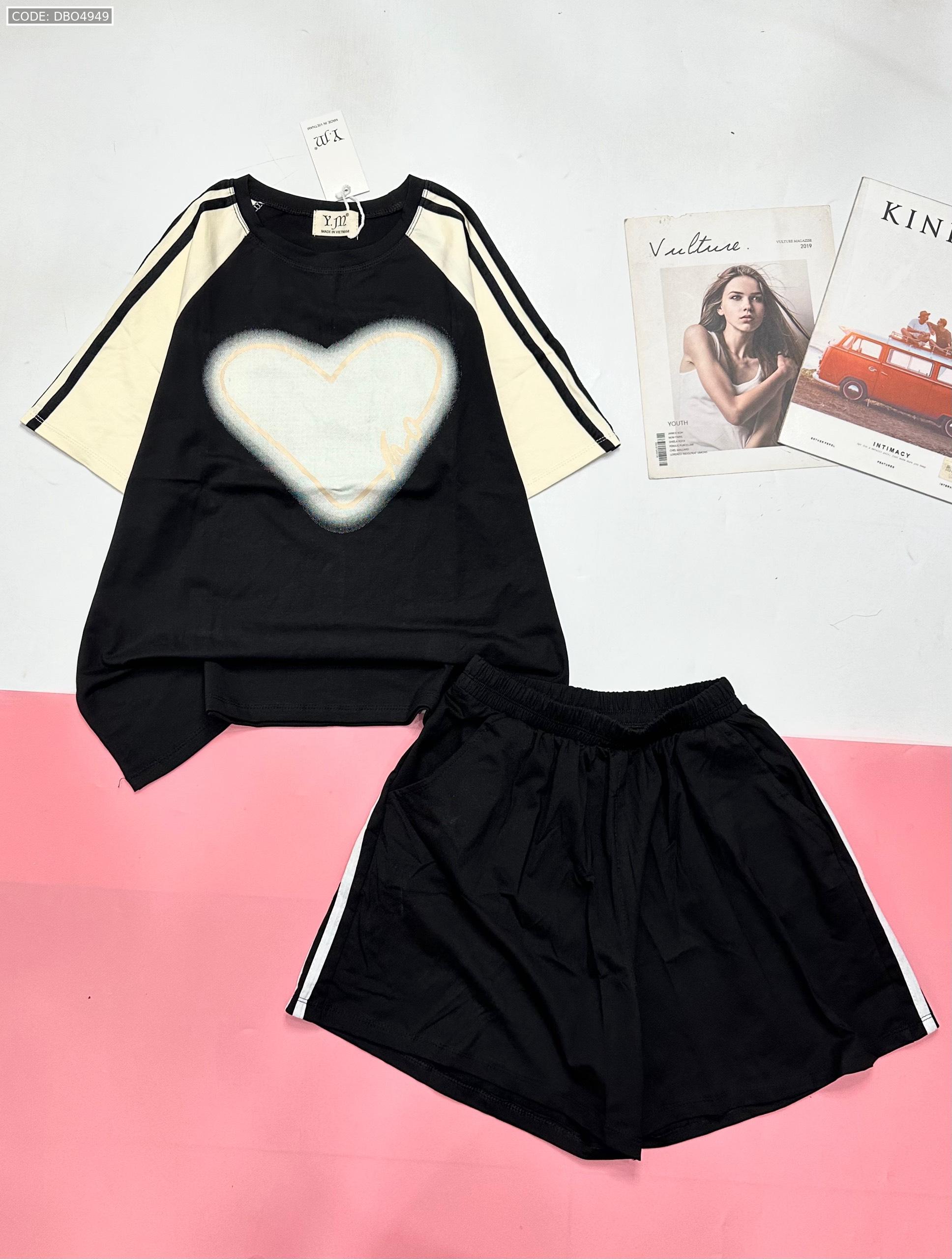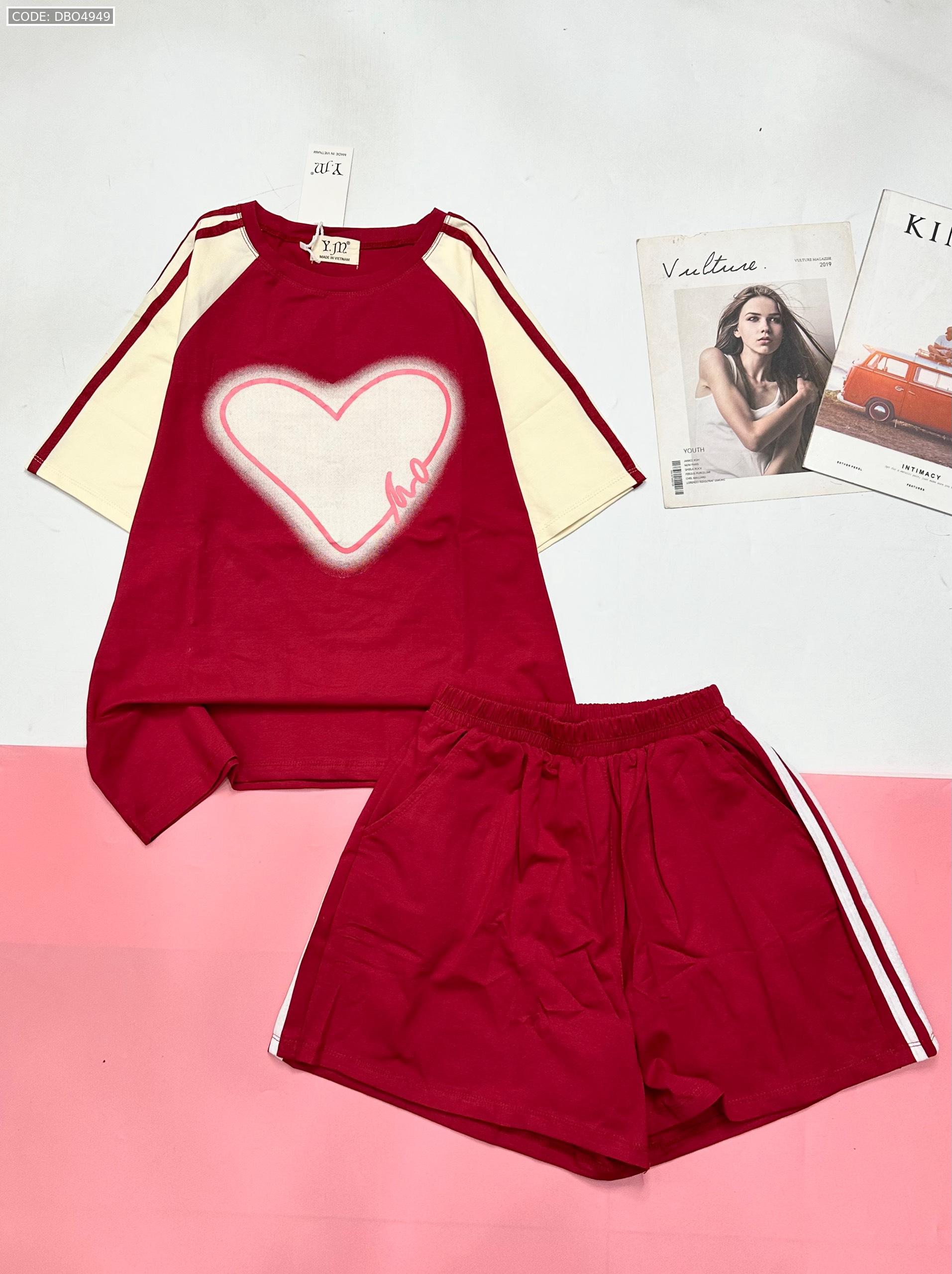 Đồ bộ quần đùi áo tay ngắn in trái tim lớn