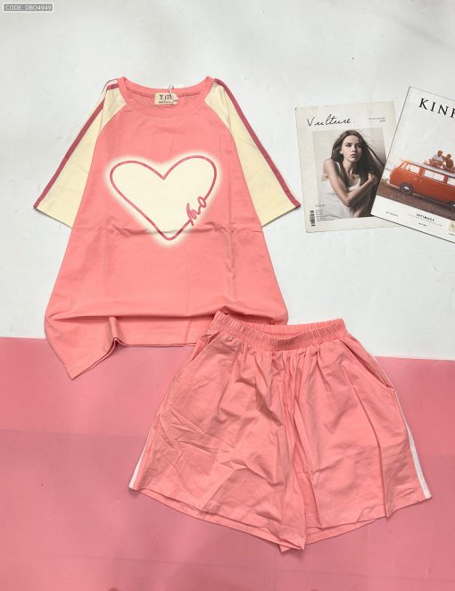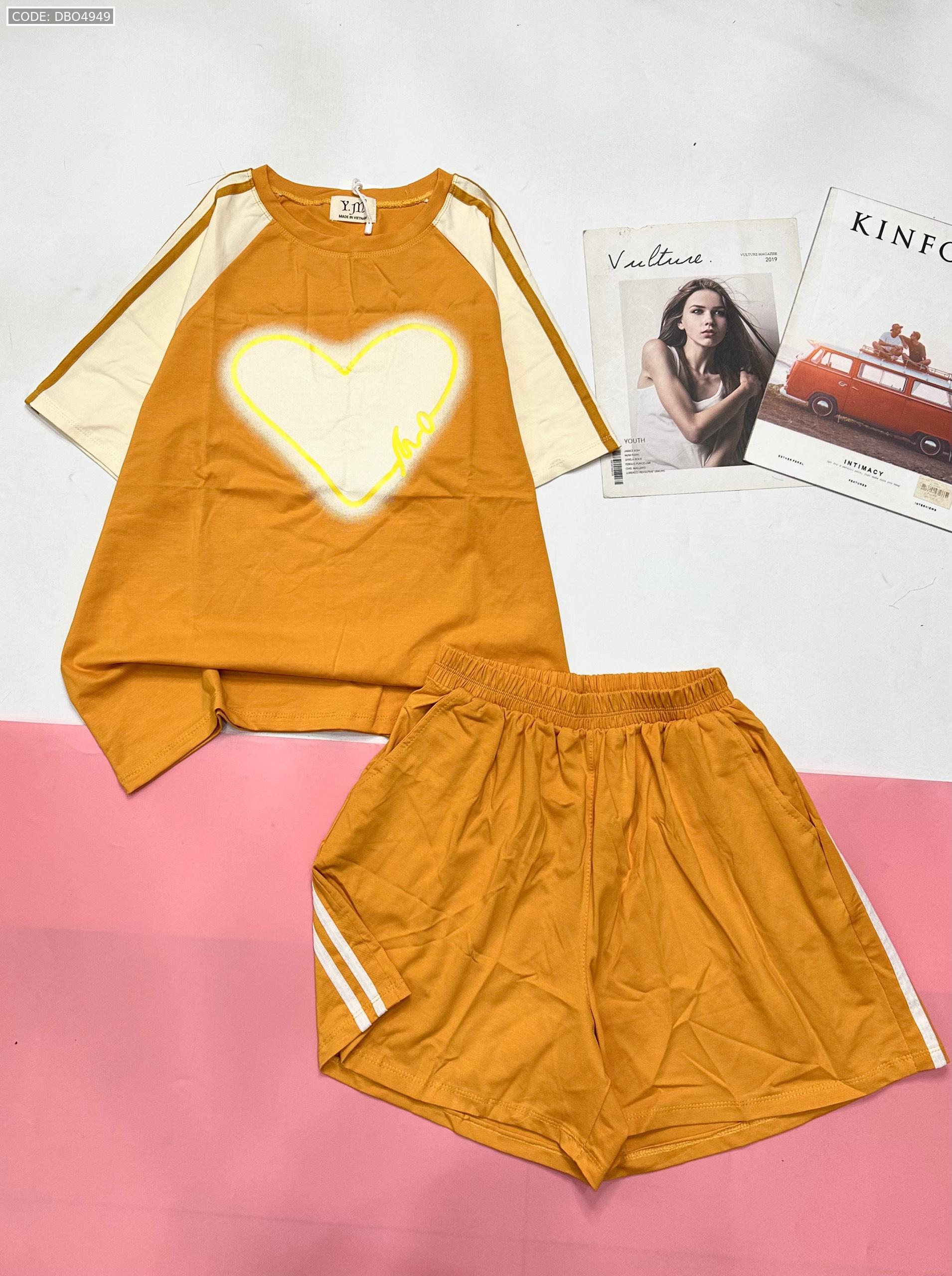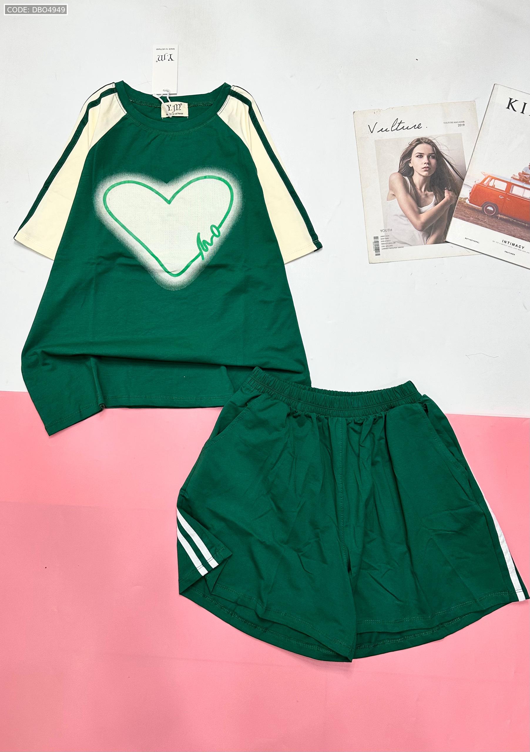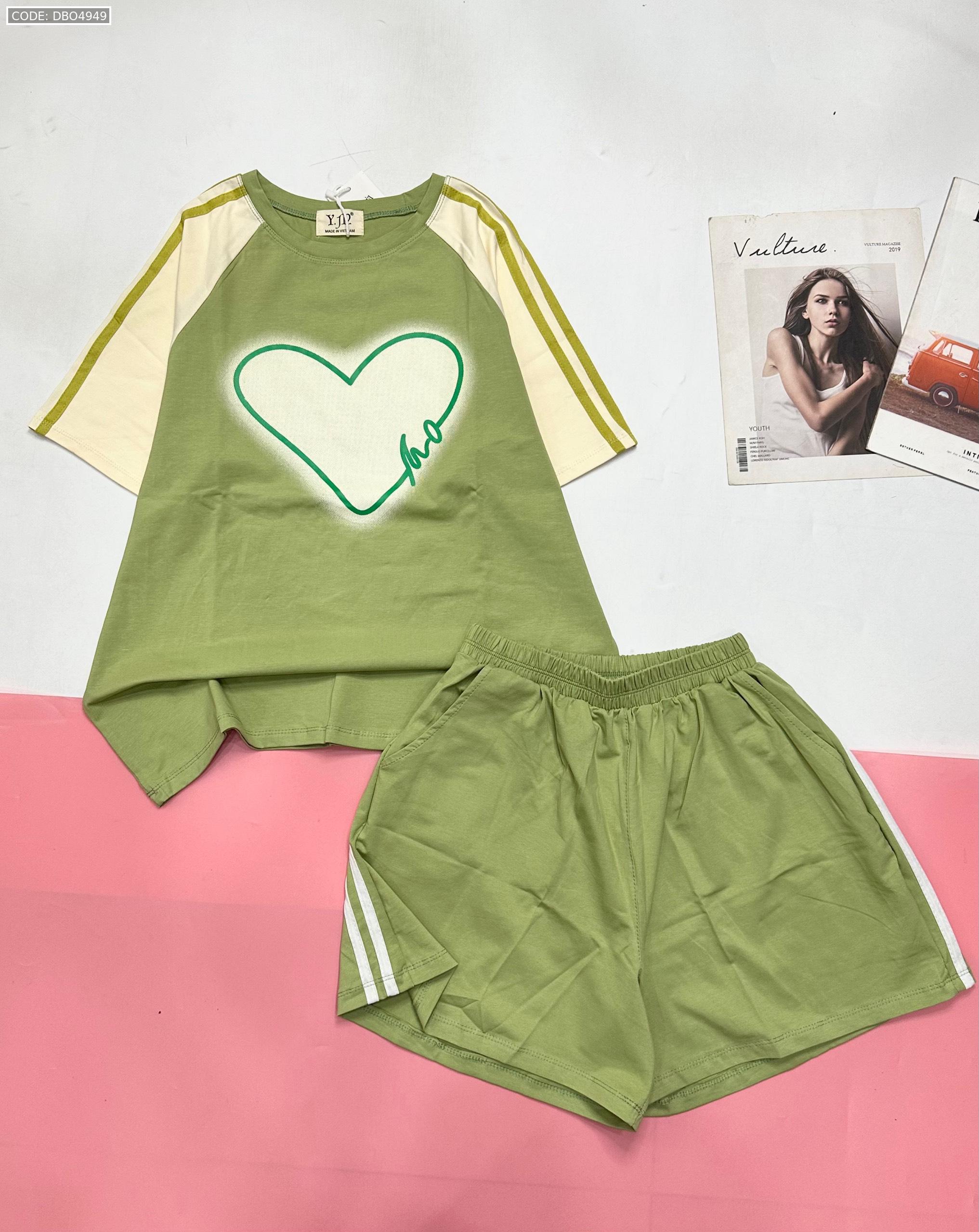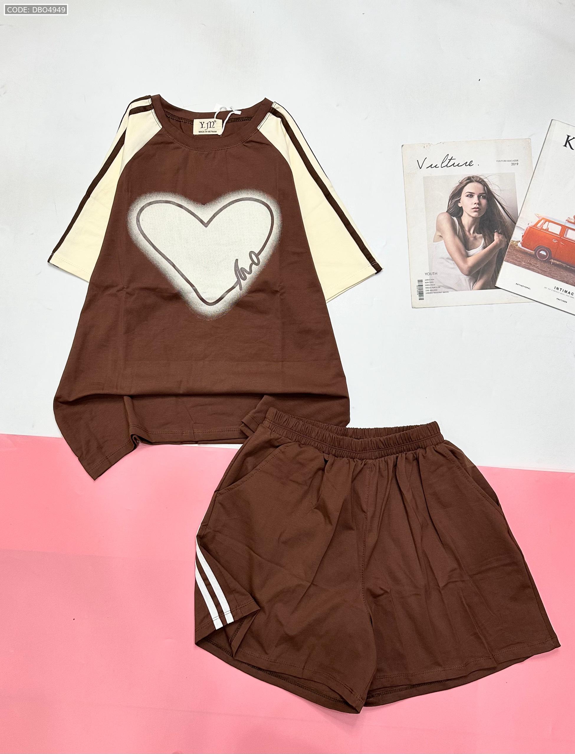 Đồ bộ quần đùi áo tay ngắn in trái tim lớn