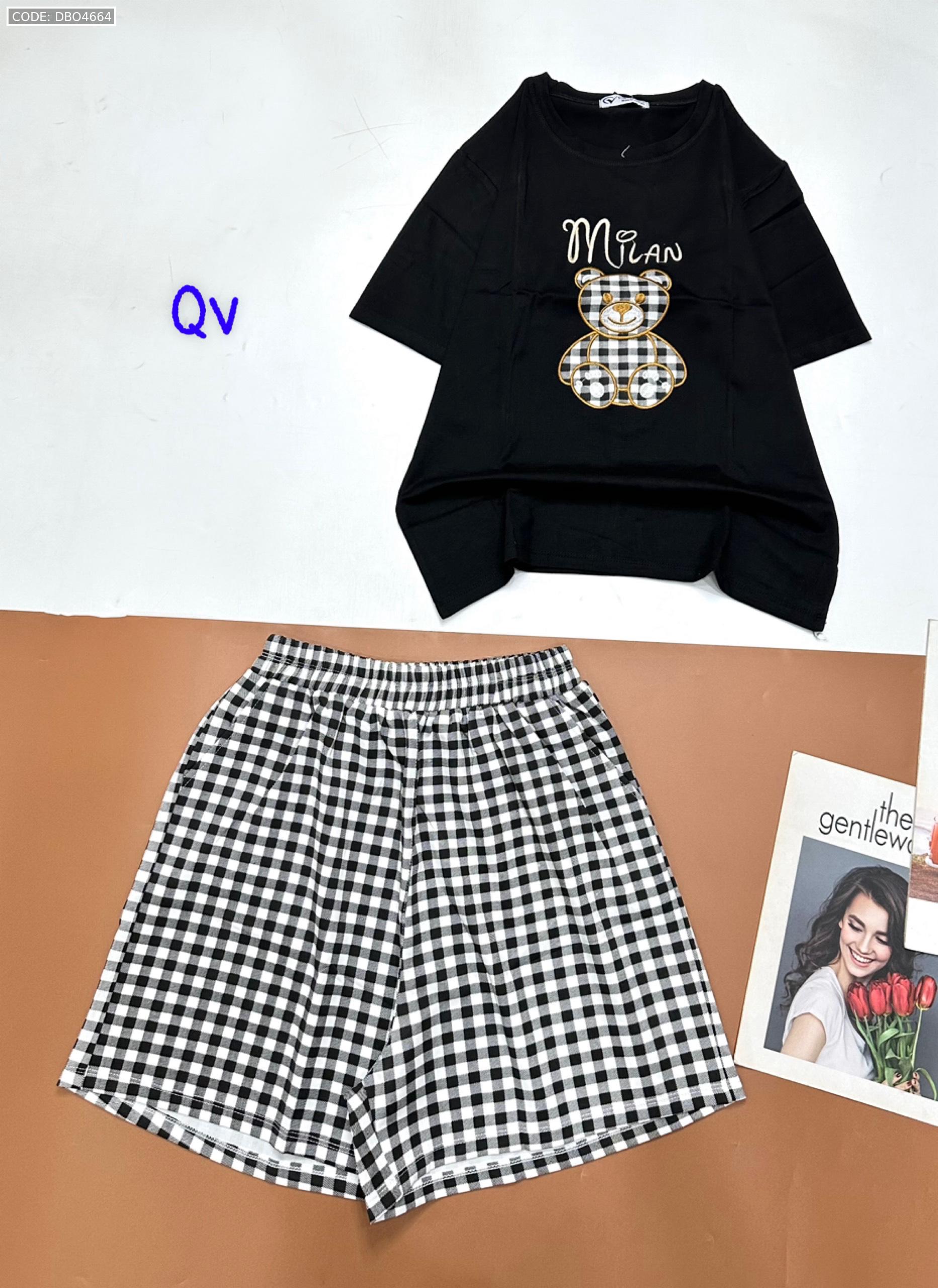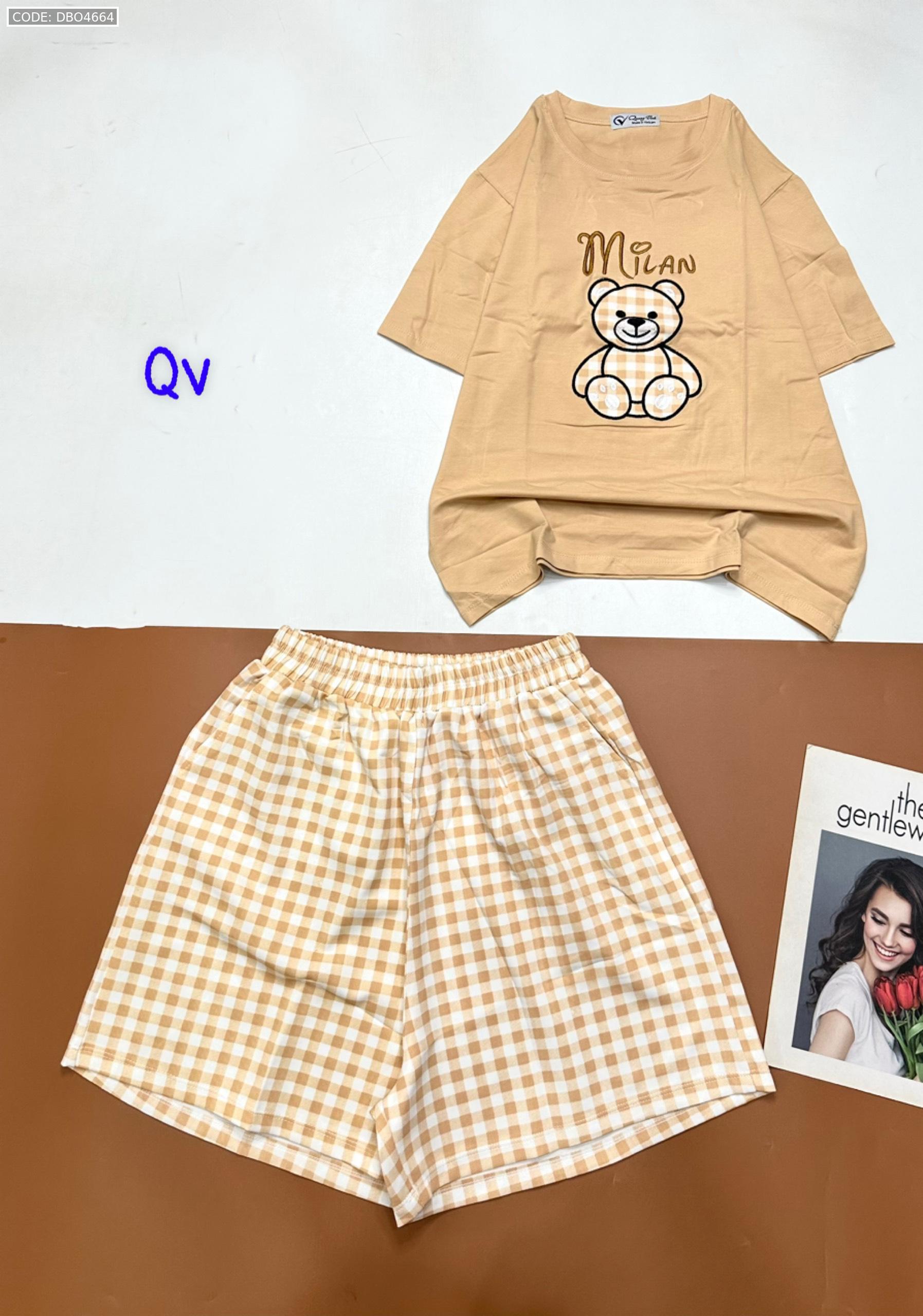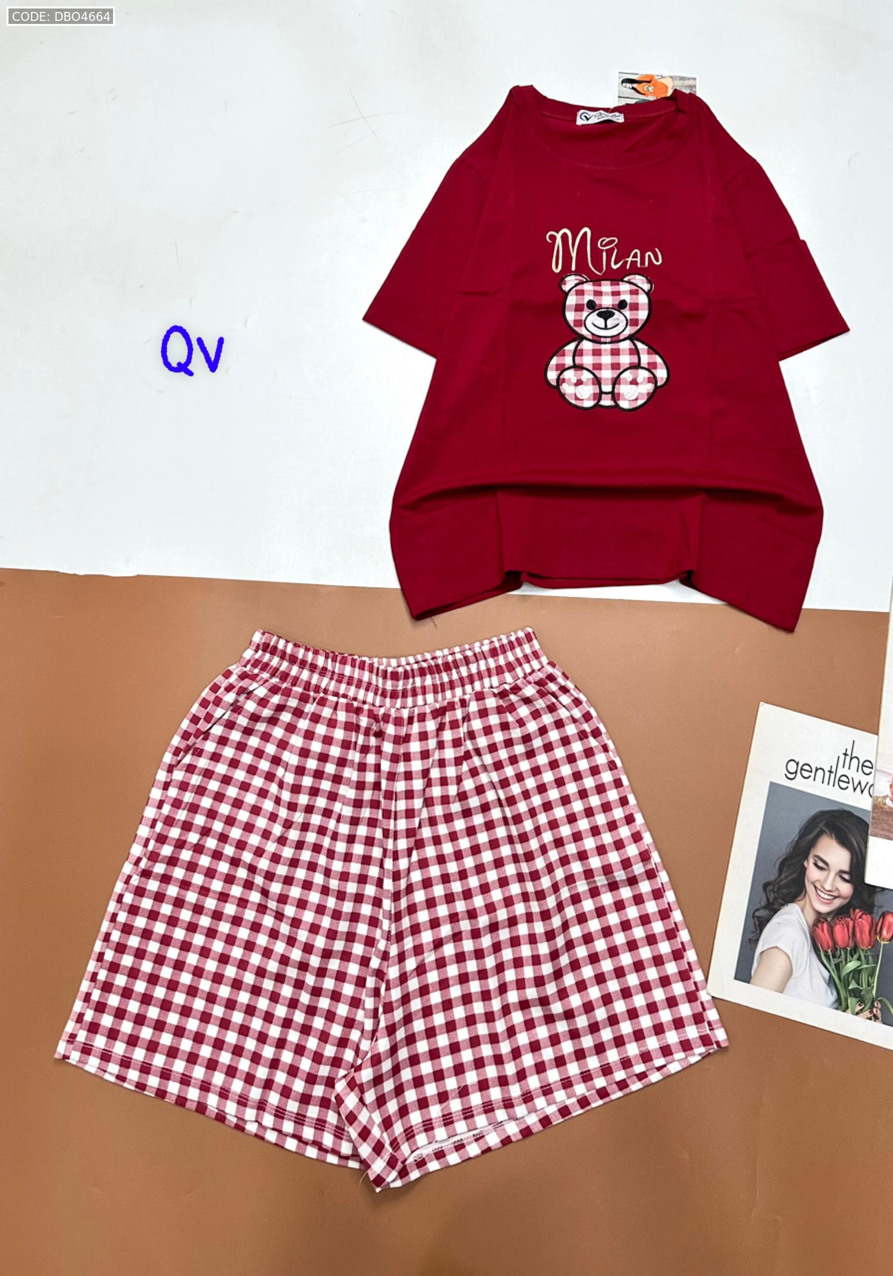 Đồ bộ quần đùi ca rô vuông áo tay ngắn in hình gấu