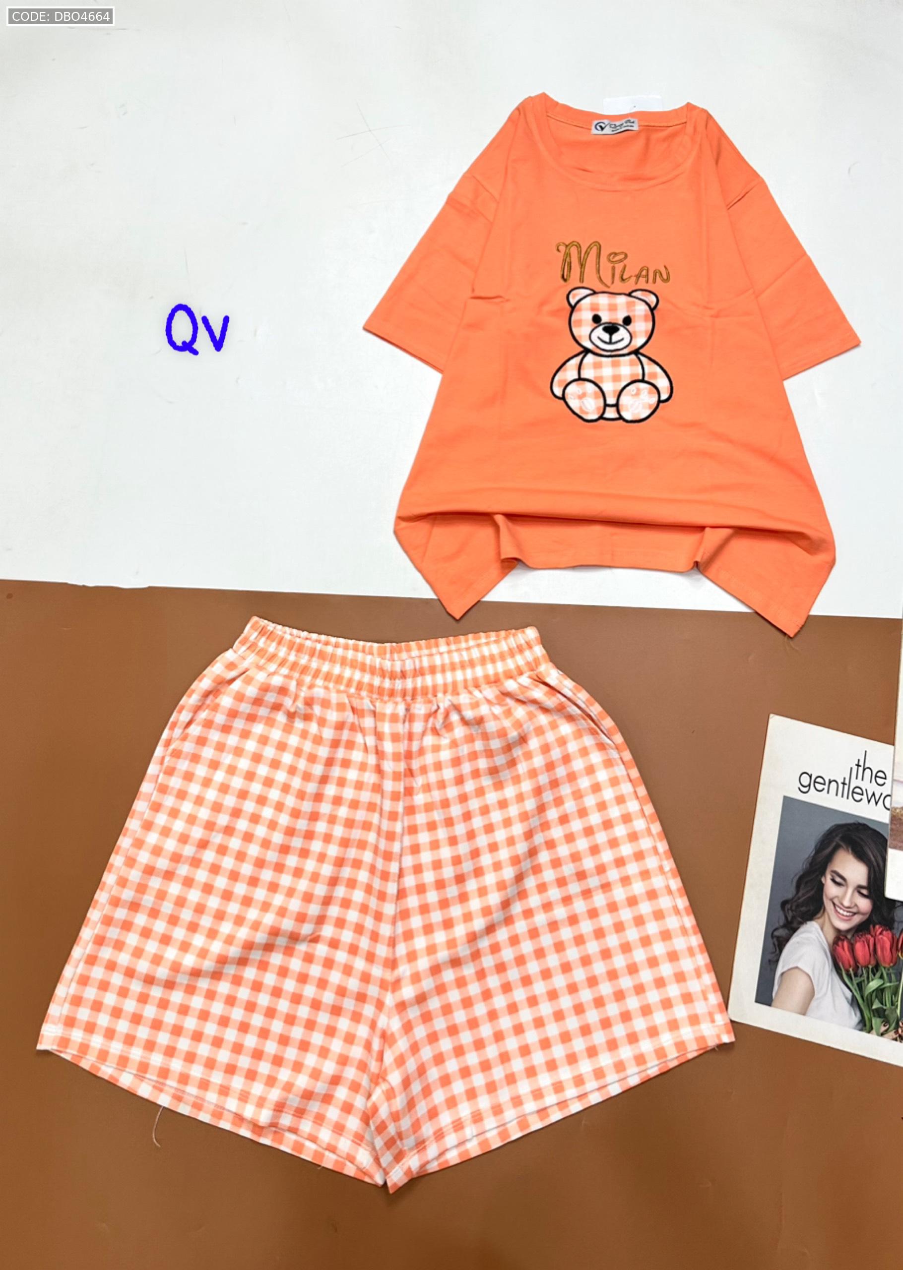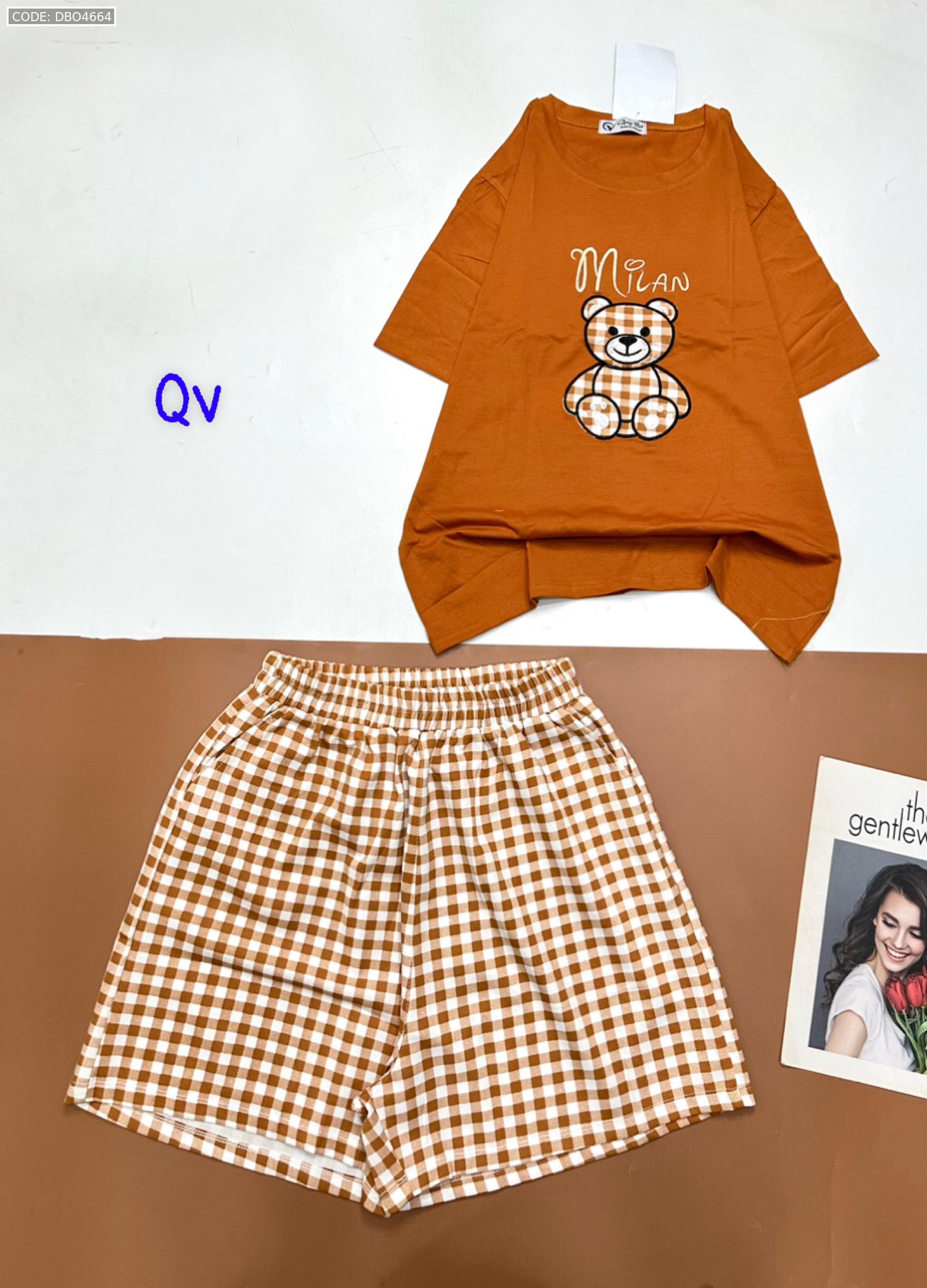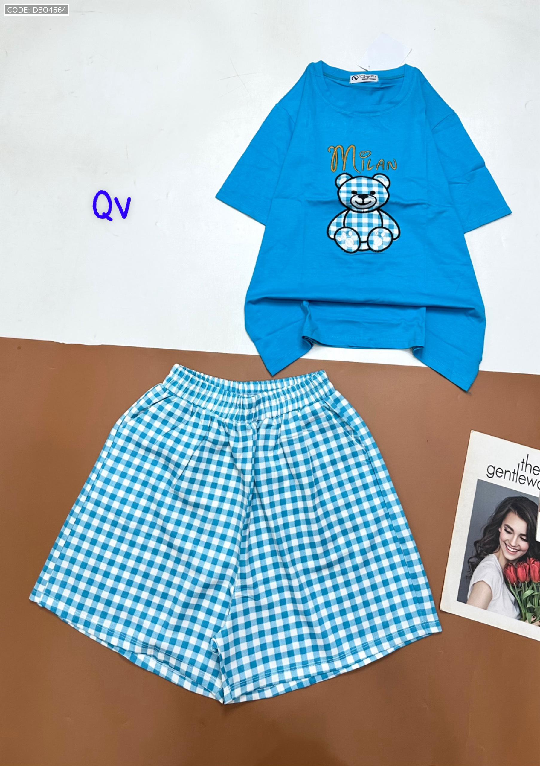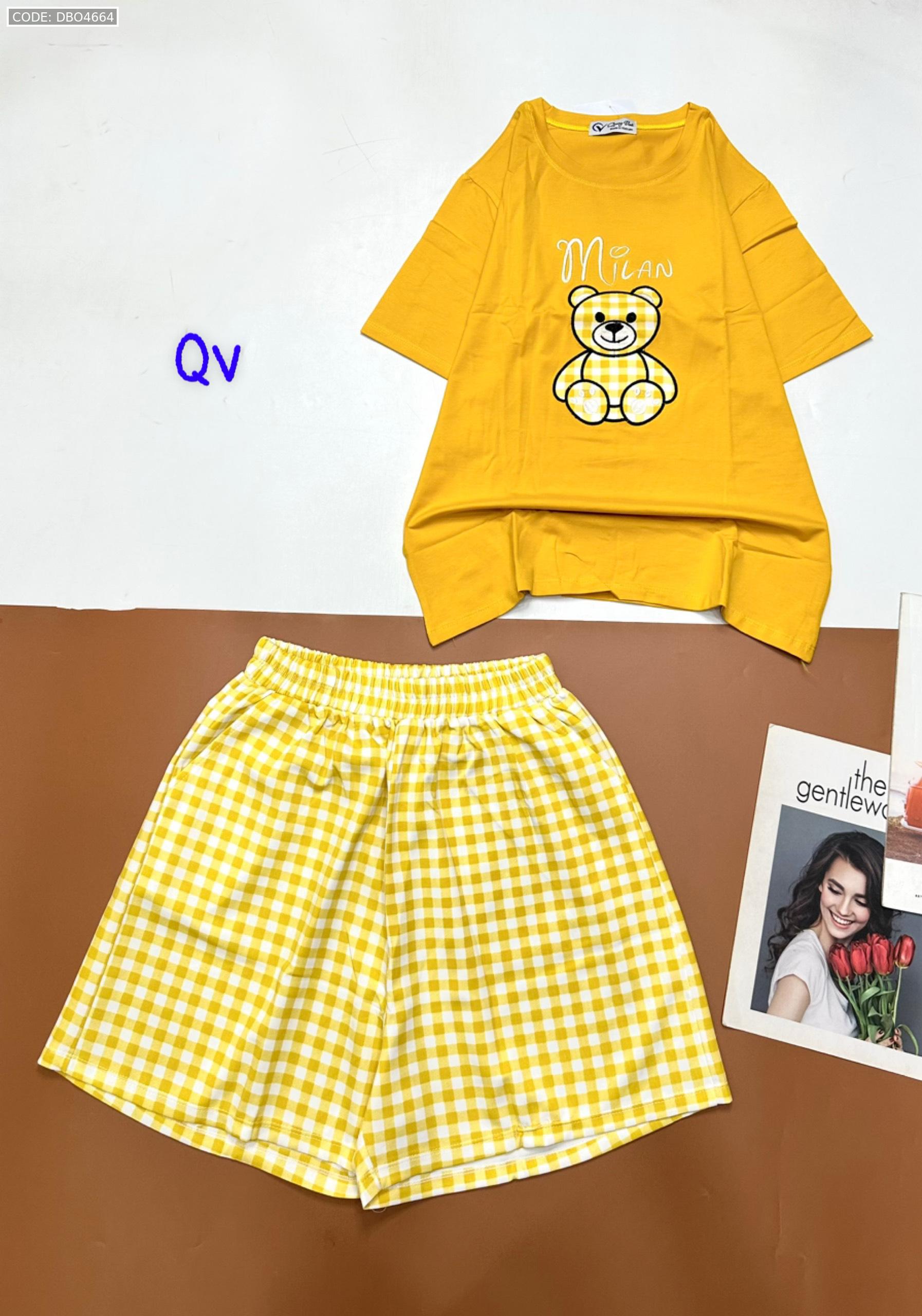 Đồ bộ quần đùi ca rô vuông áo tay ngắn in hình gấu