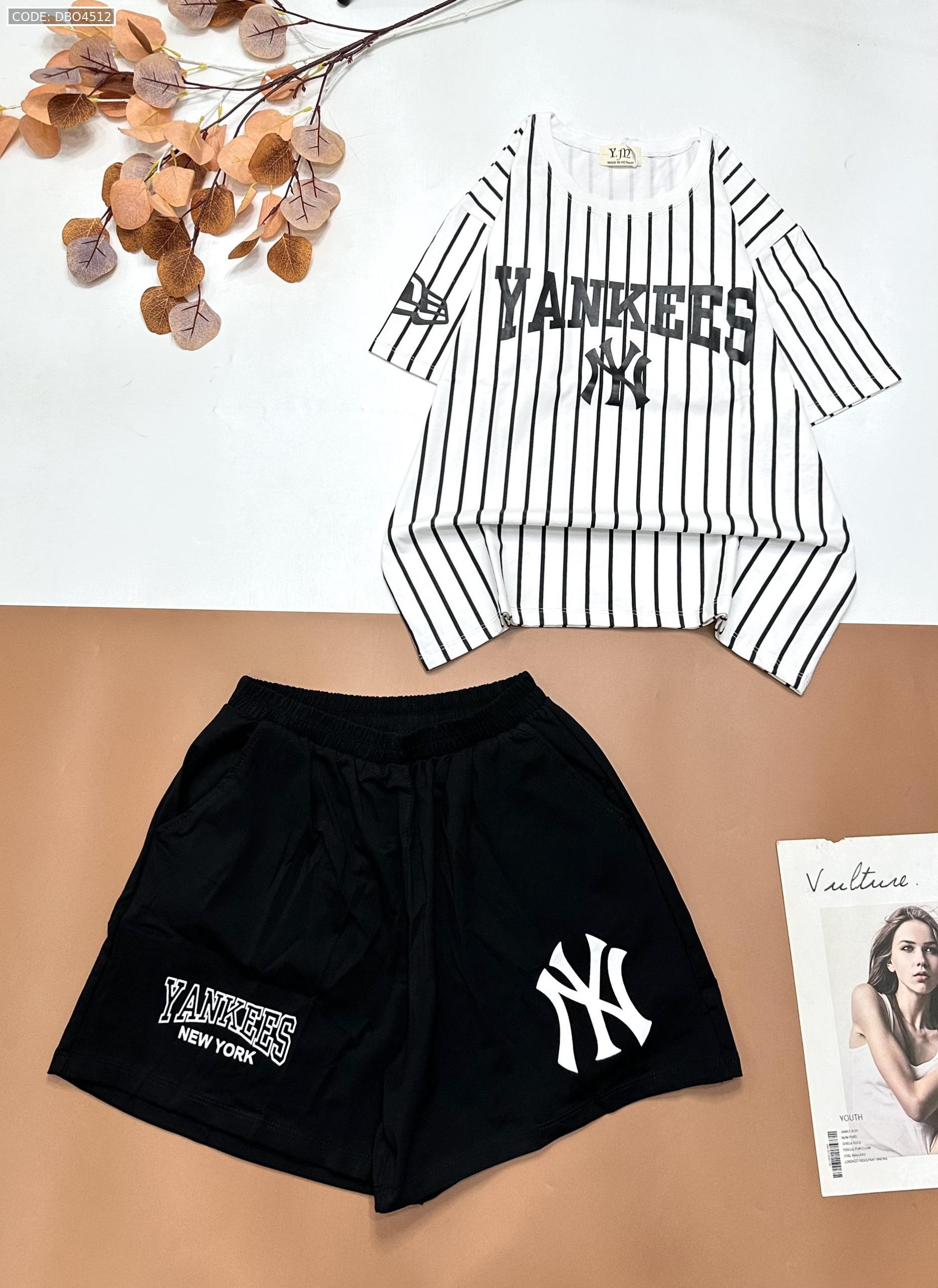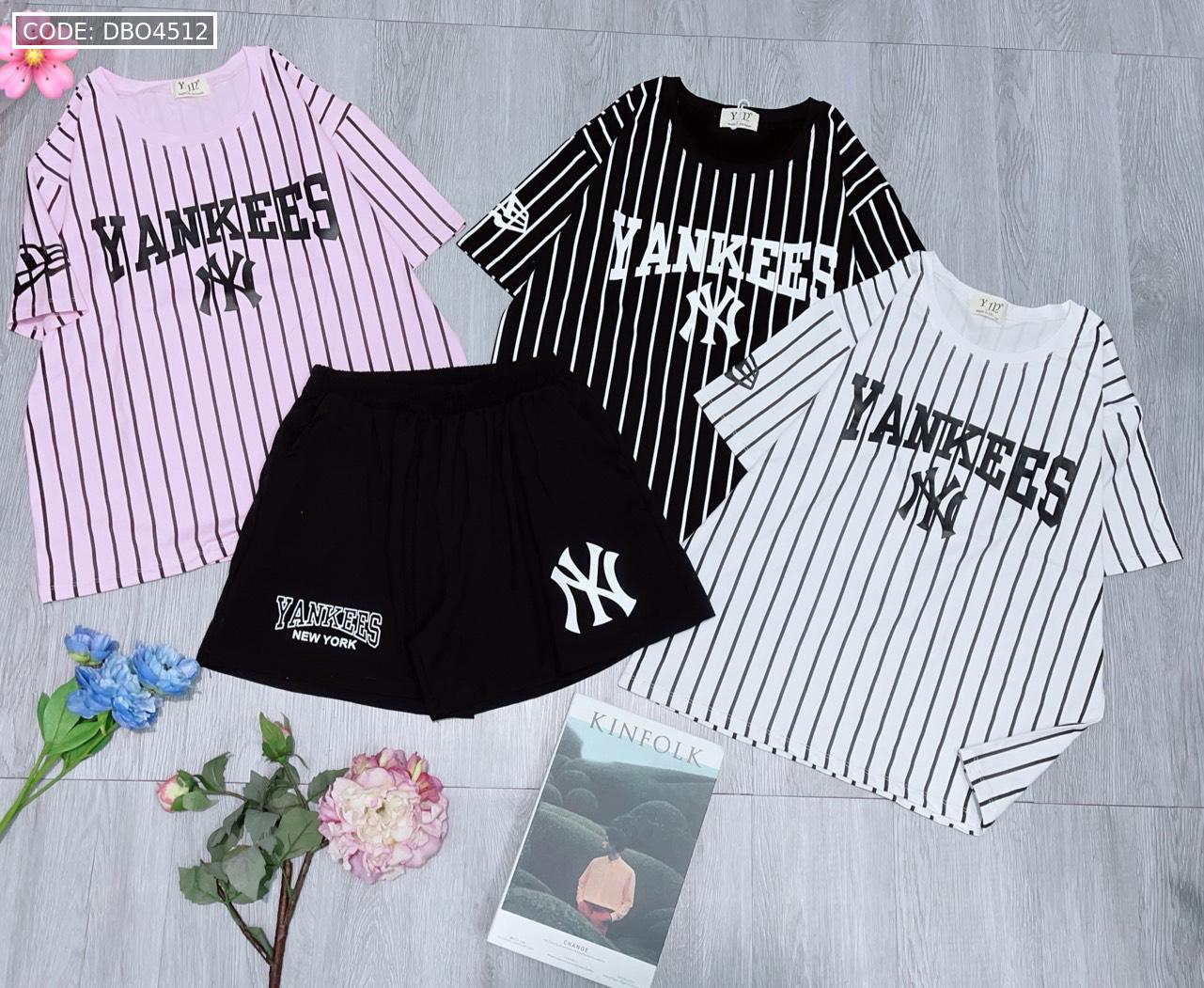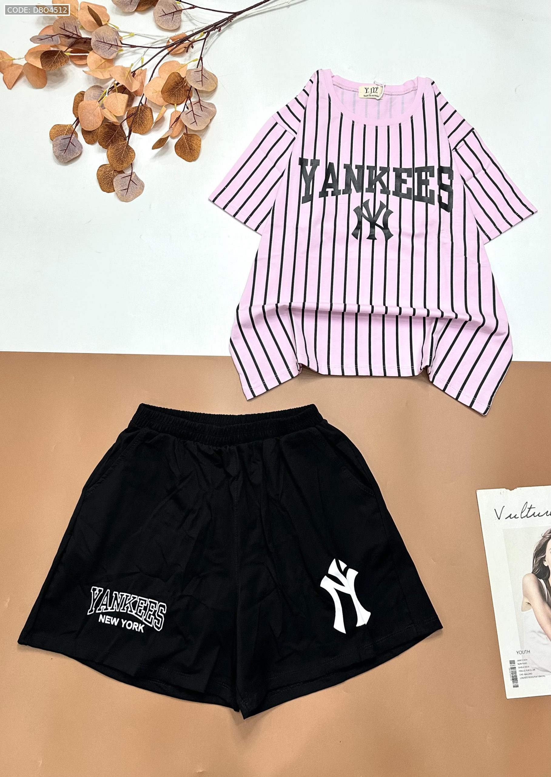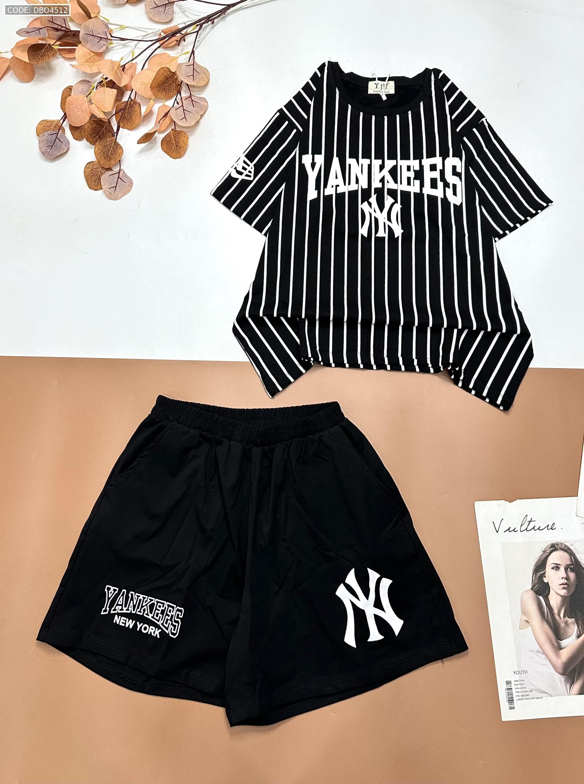 Đồ bộ quần đùi đen áo sọc đứng in chữ YANKESS