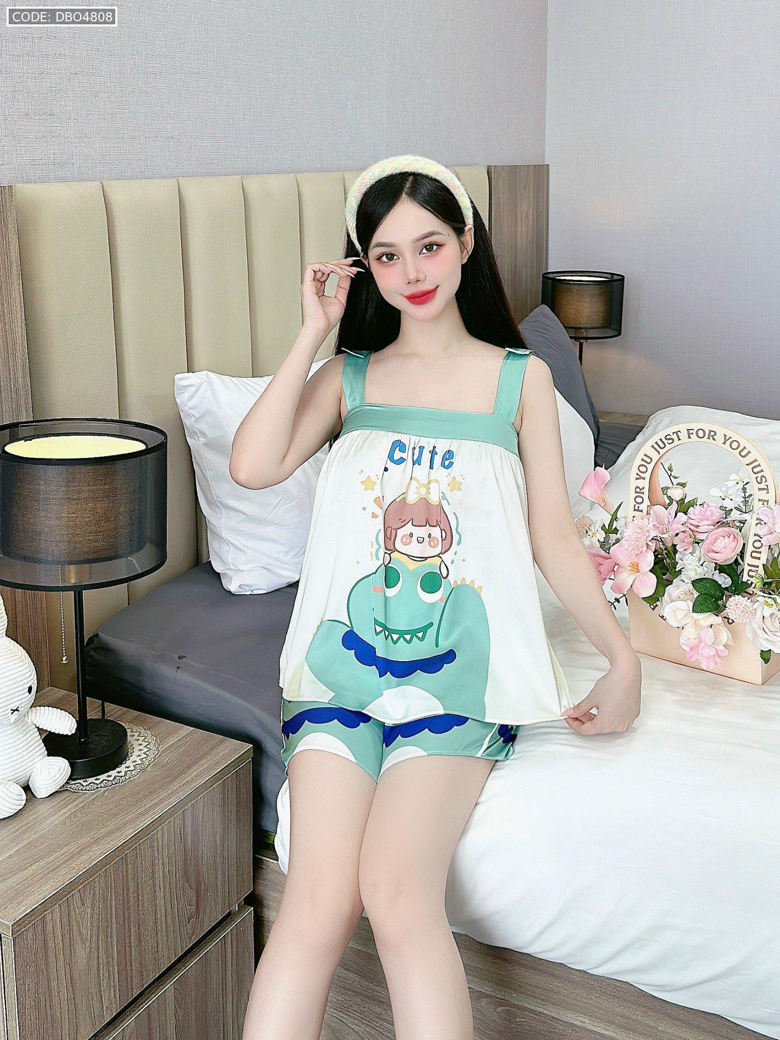 Đồ bộ quần đùi latin áo dây bản nhiều hình dễ thương