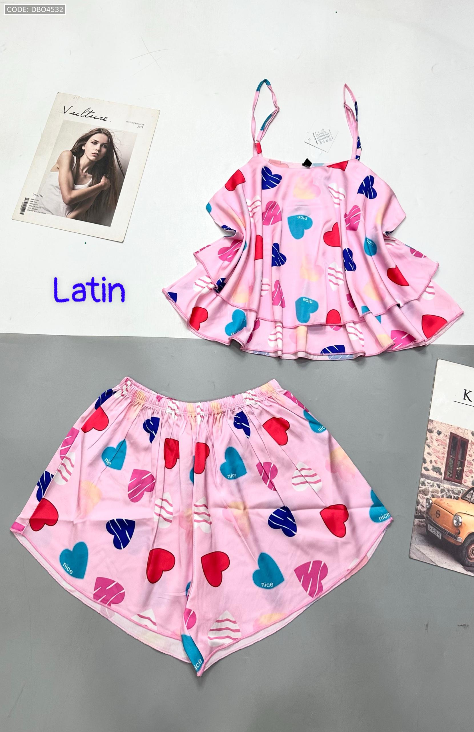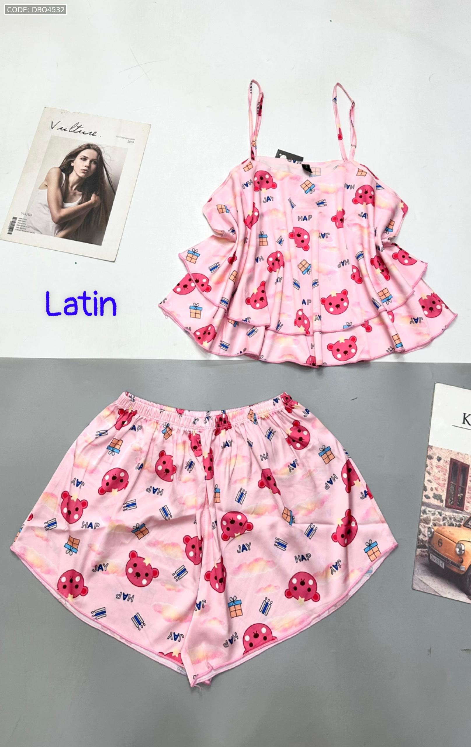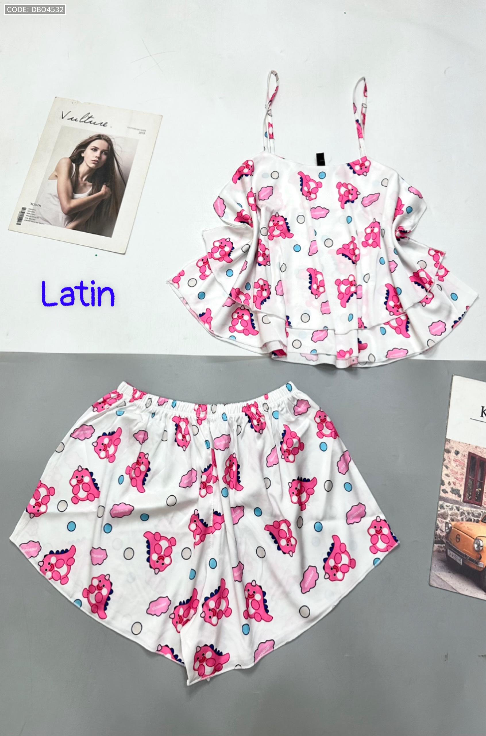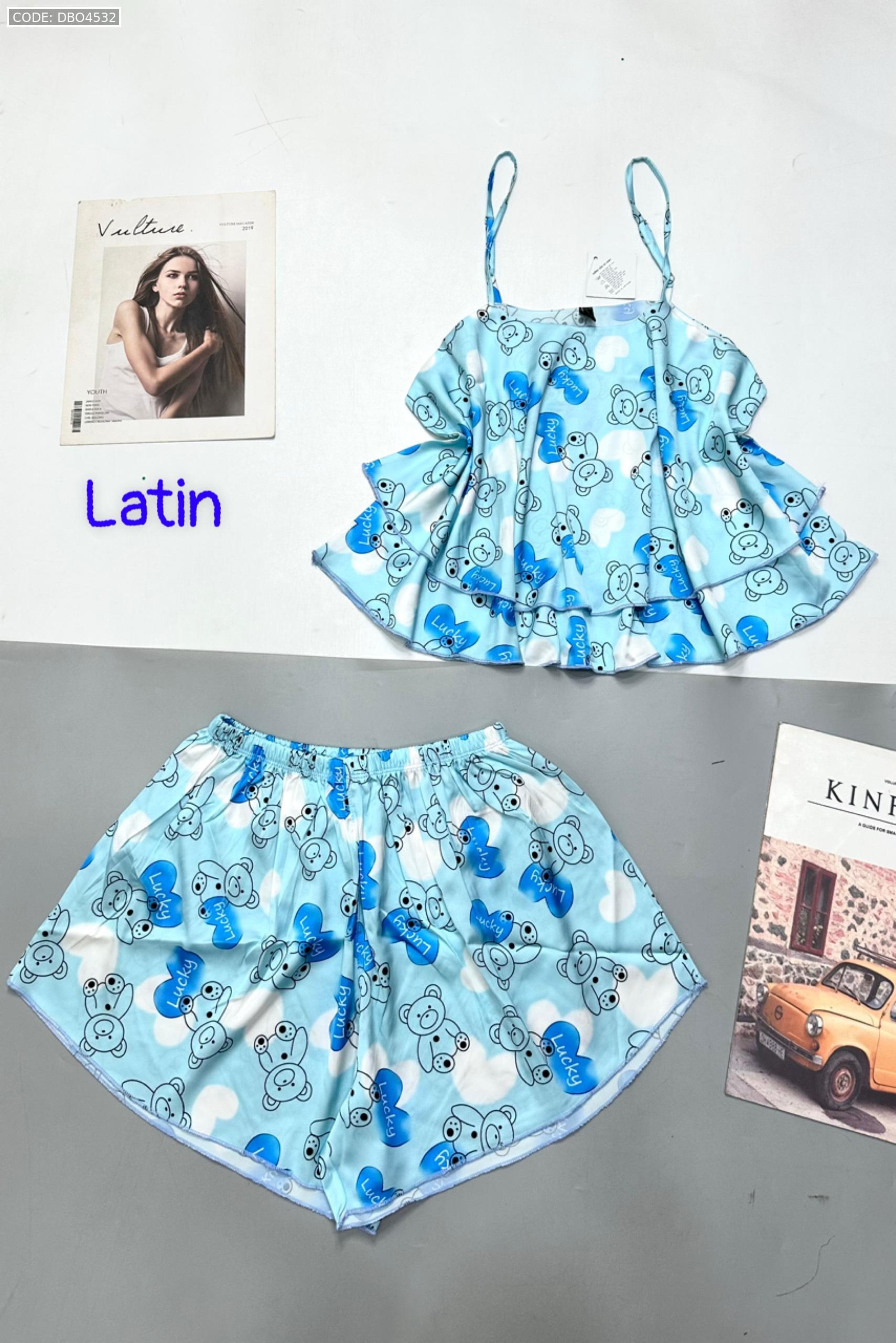 Đồ bộ quần đùi latin áo dây hai tầng in hình dể thương