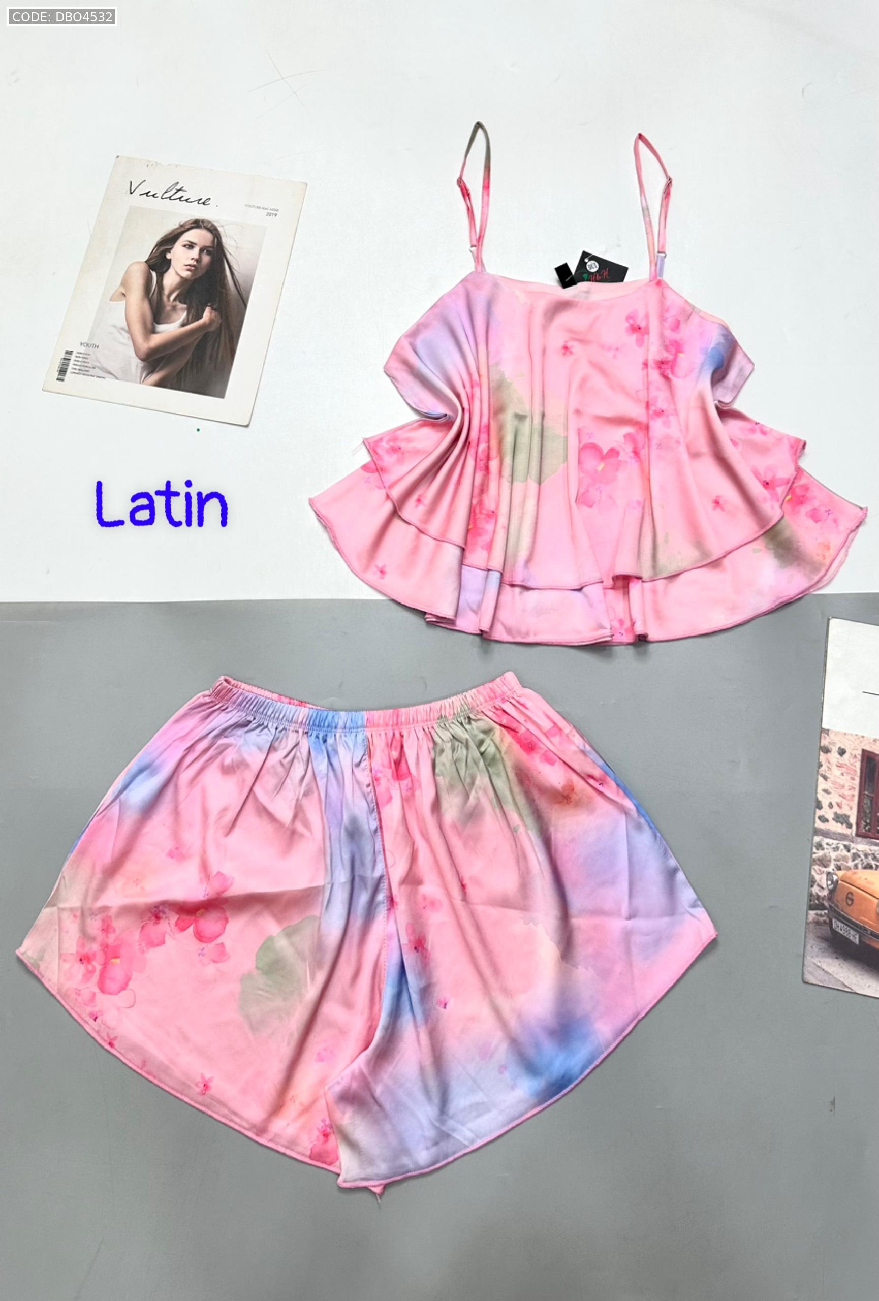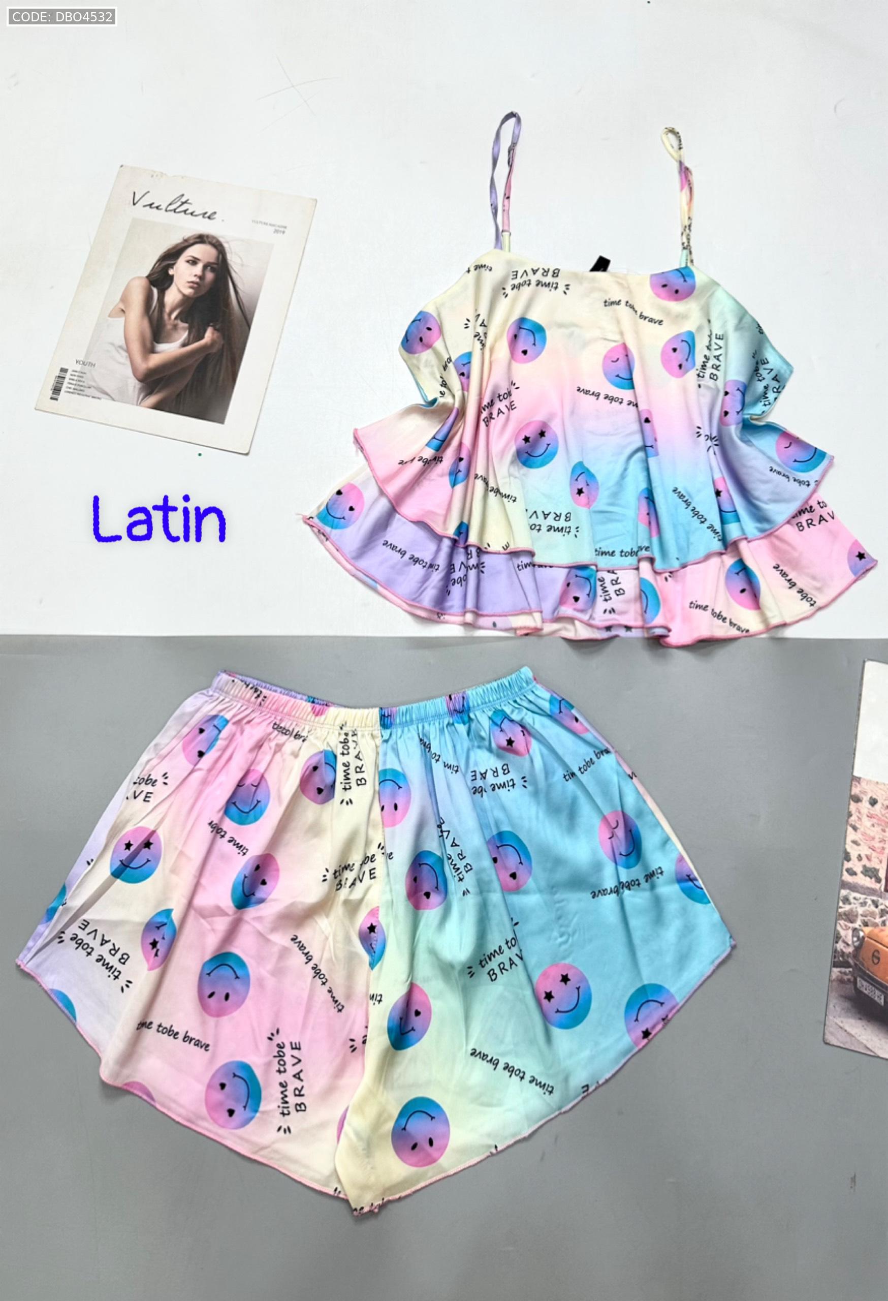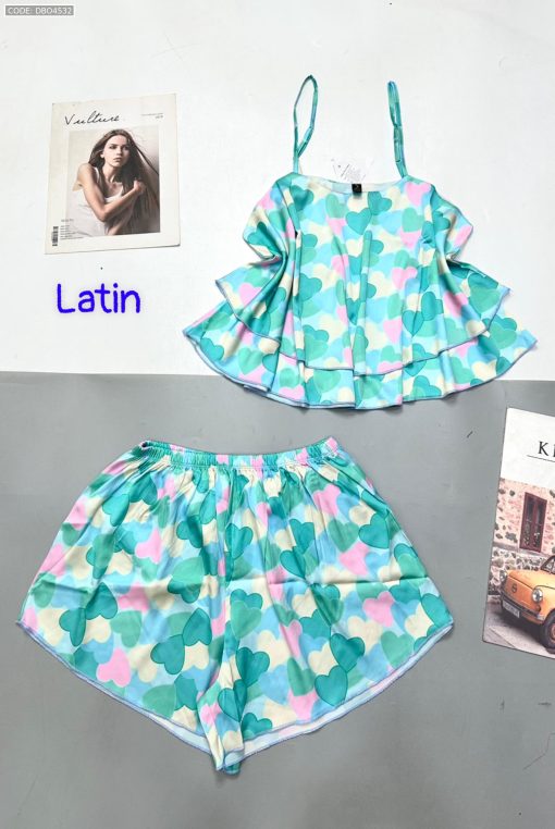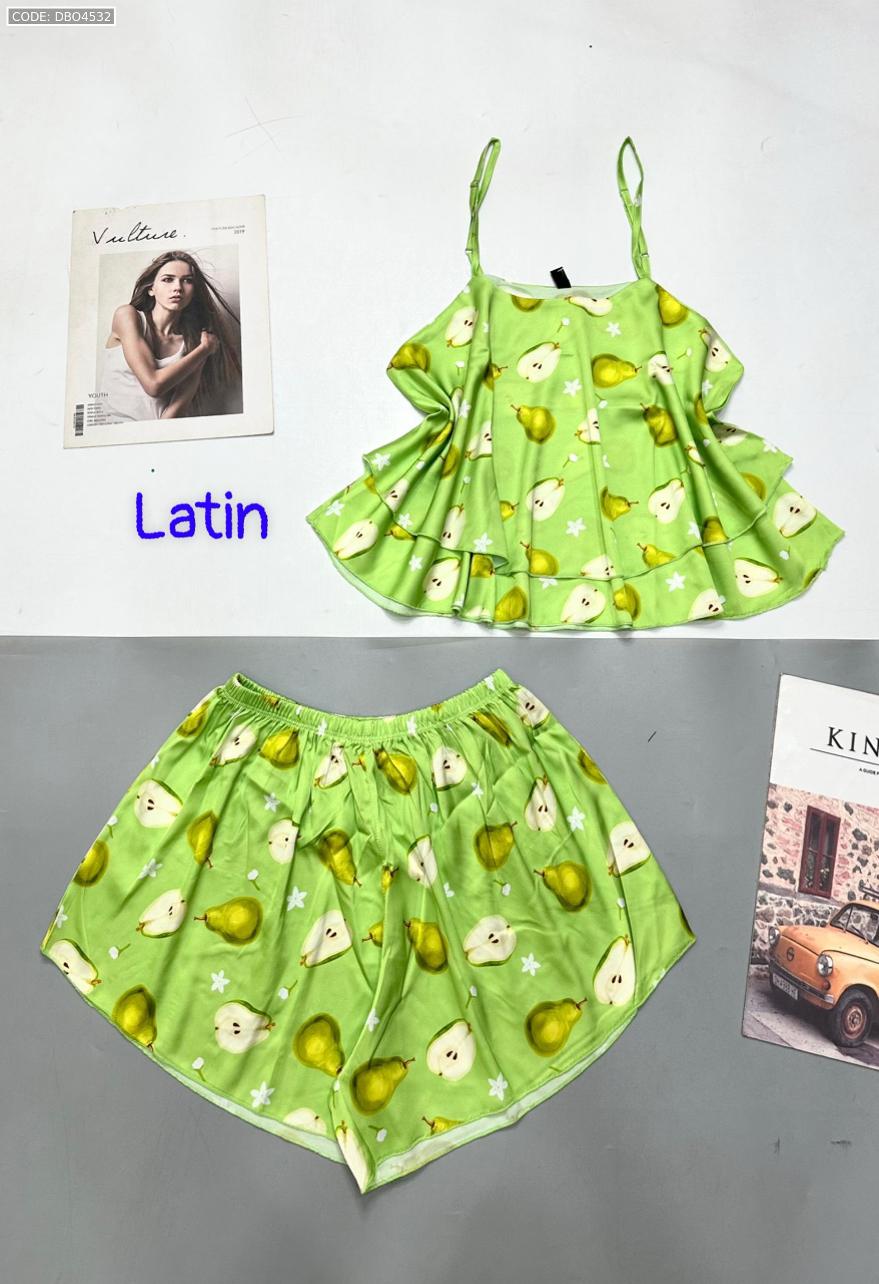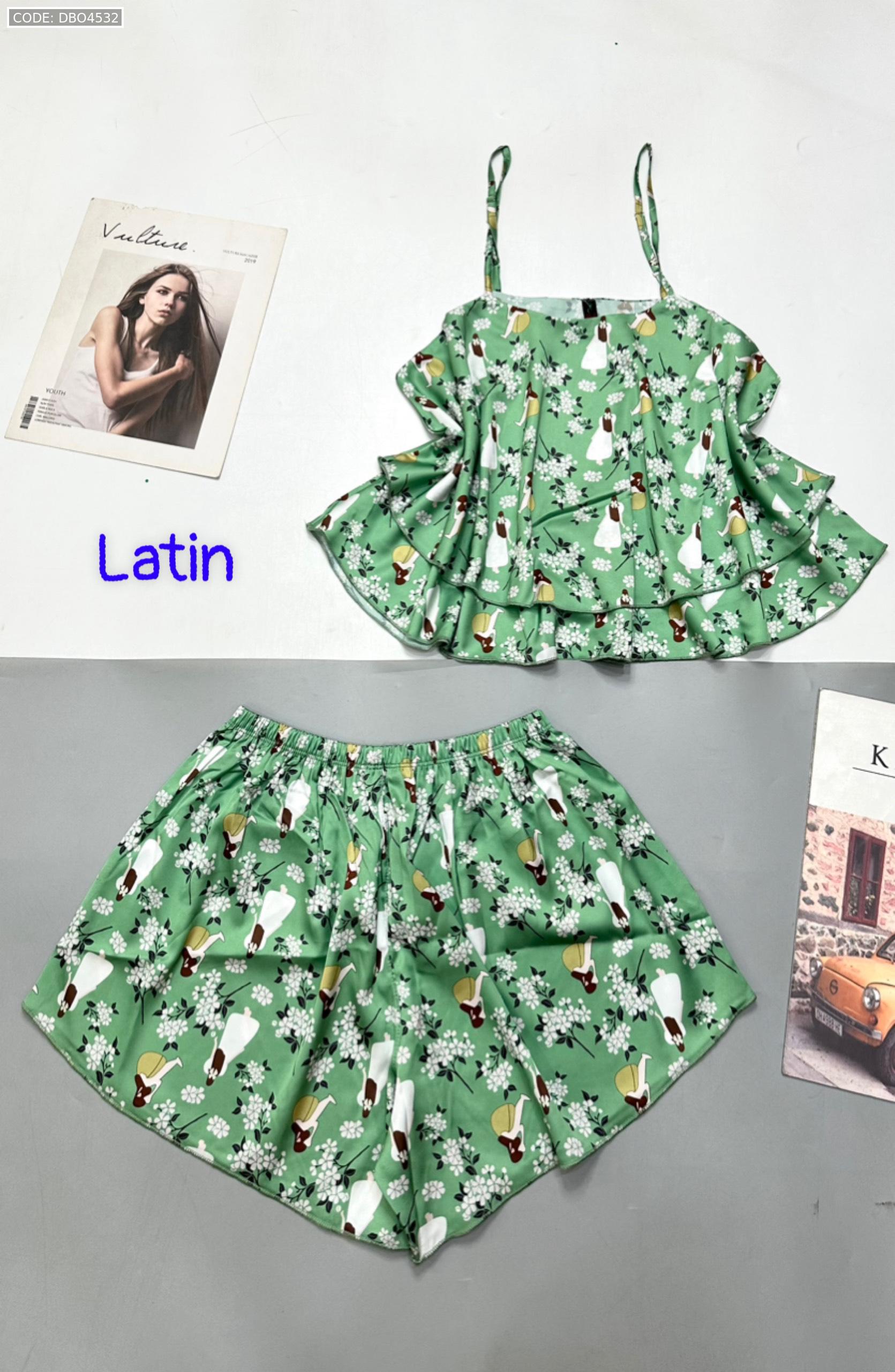 Đồ bộ quần đùi latin áo dây hai tầng in hình dể thương
