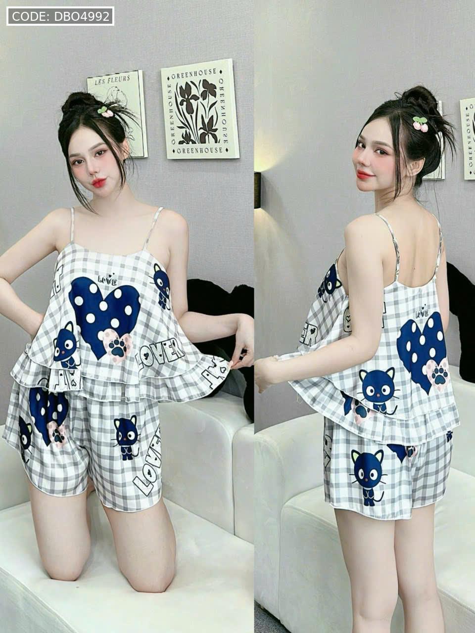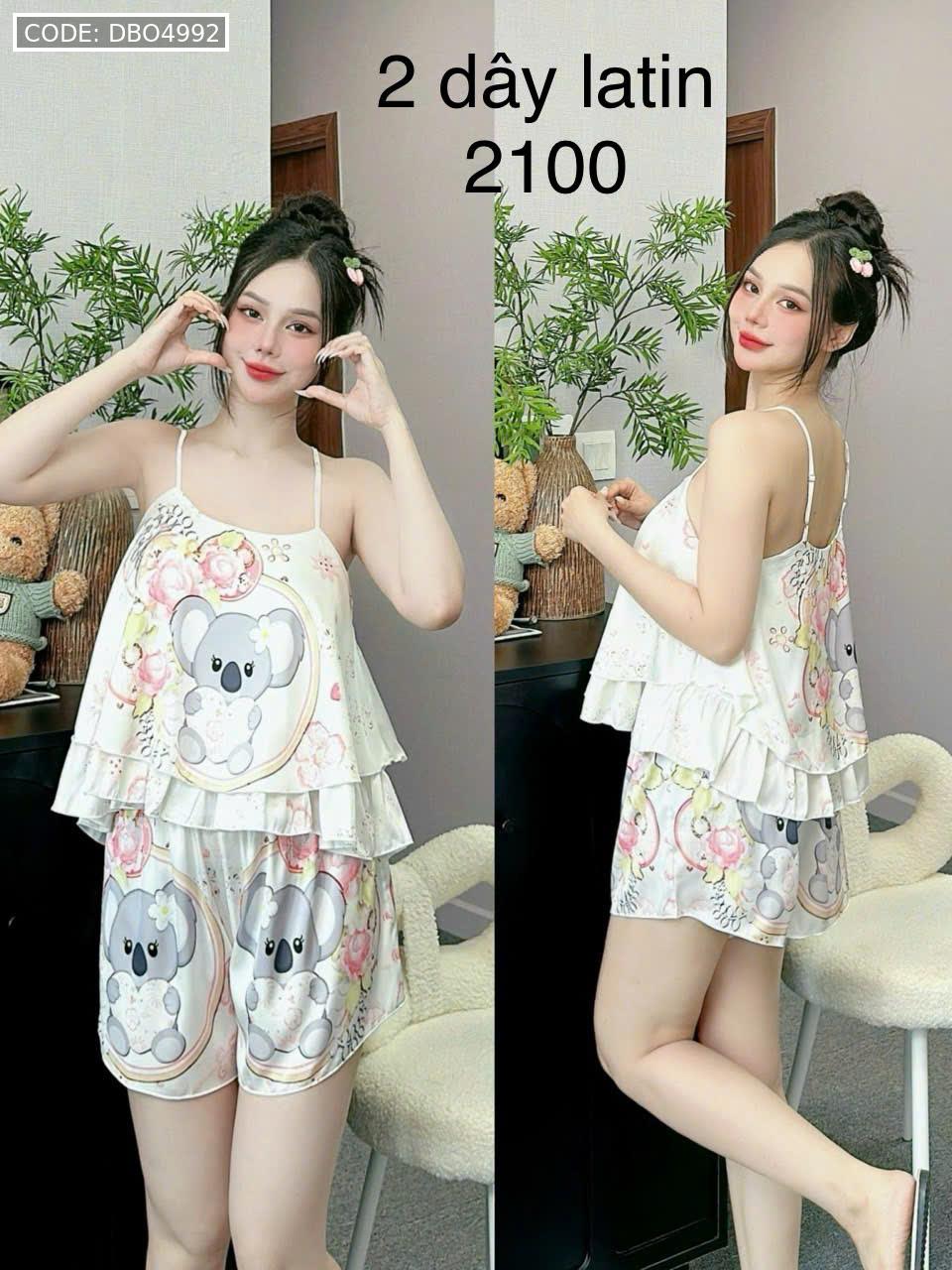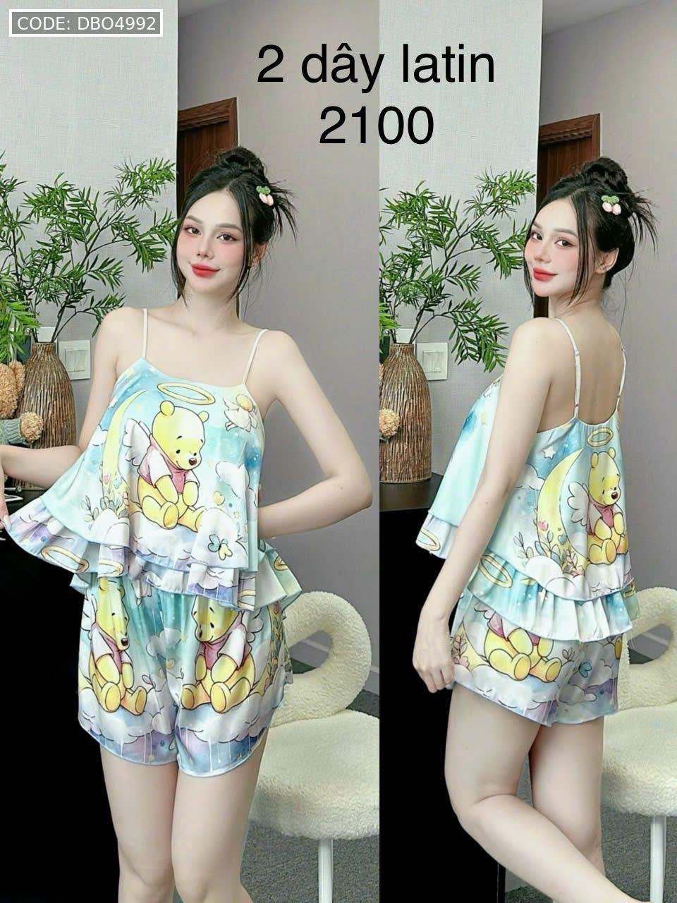 Đồ bộ quần đùi latin áo hai dây 2 tầng nhiều hình dễ thương