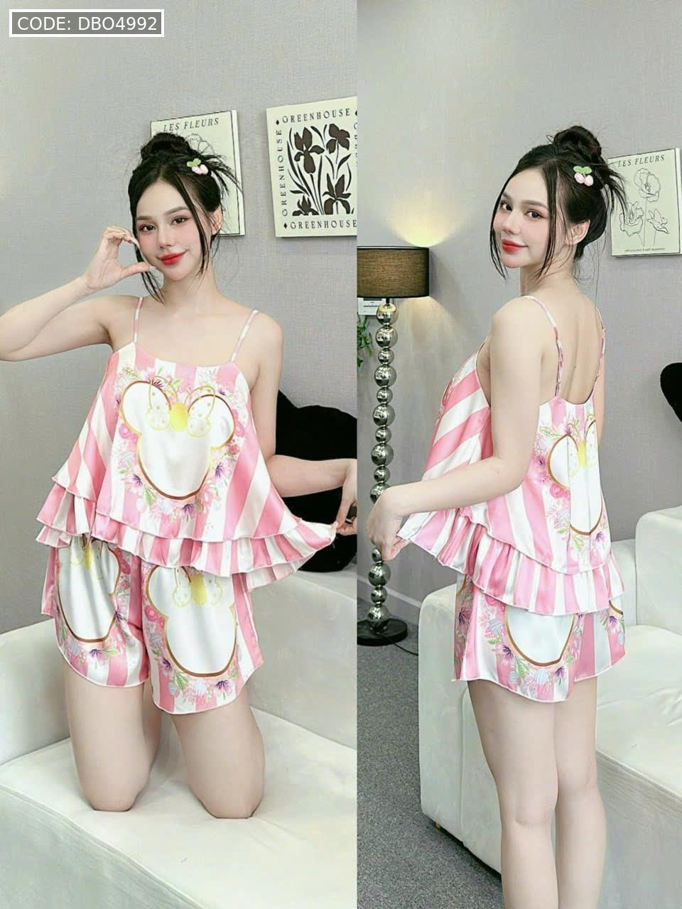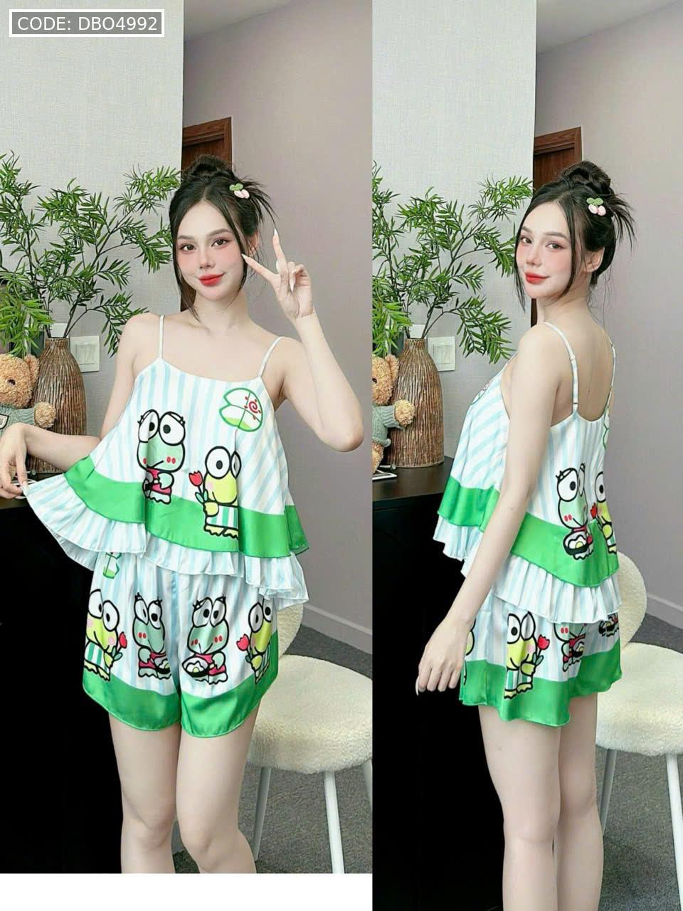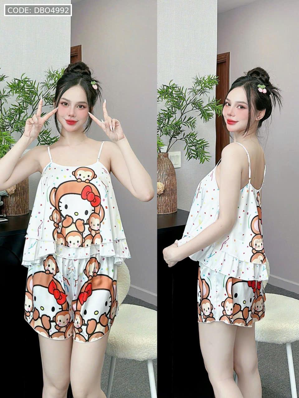 Đồ bộ quần đùi latin áo hai dây 2 tầng nhiều hình dễ thương