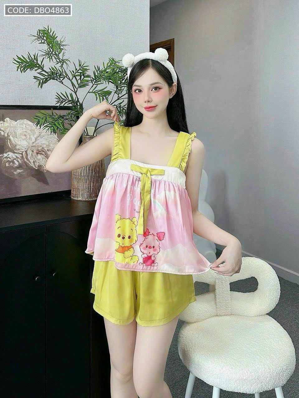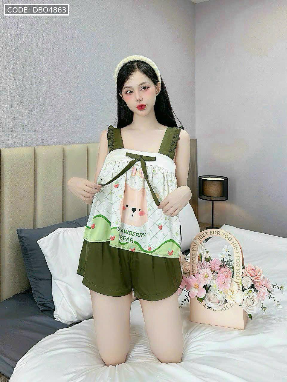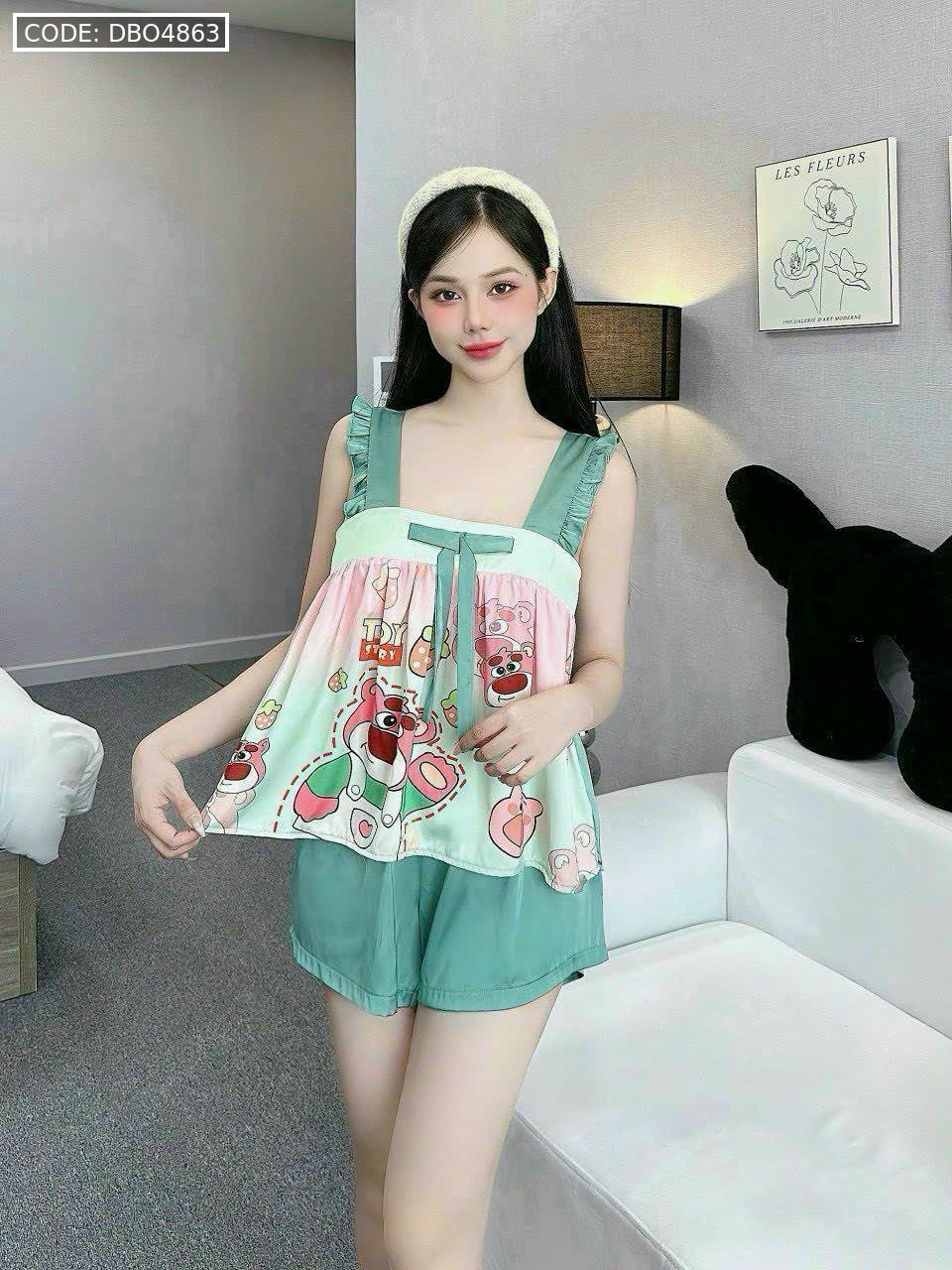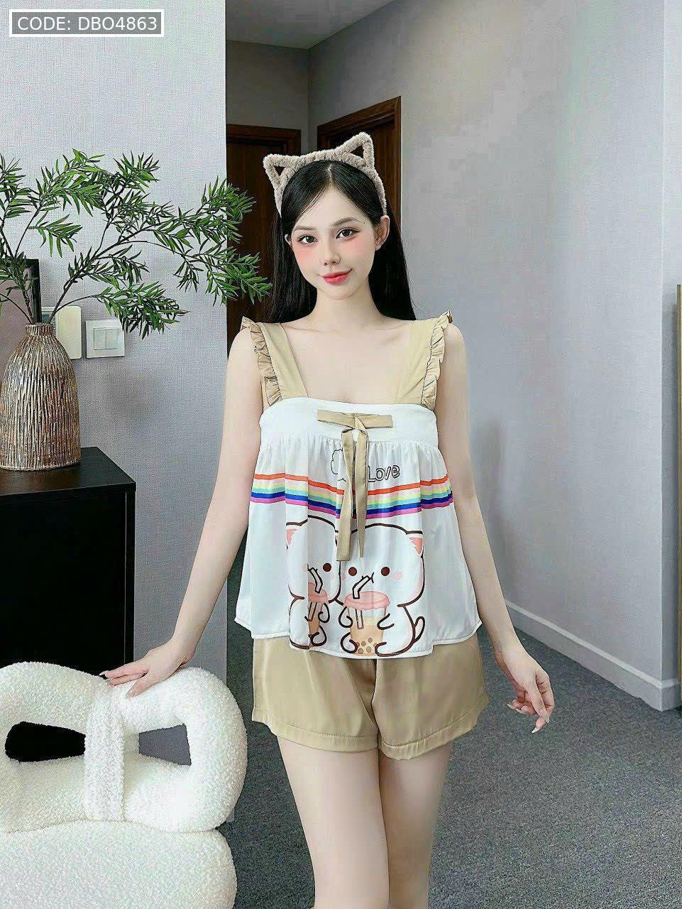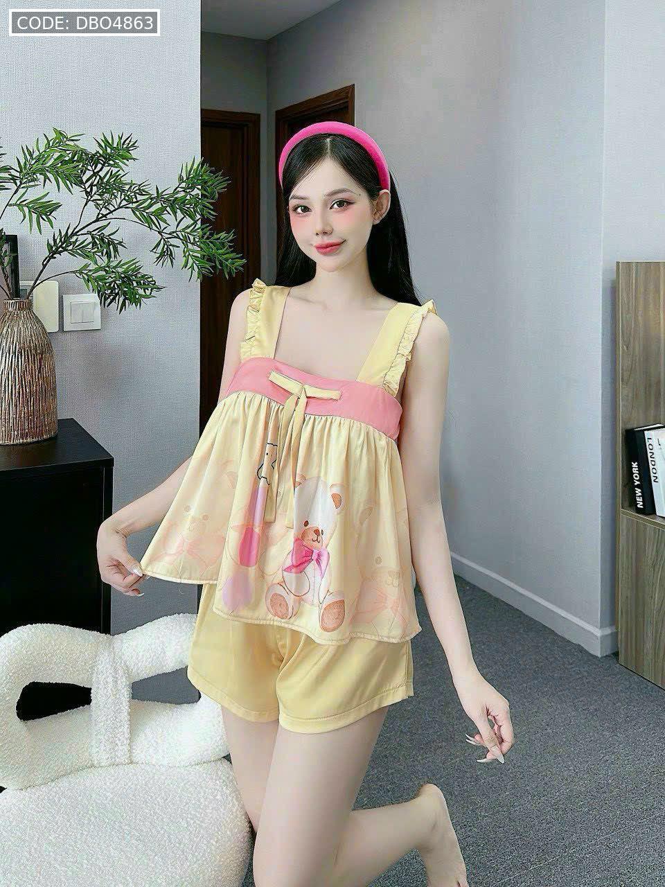 Đồ bộ quần đùi latin áo hai dây bản bèo nơ