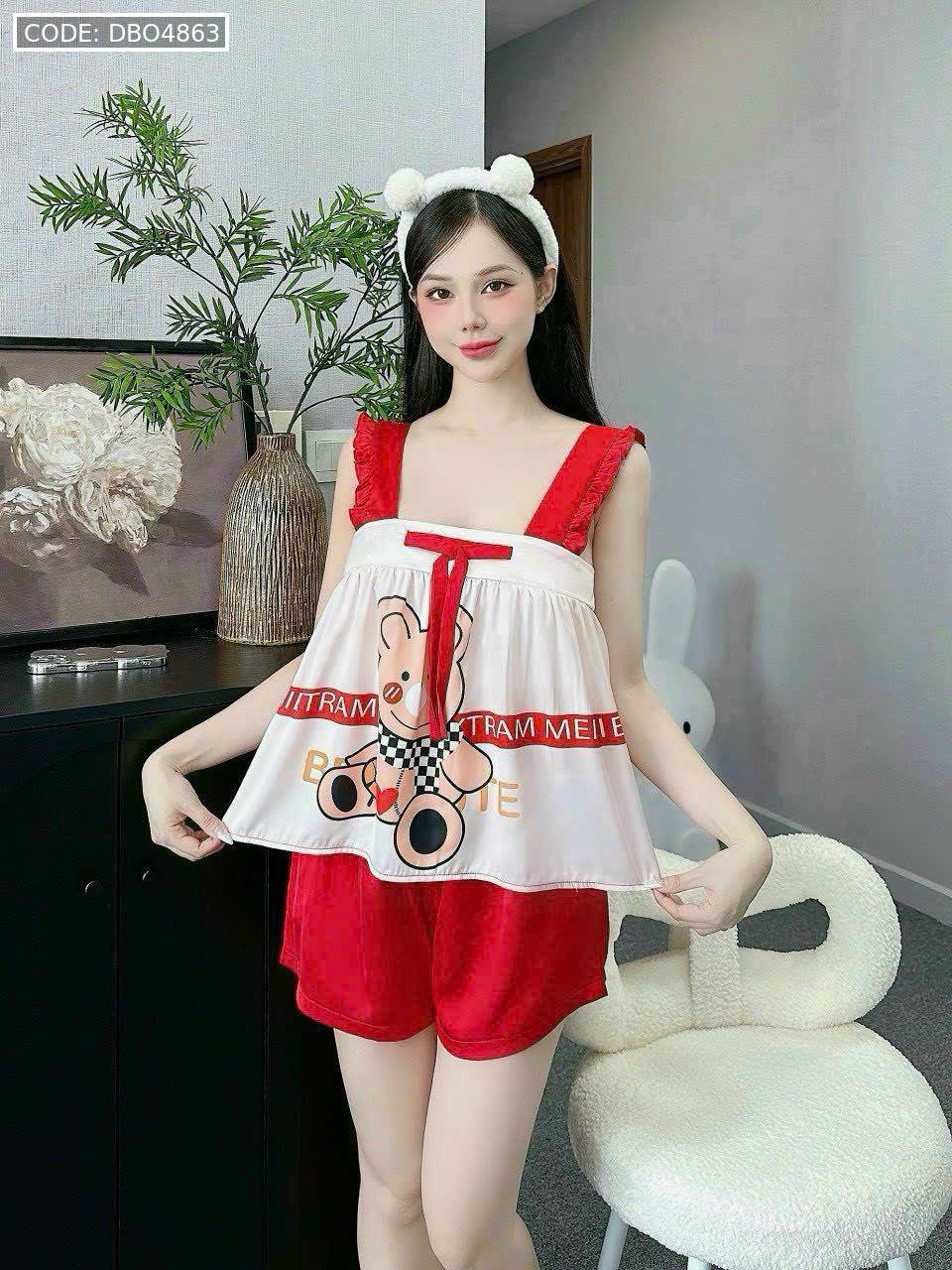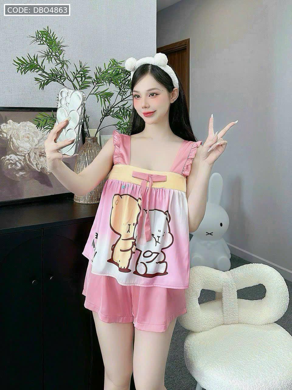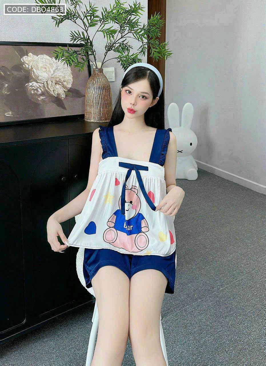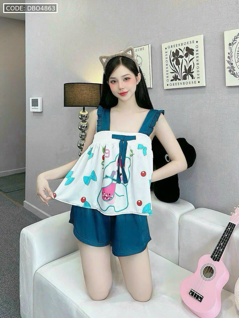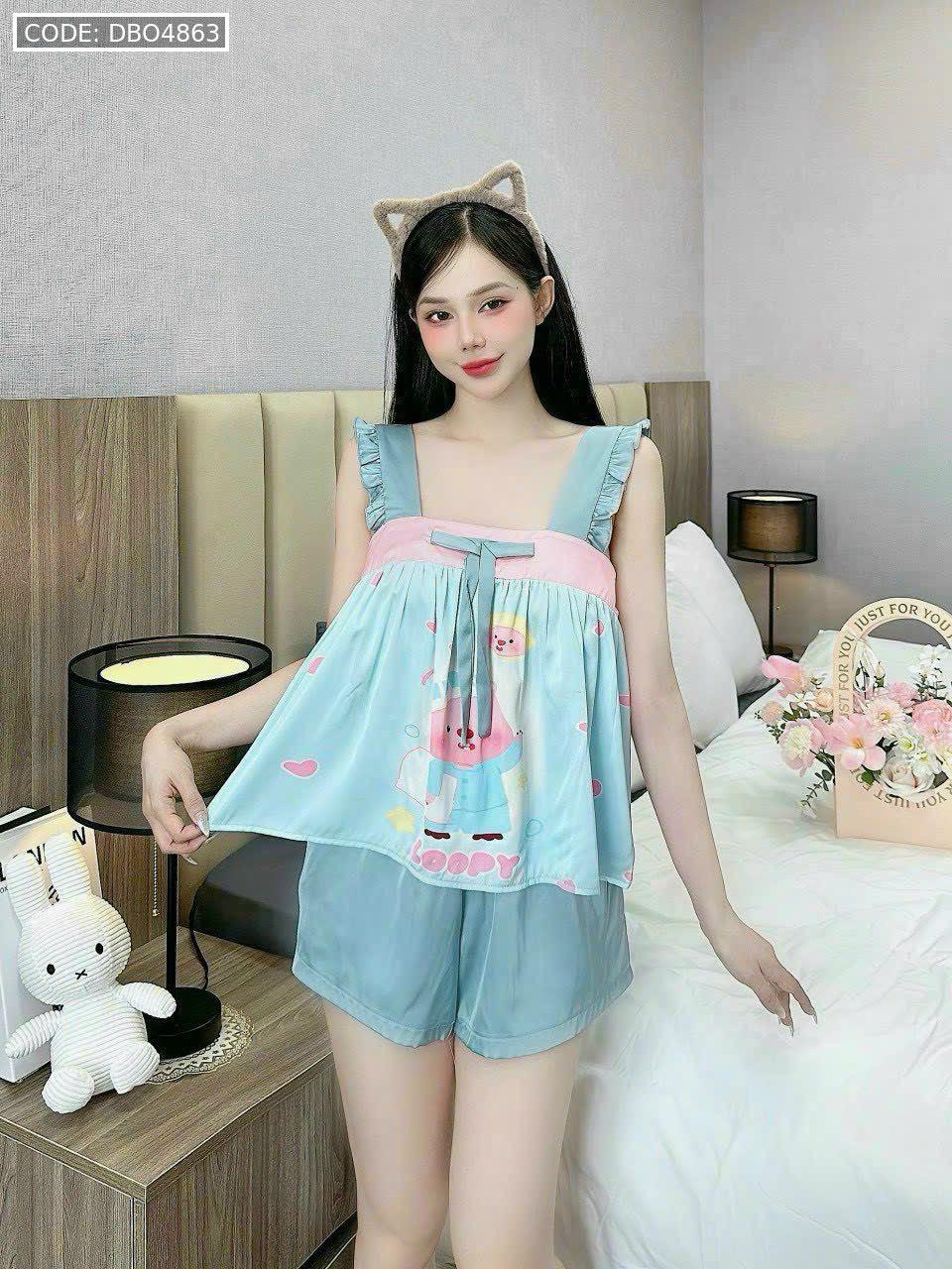 Đồ bộ quần đùi latin áo hai dây bản bèo nơ
