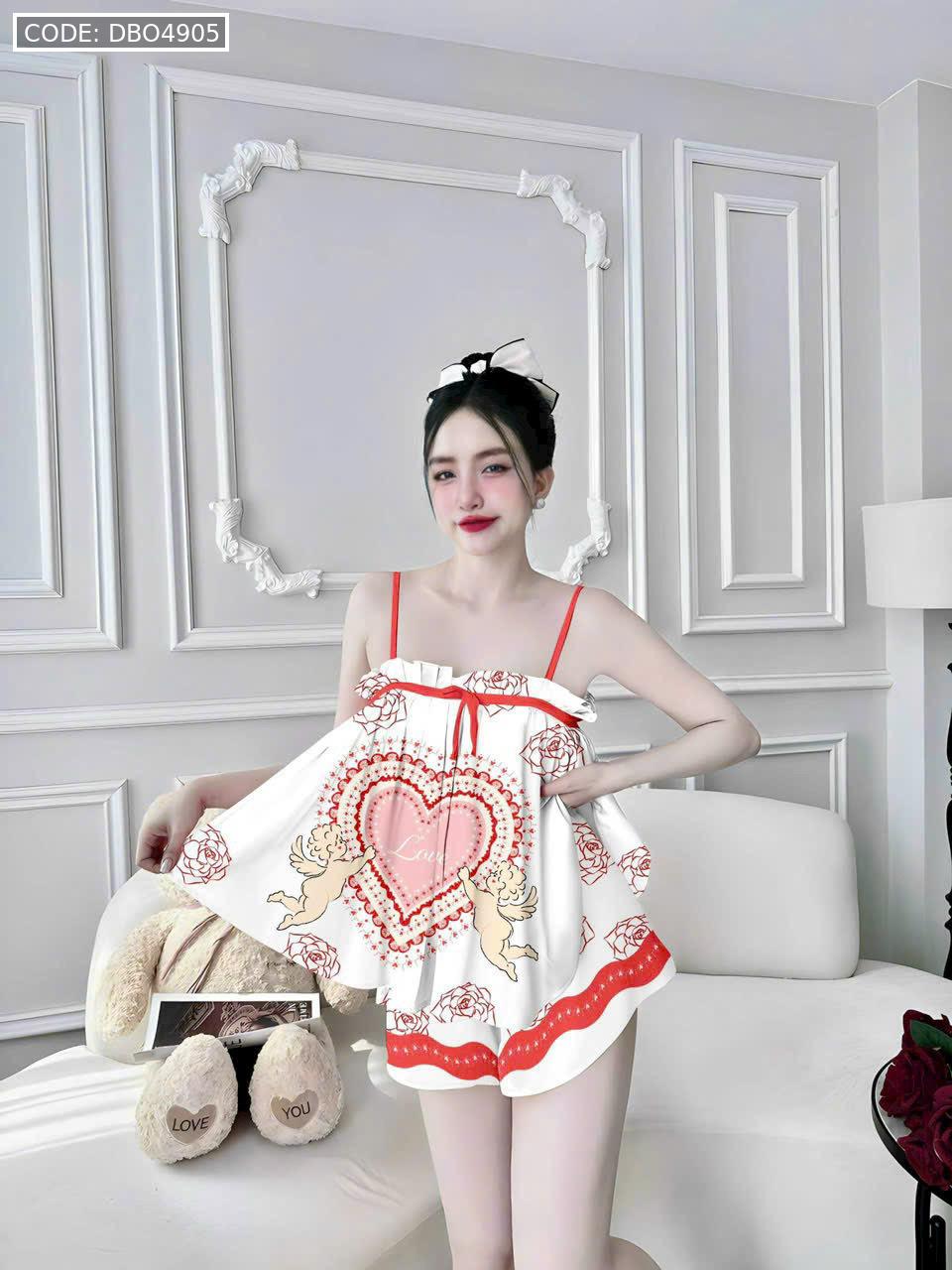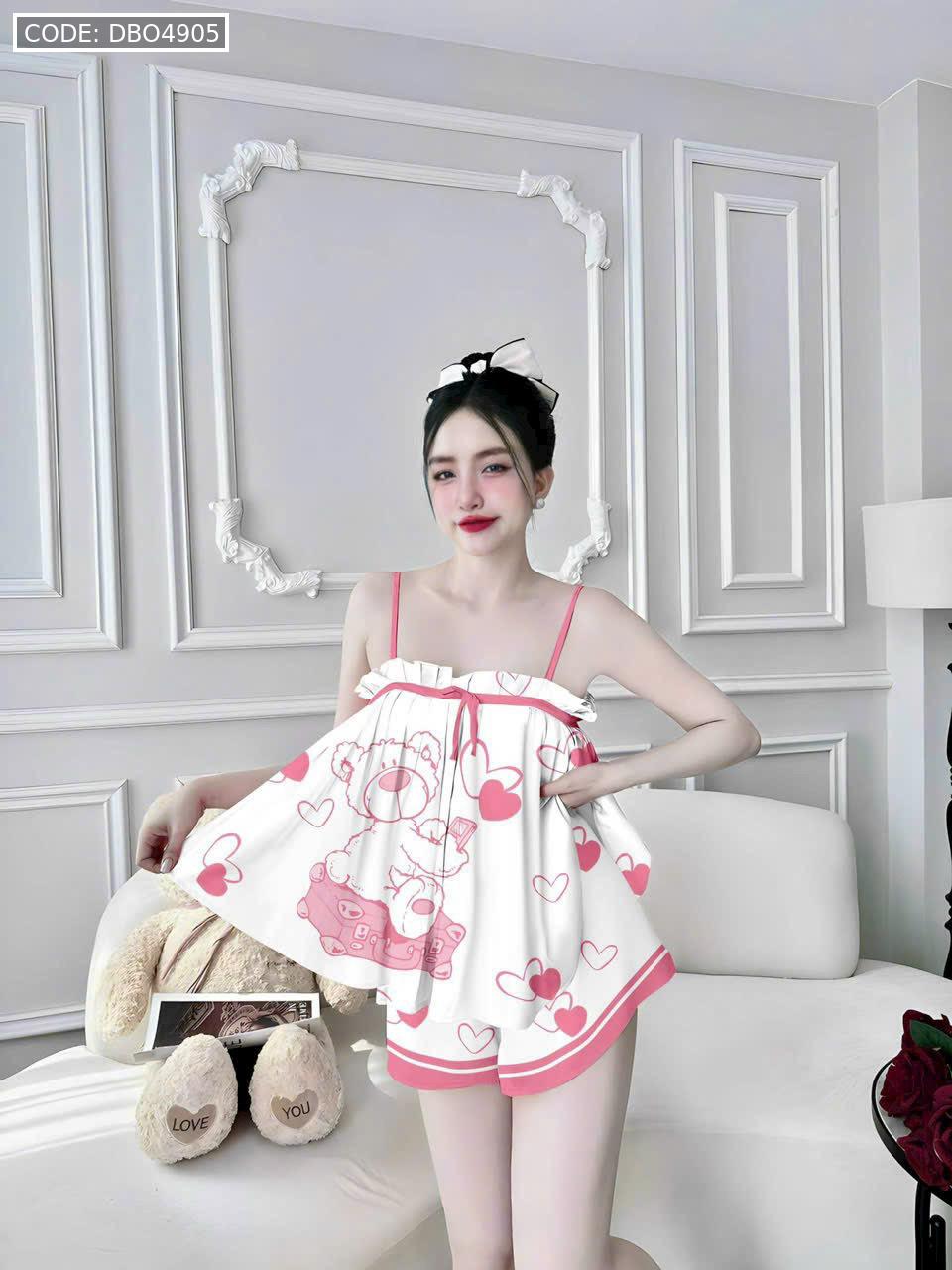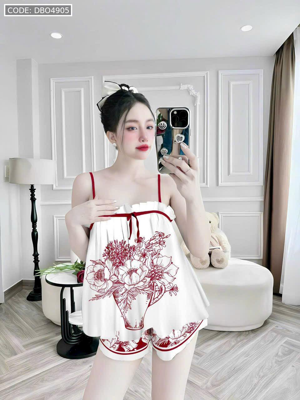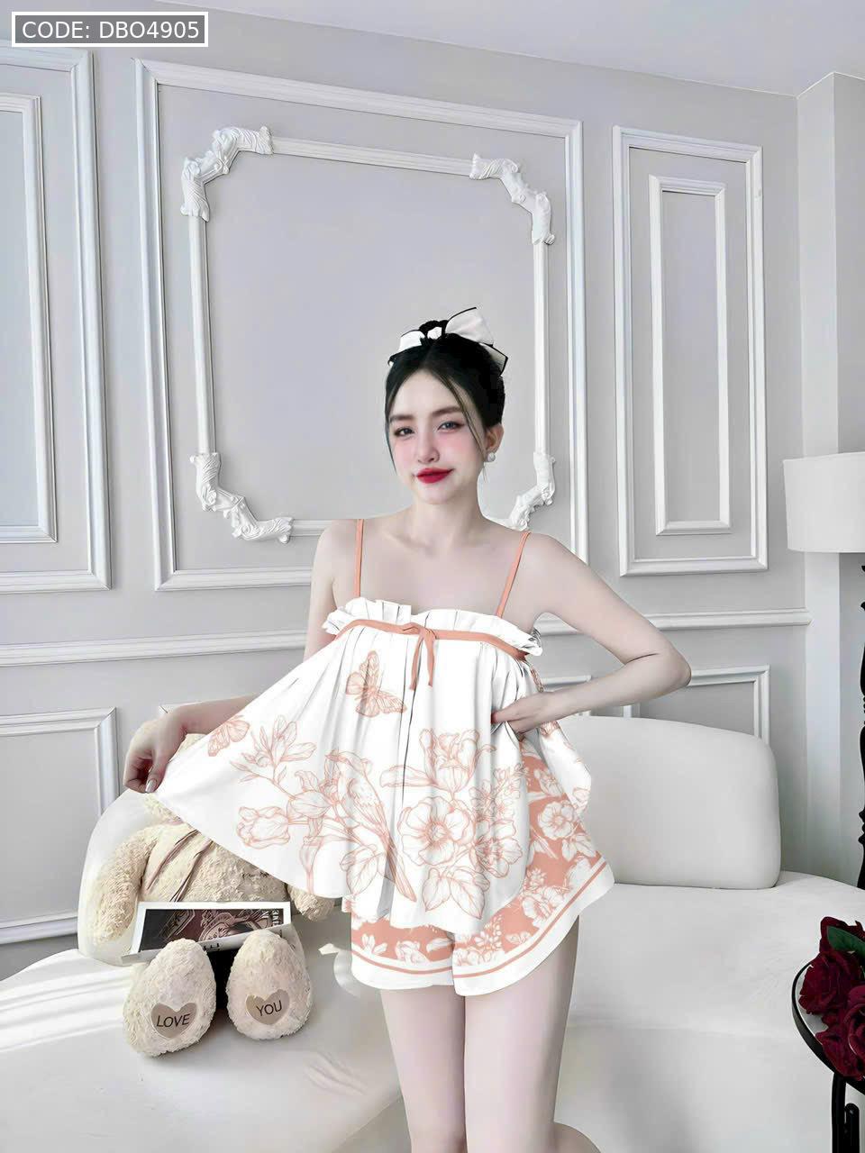 Đồ bộ quần đùi latin áo hai dây may nhún bèo