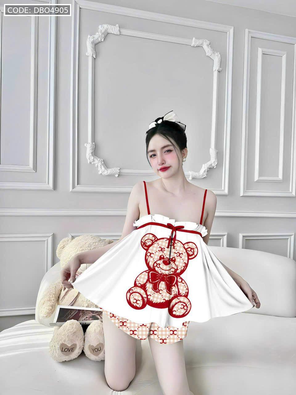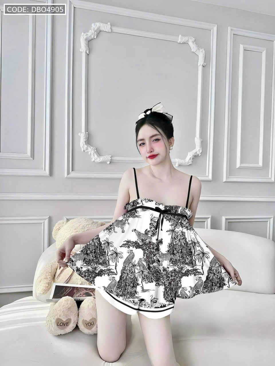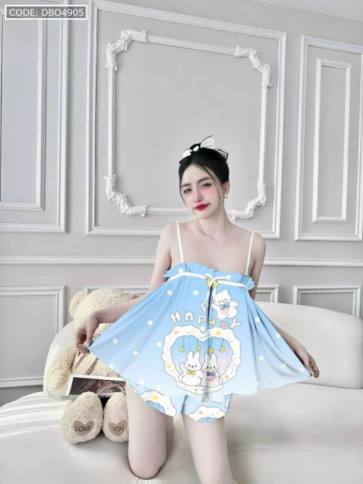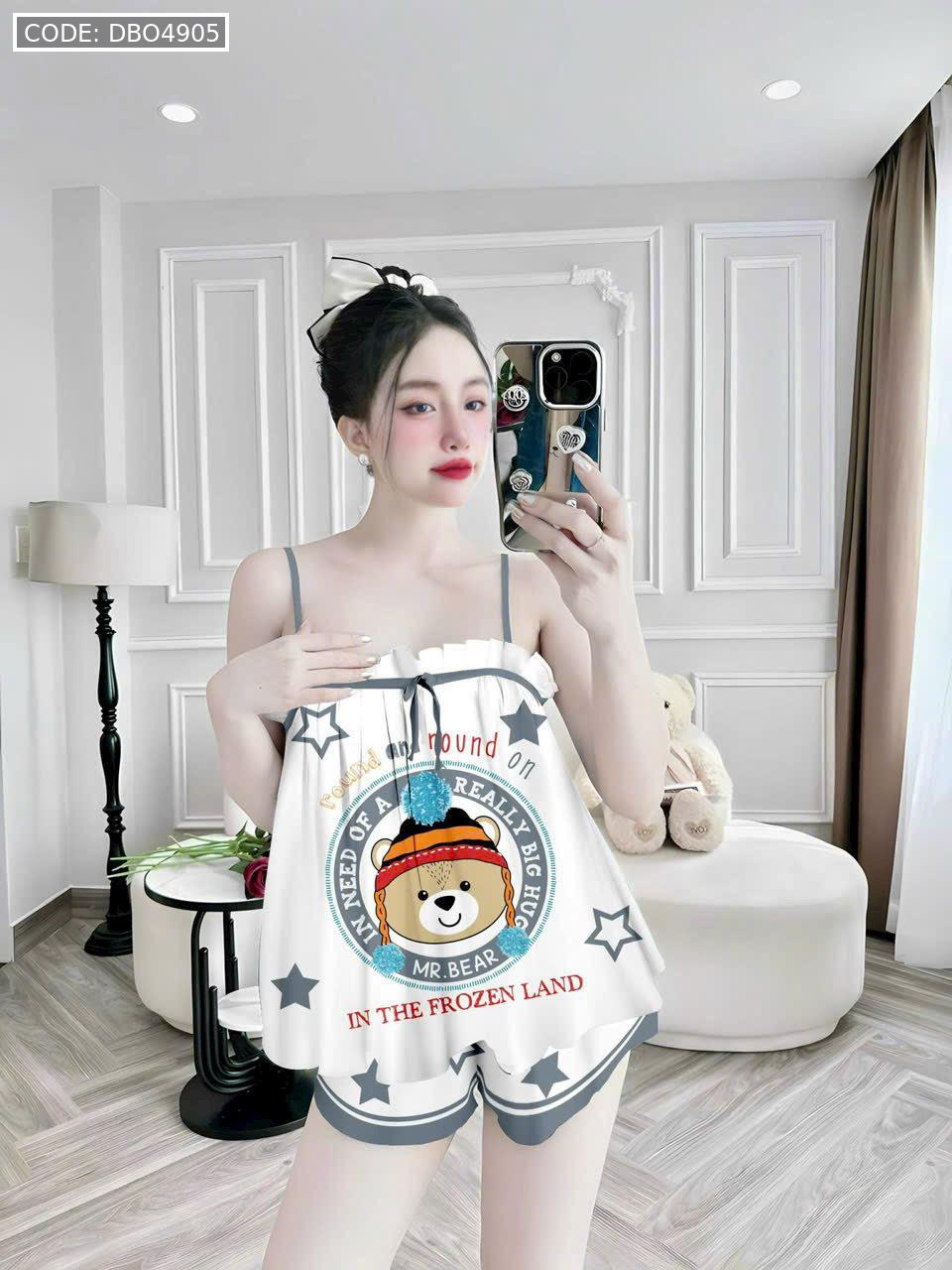 Đồ bộ quần đùi latin áo hai dây may nhún bèo