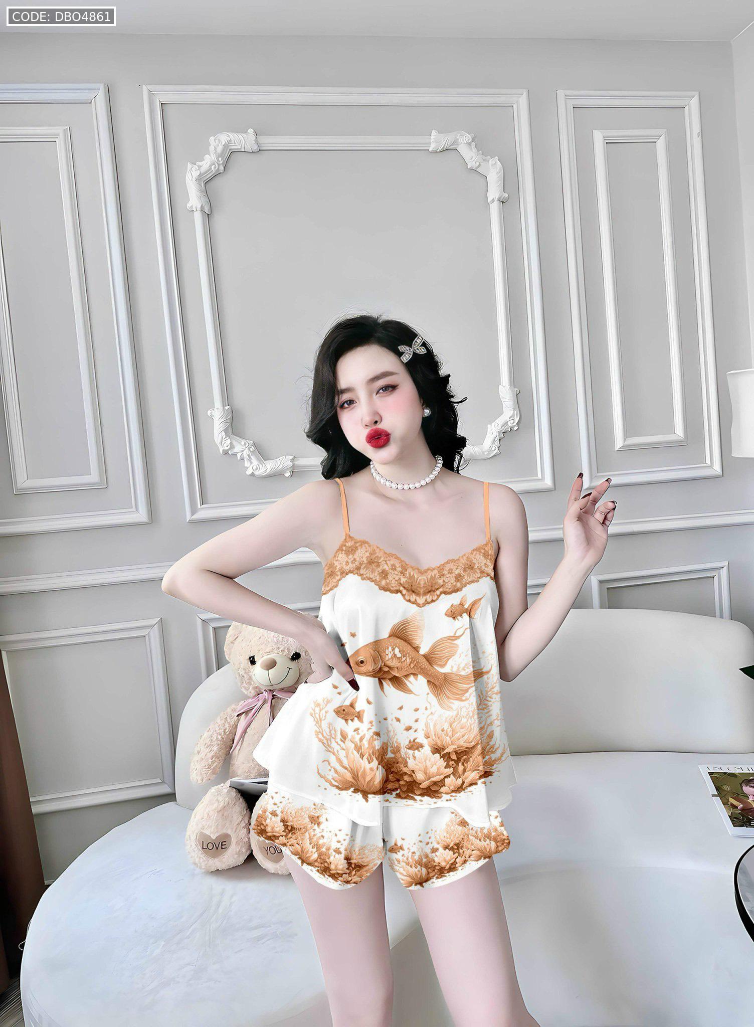 Đồ bộ quần đùi latin áo hai dây phối ren