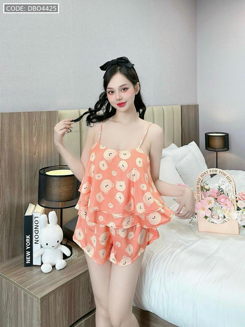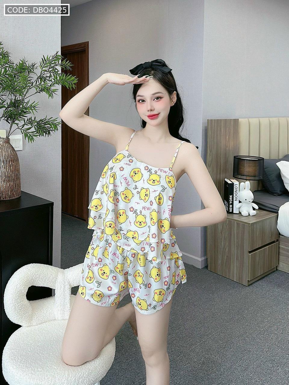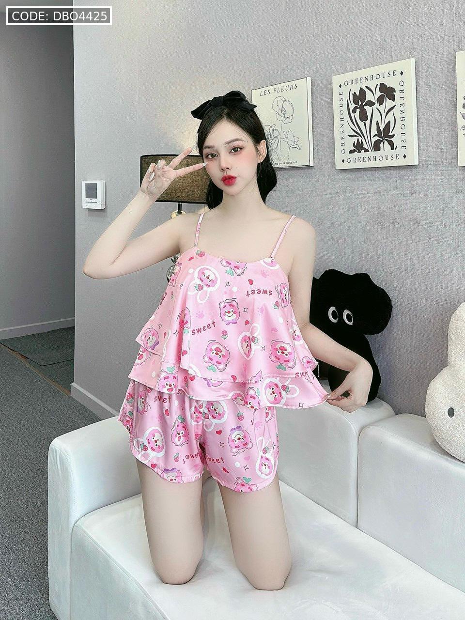 Đồ bộ quần đùi latin áo hai dây tầng in hình dể thương