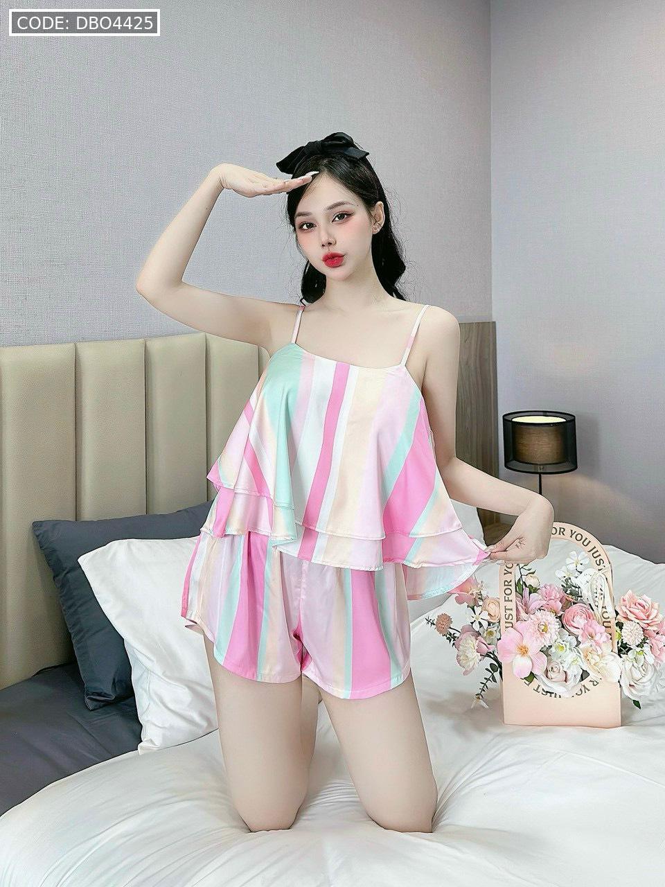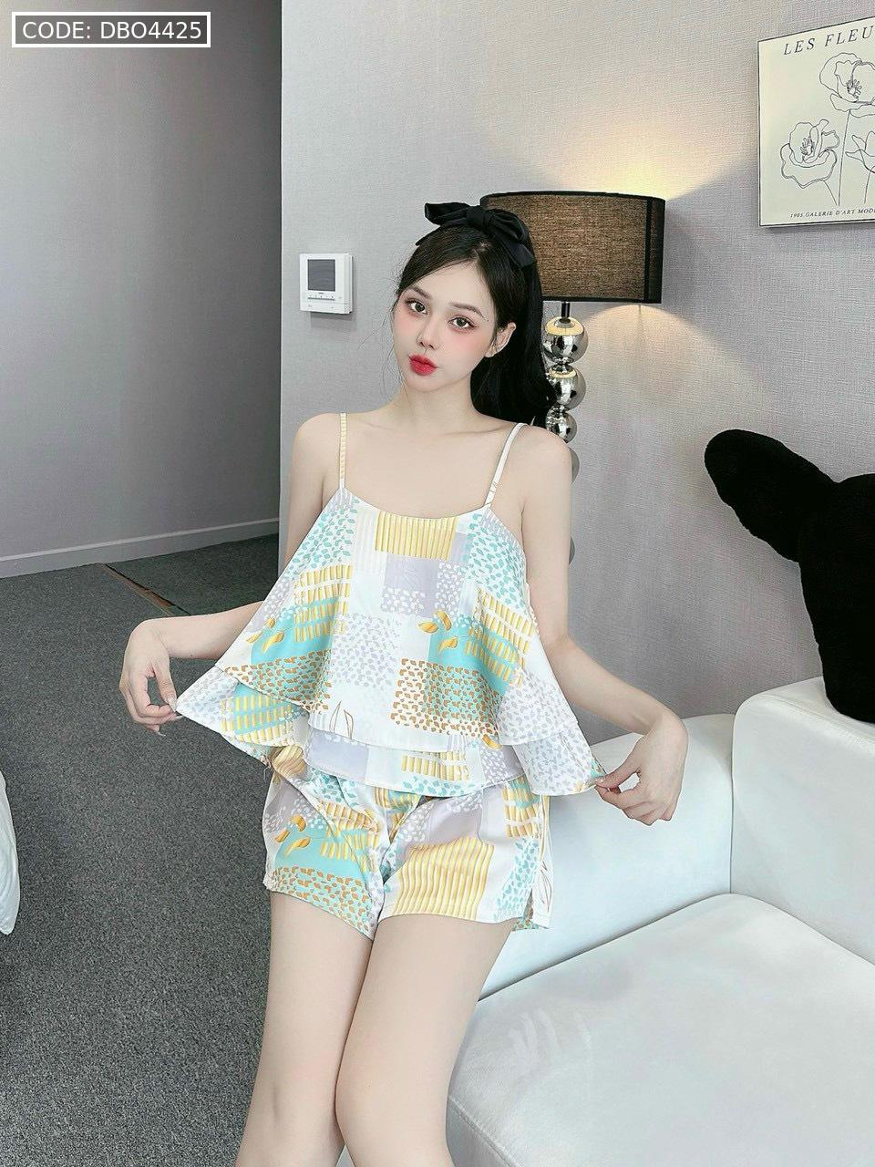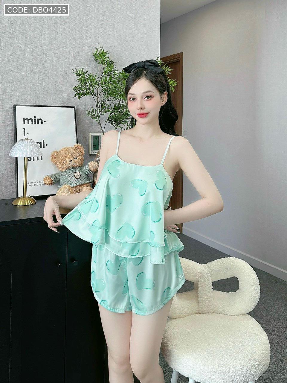 Đồ bộ quần đùi latin áo hai dây tầng in hình dể thương