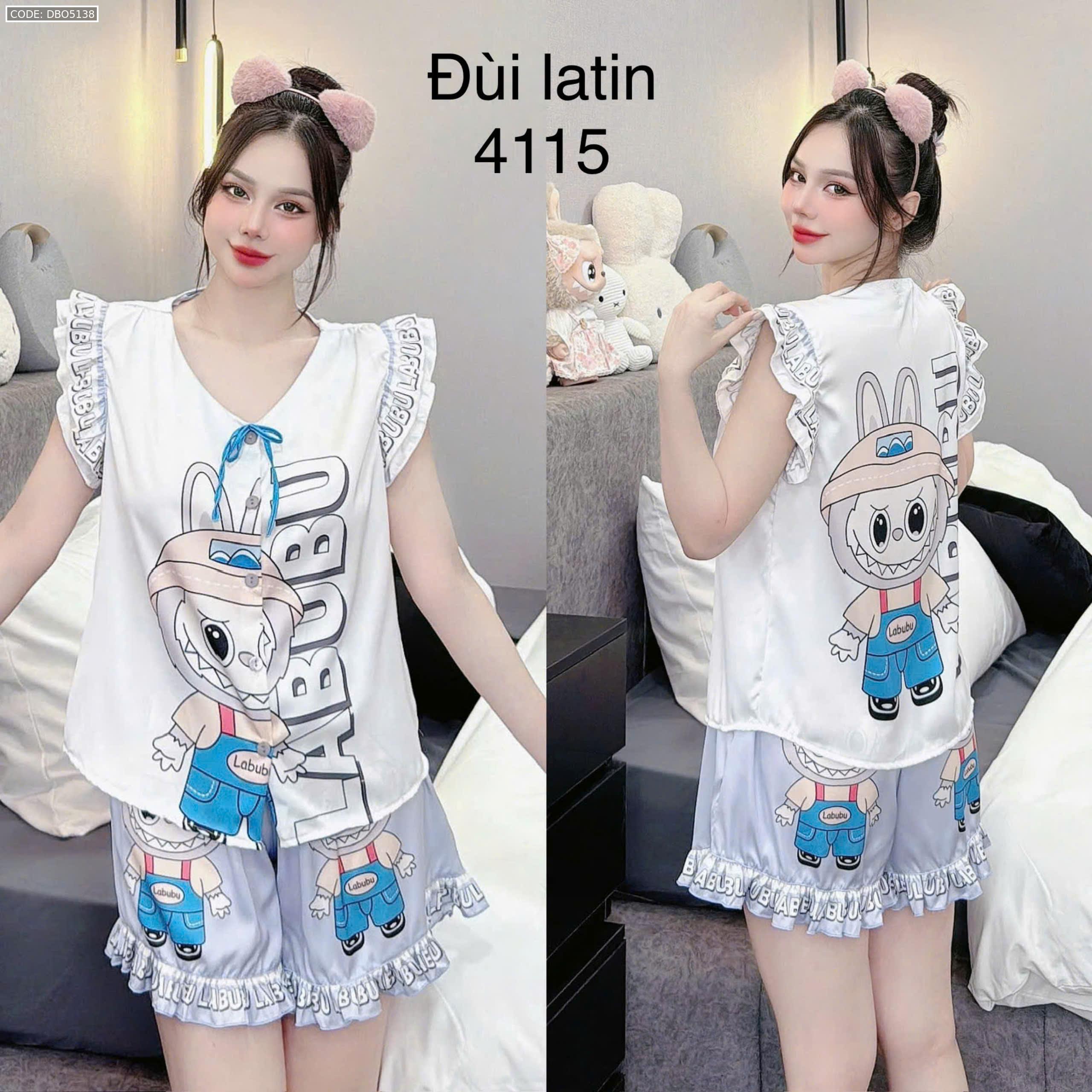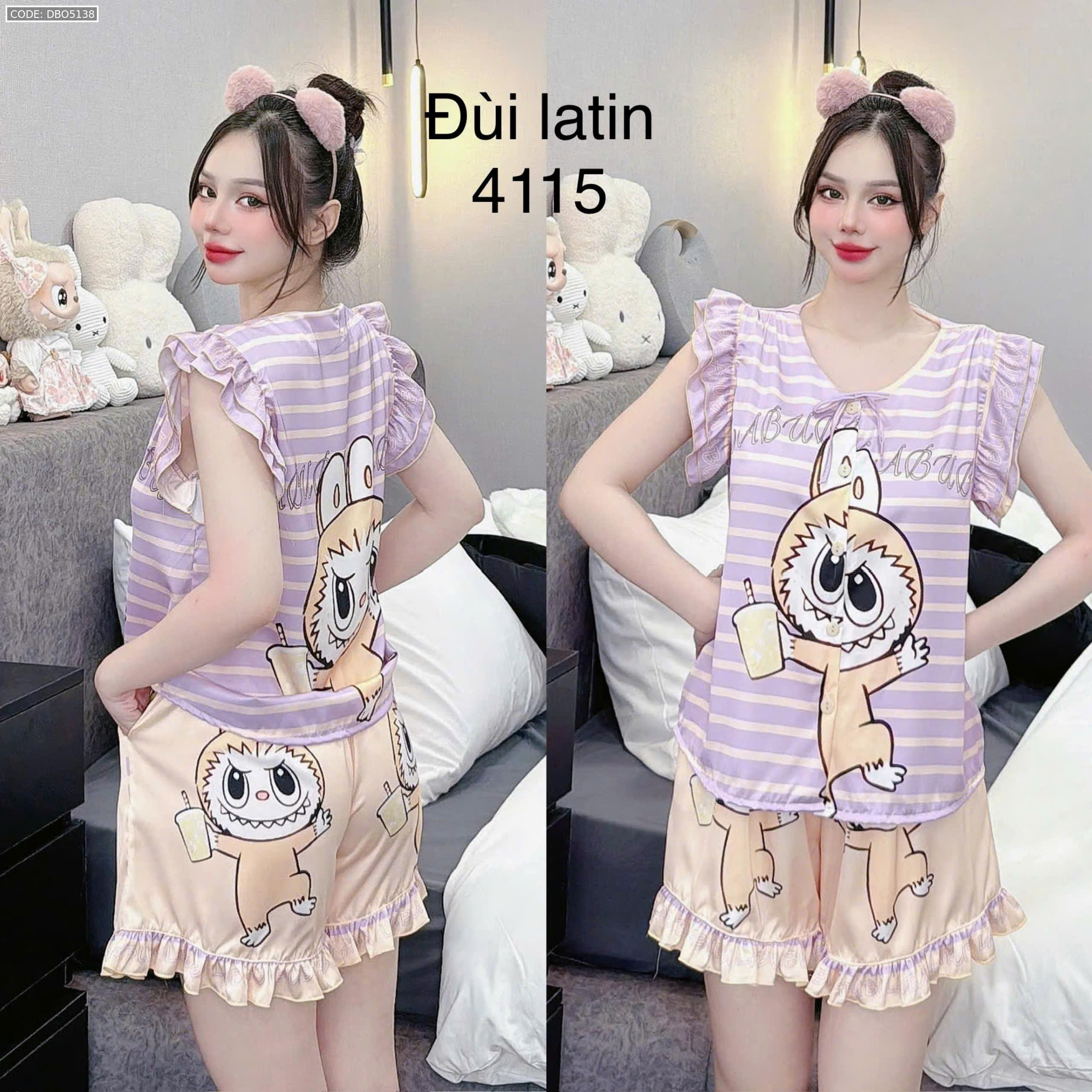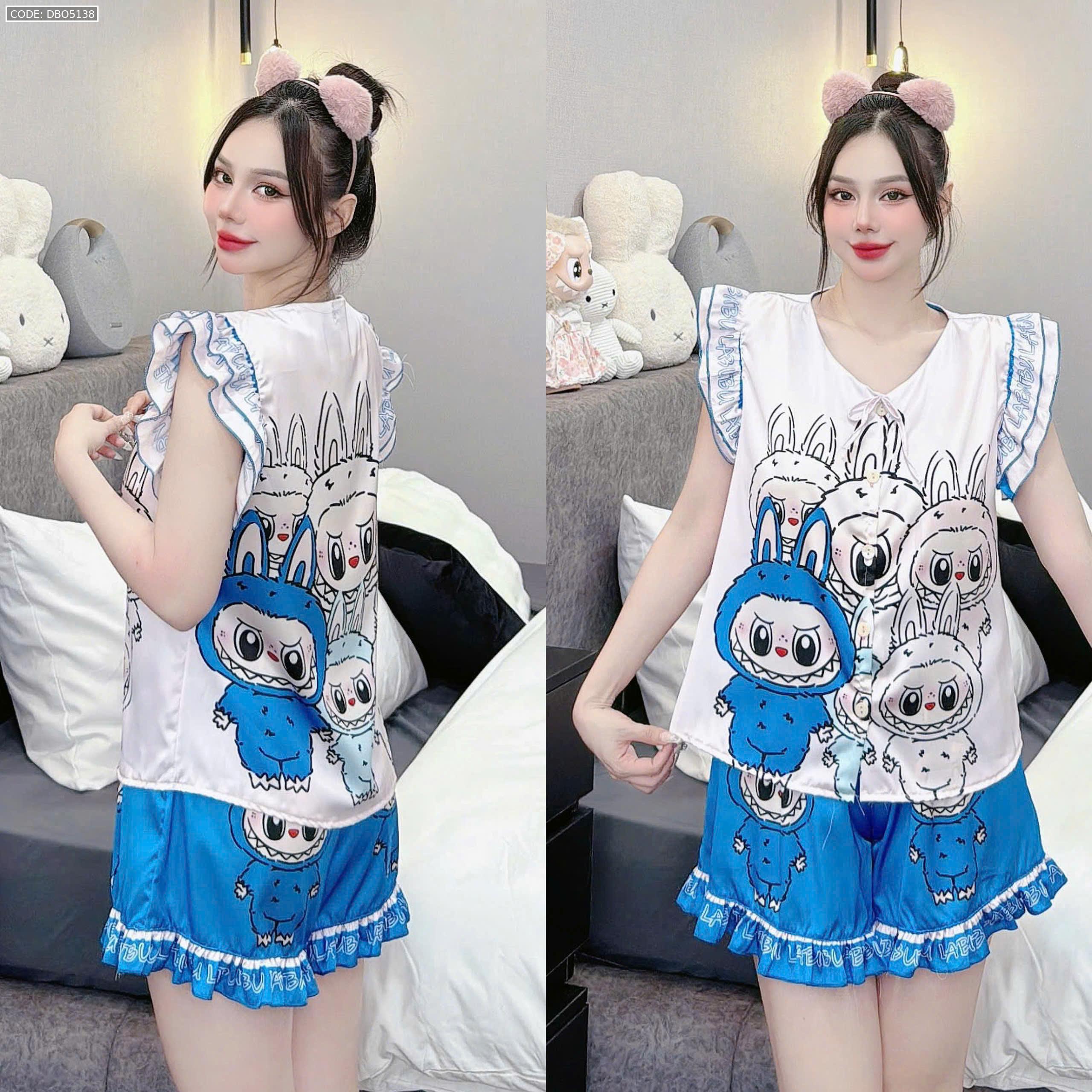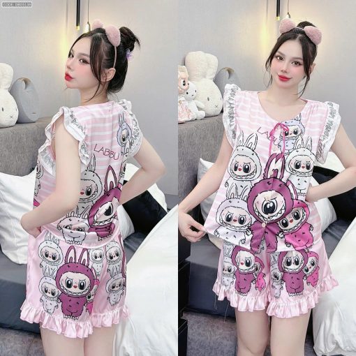 Đồ bộ quần đùi latin áo tay bèo hình labubu