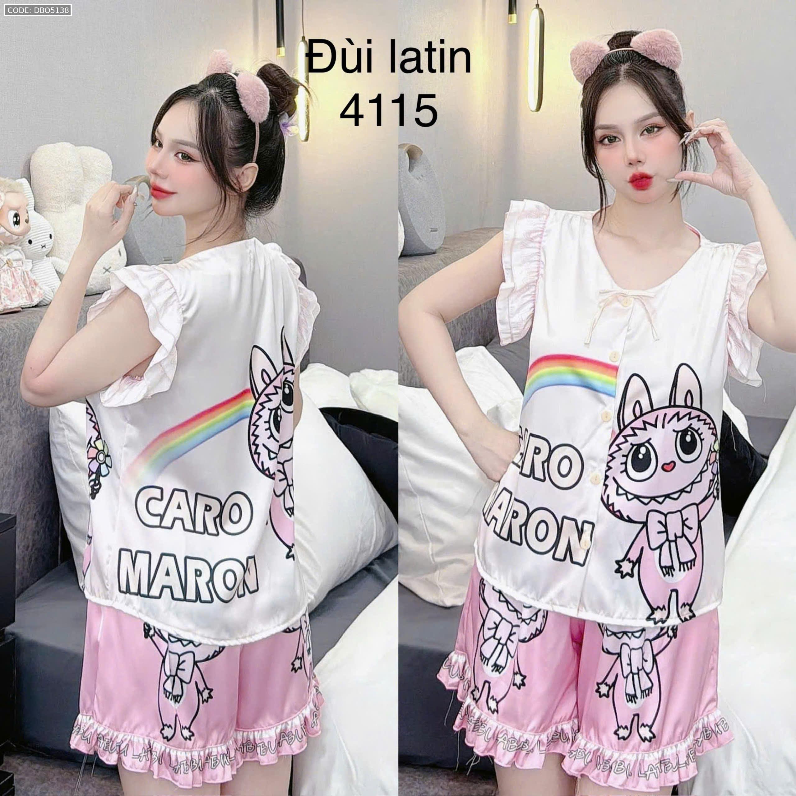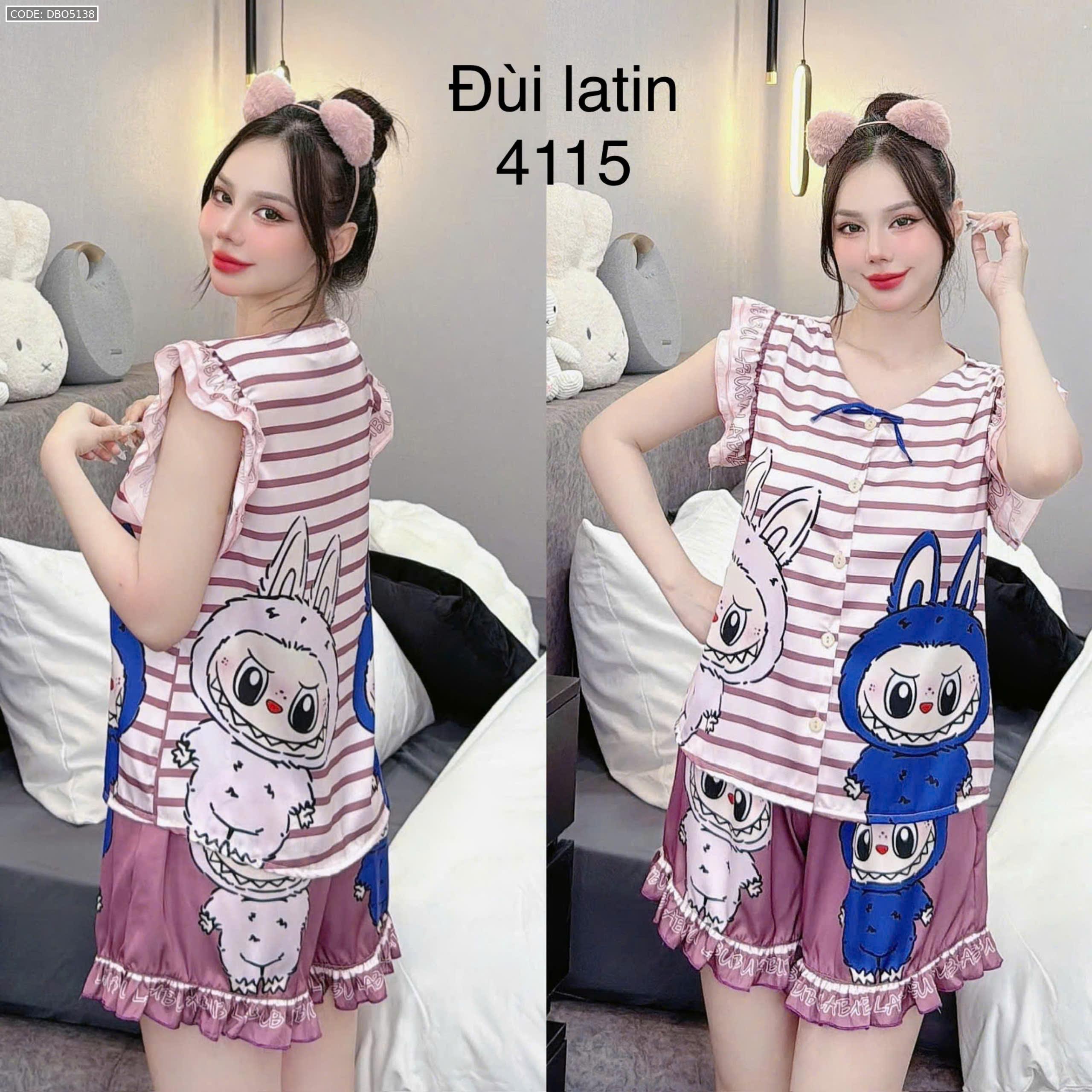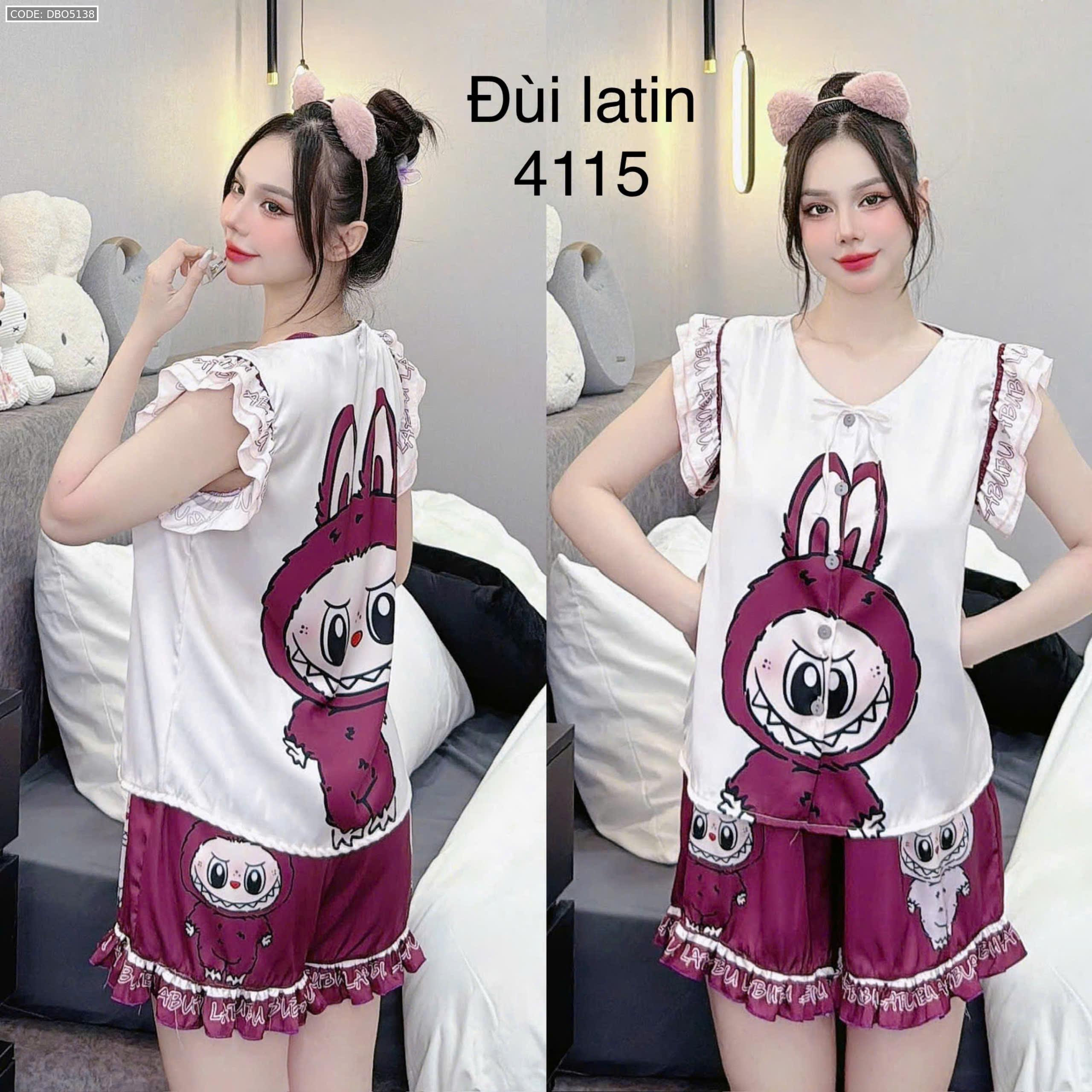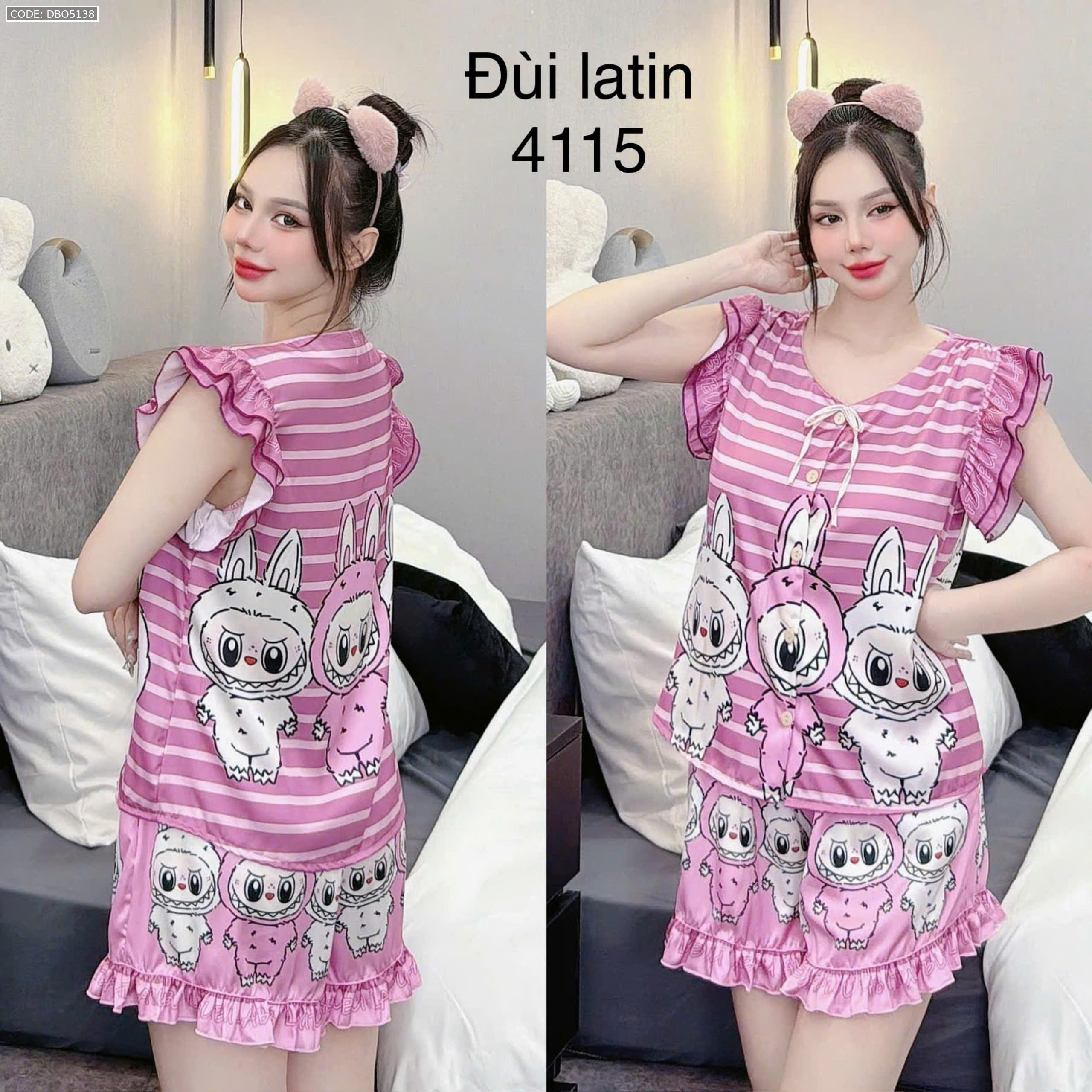 Đồ bộ quần đùi latin áo tay bèo hình labubu