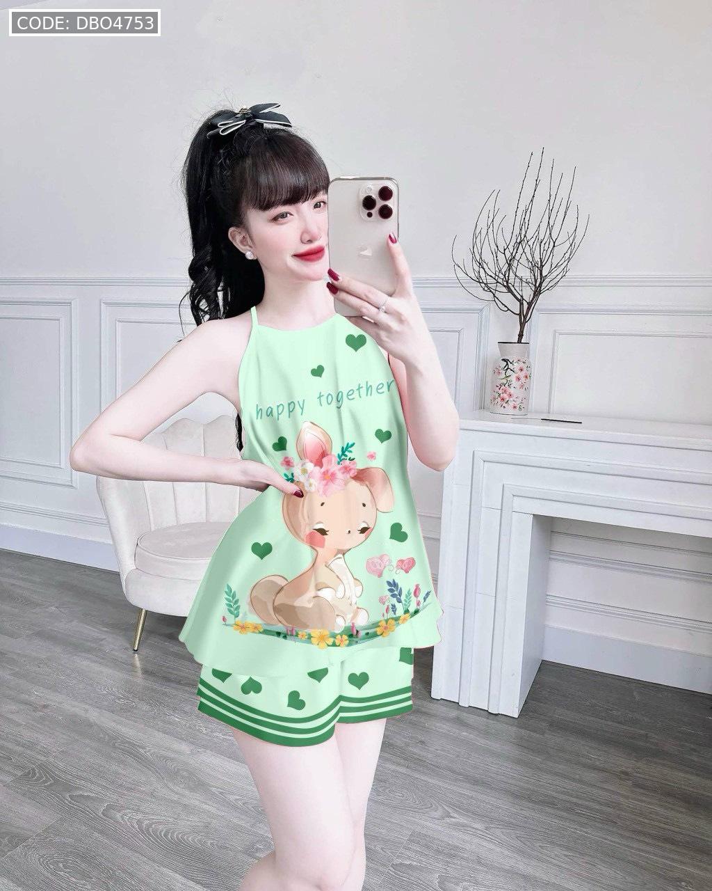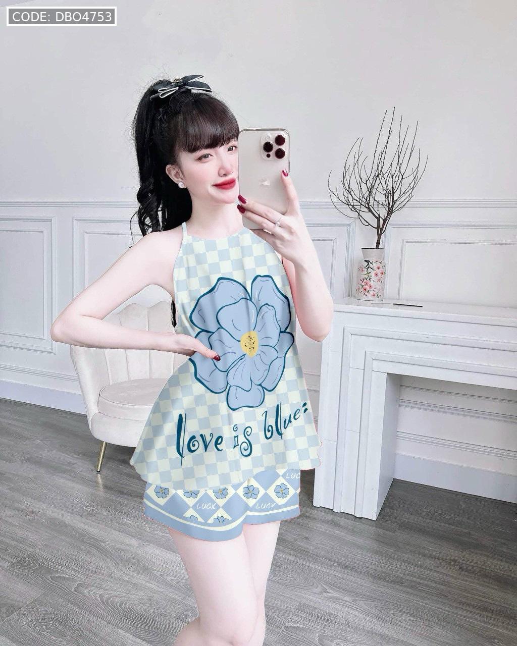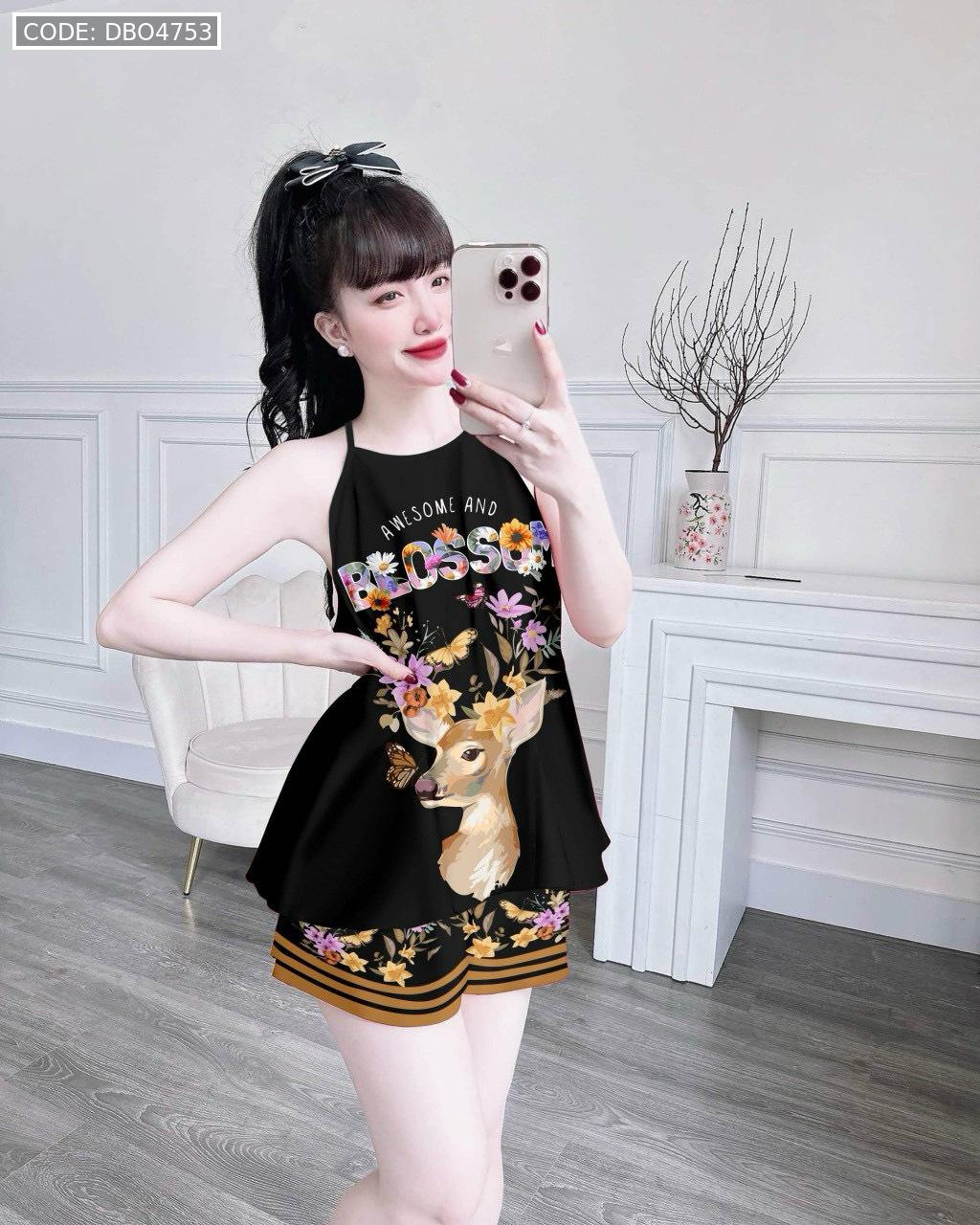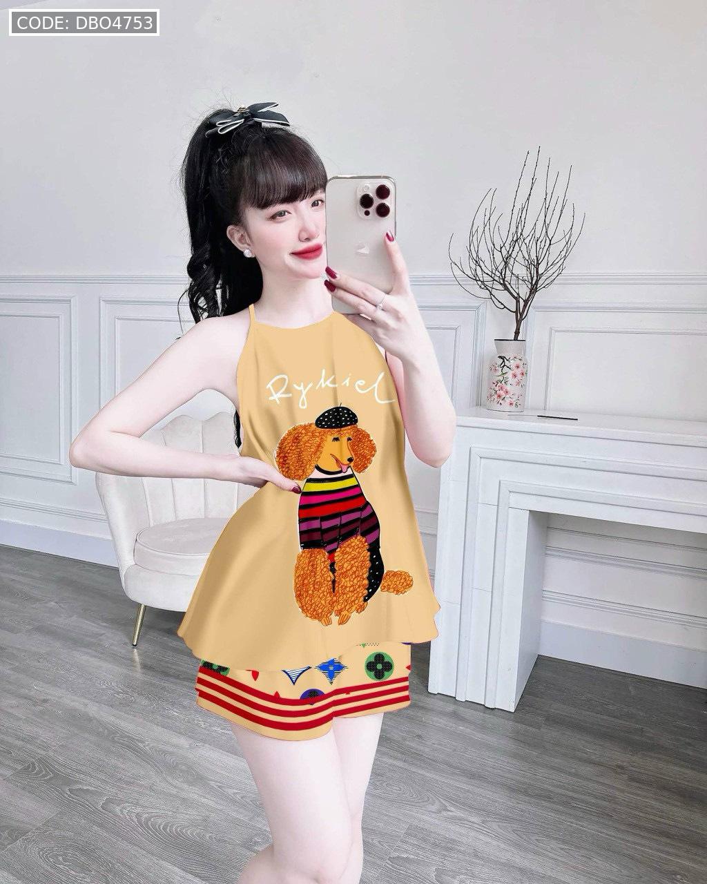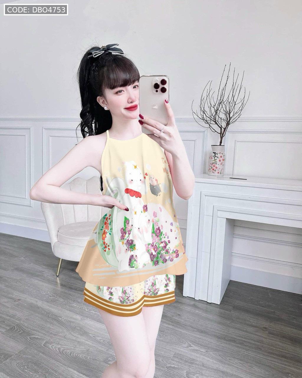 Đồ bộ quần đùi latin áo yếm in nhiều hình khác nhau