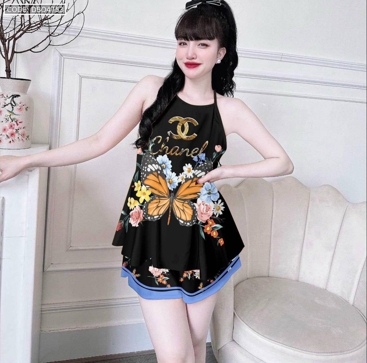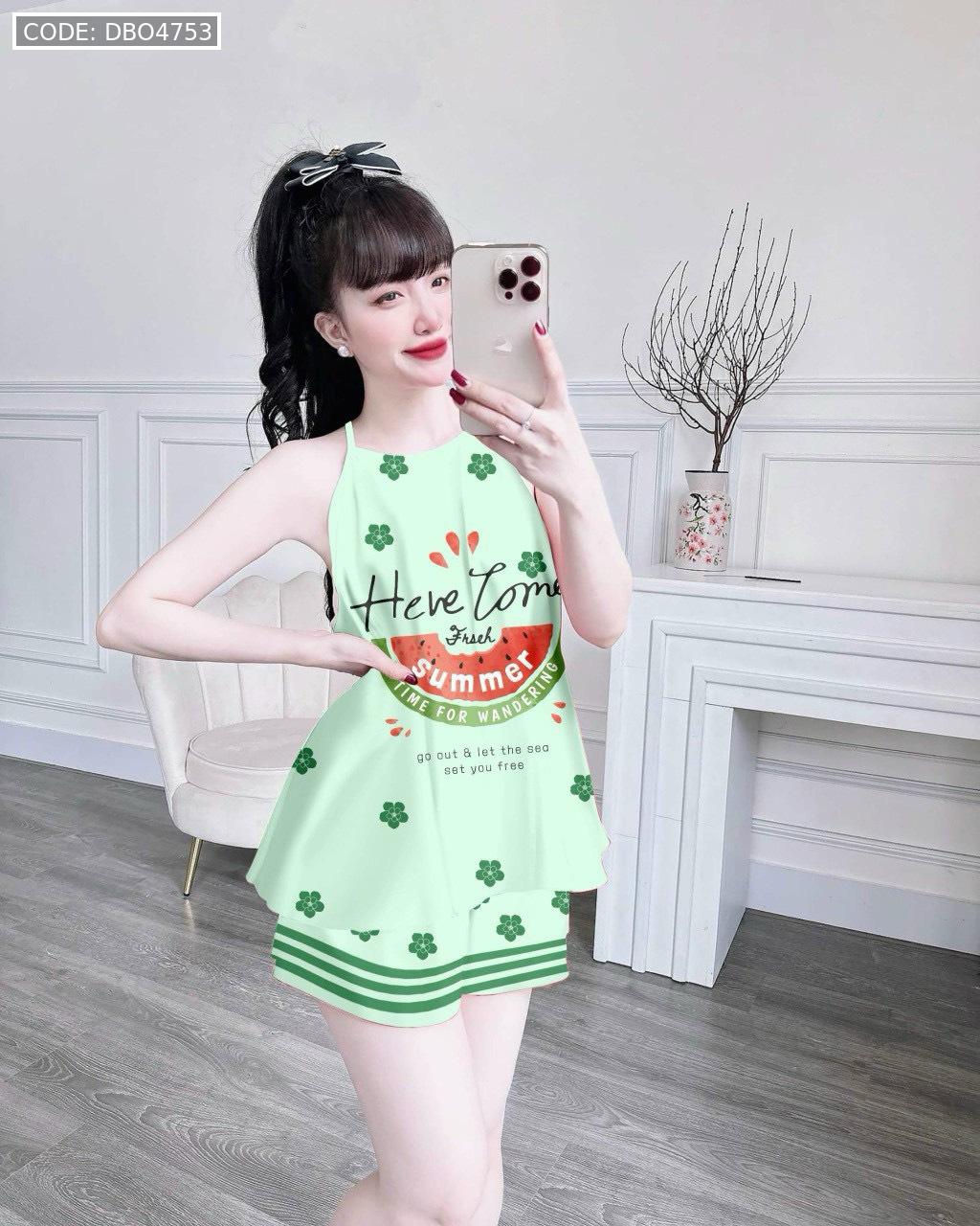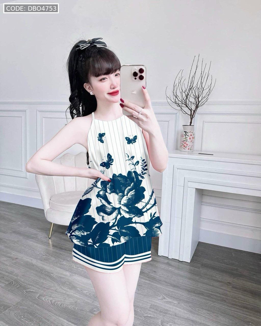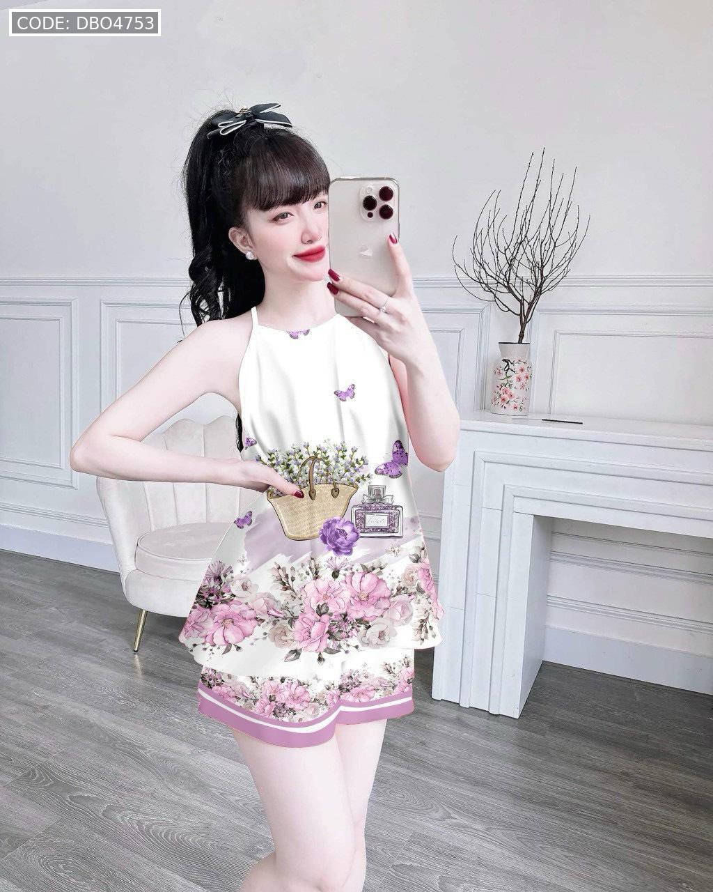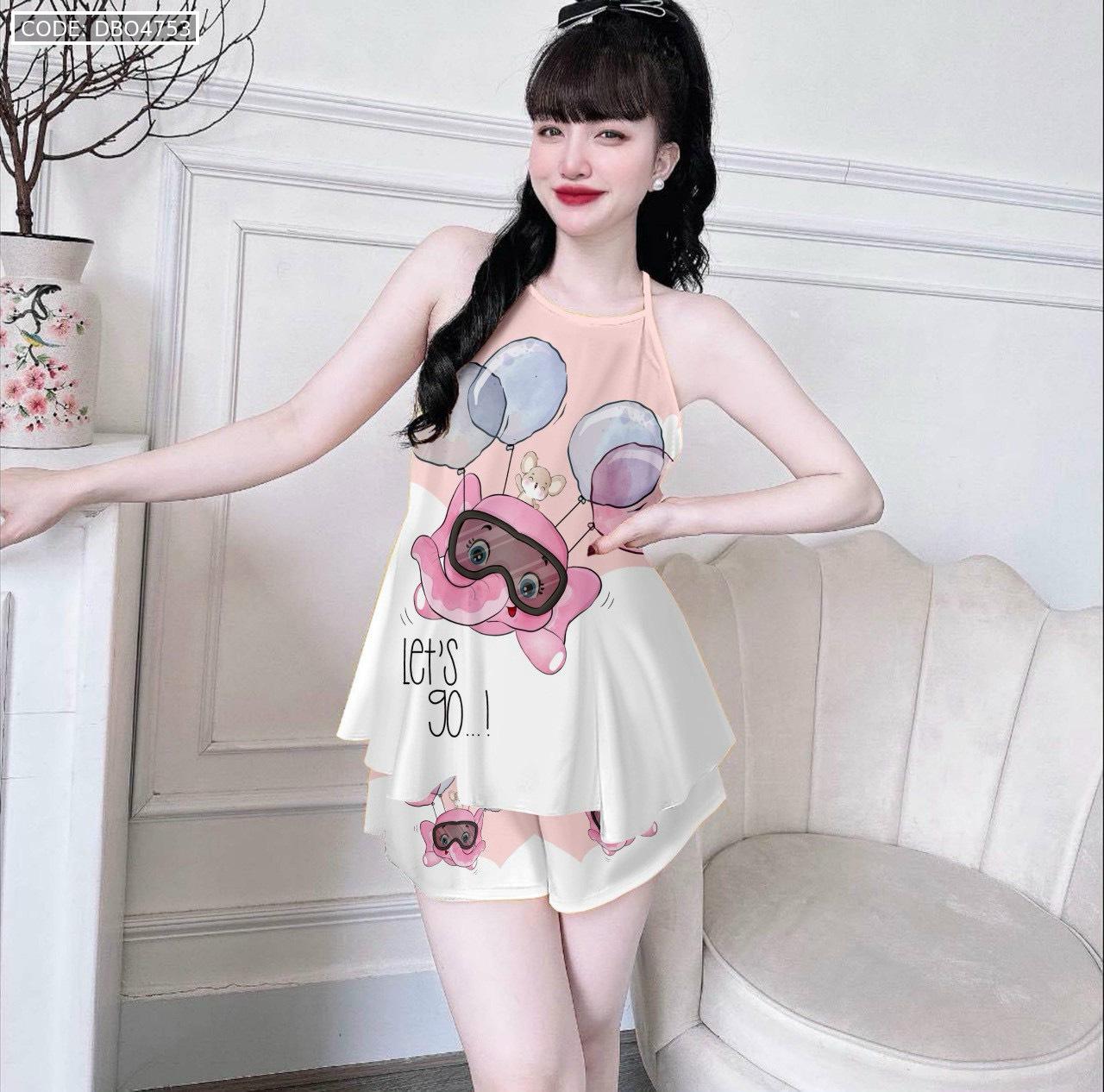 Đồ bộ quần đùi latin áo yếm in nhiều hình khác nhau