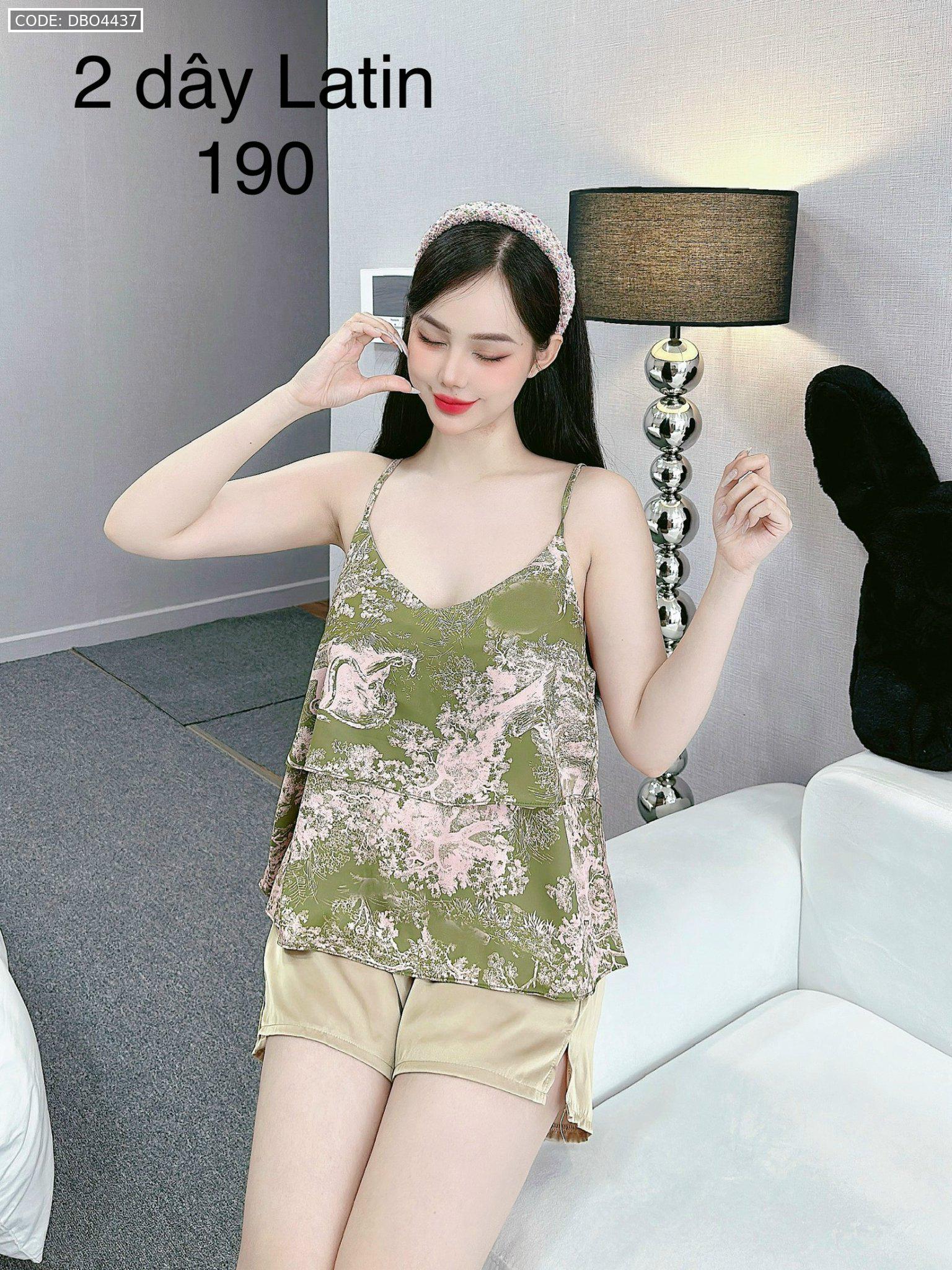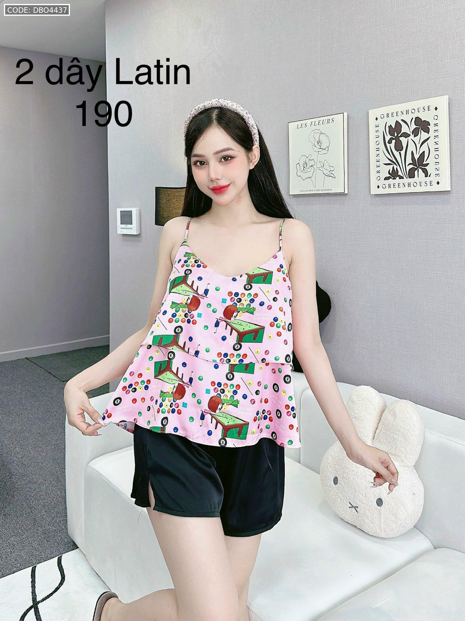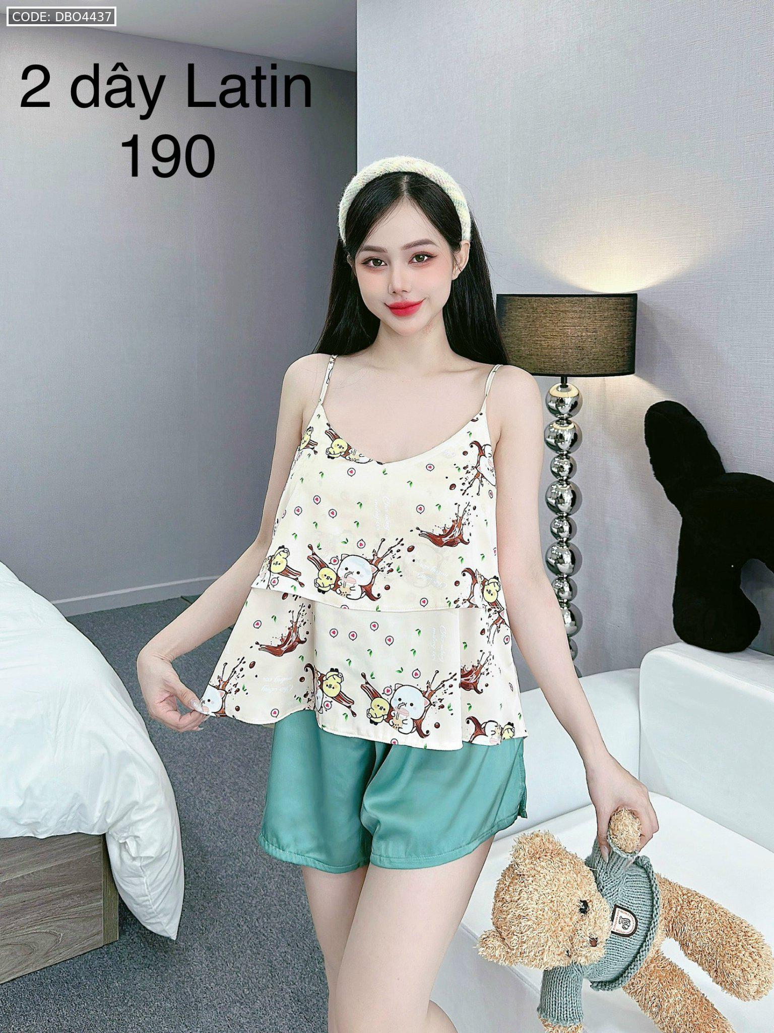 Đồ bộ quần đùi trơn latin áo hai dây tầng in hình dể thương