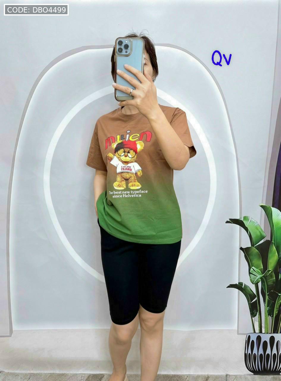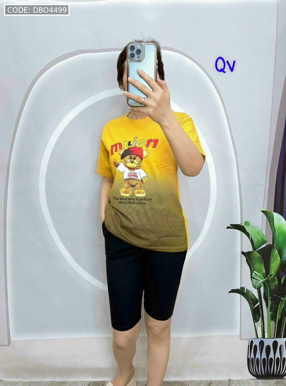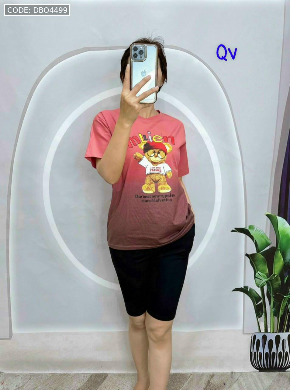 đồ bộ quần lỡ đen áo tay ngắn 2 màu loang in hình gấu