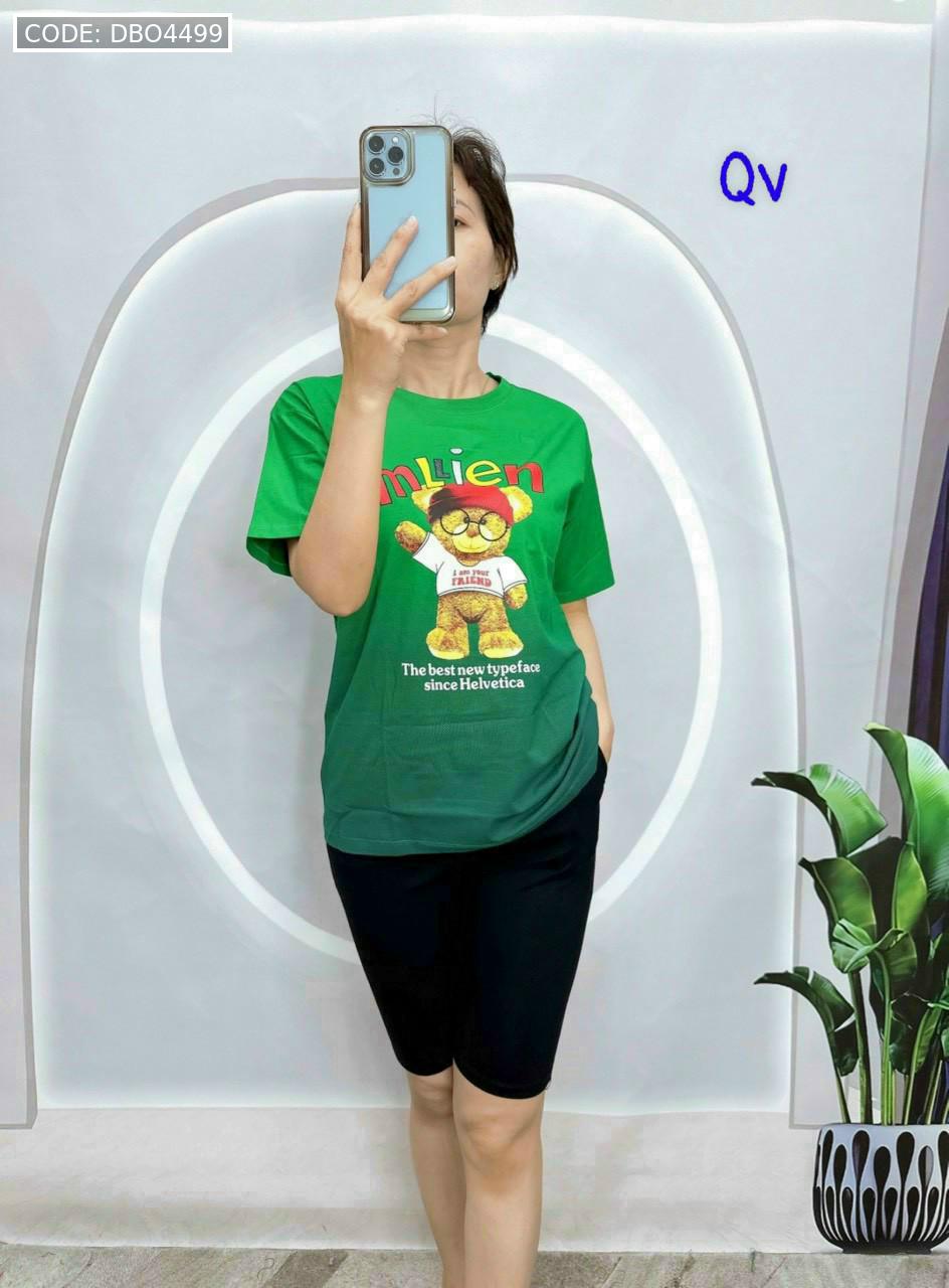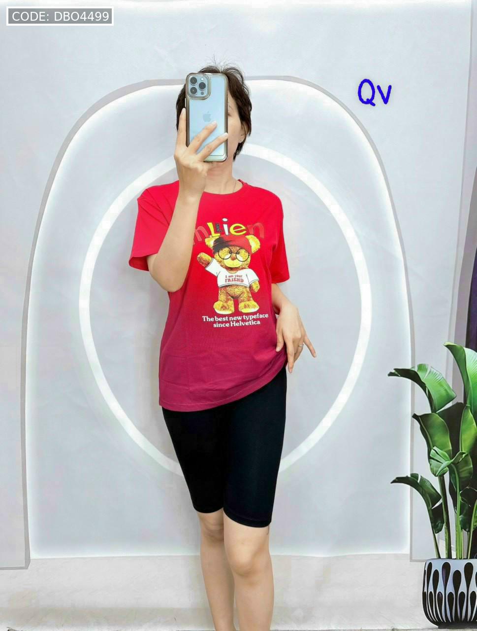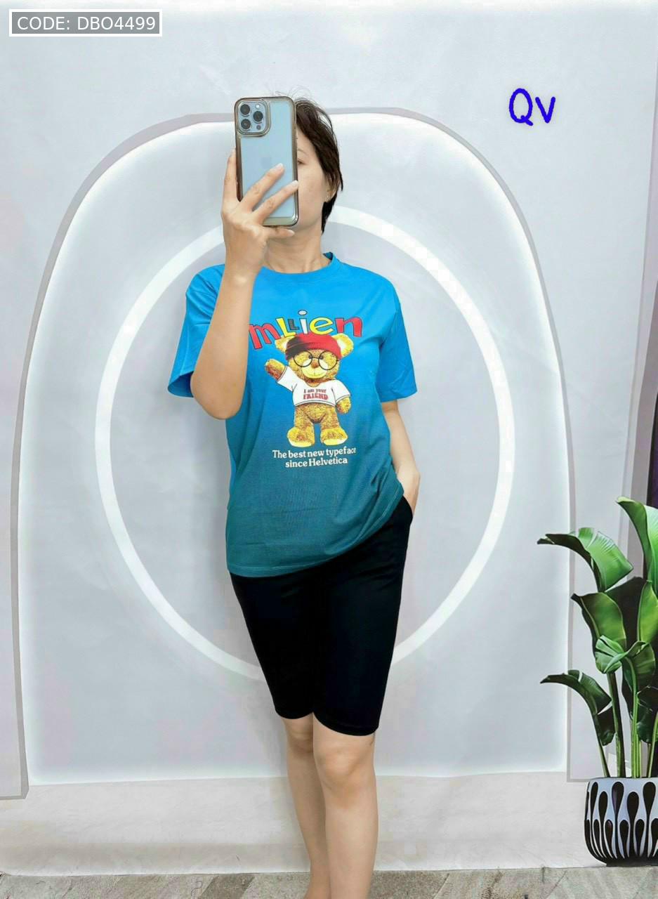 đồ bộ quần lỡ đen áo tay ngắn 2 màu loang in hình gấu