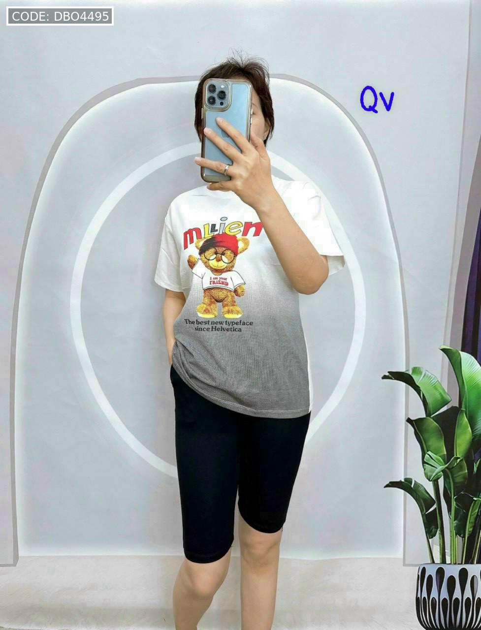 đồ bộ quần lỡ đen áo tay ngắn 2 màu loang in hình trái tim