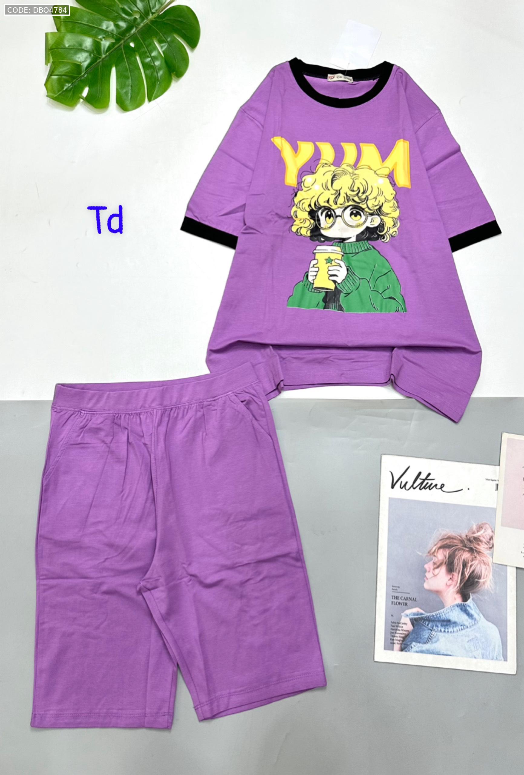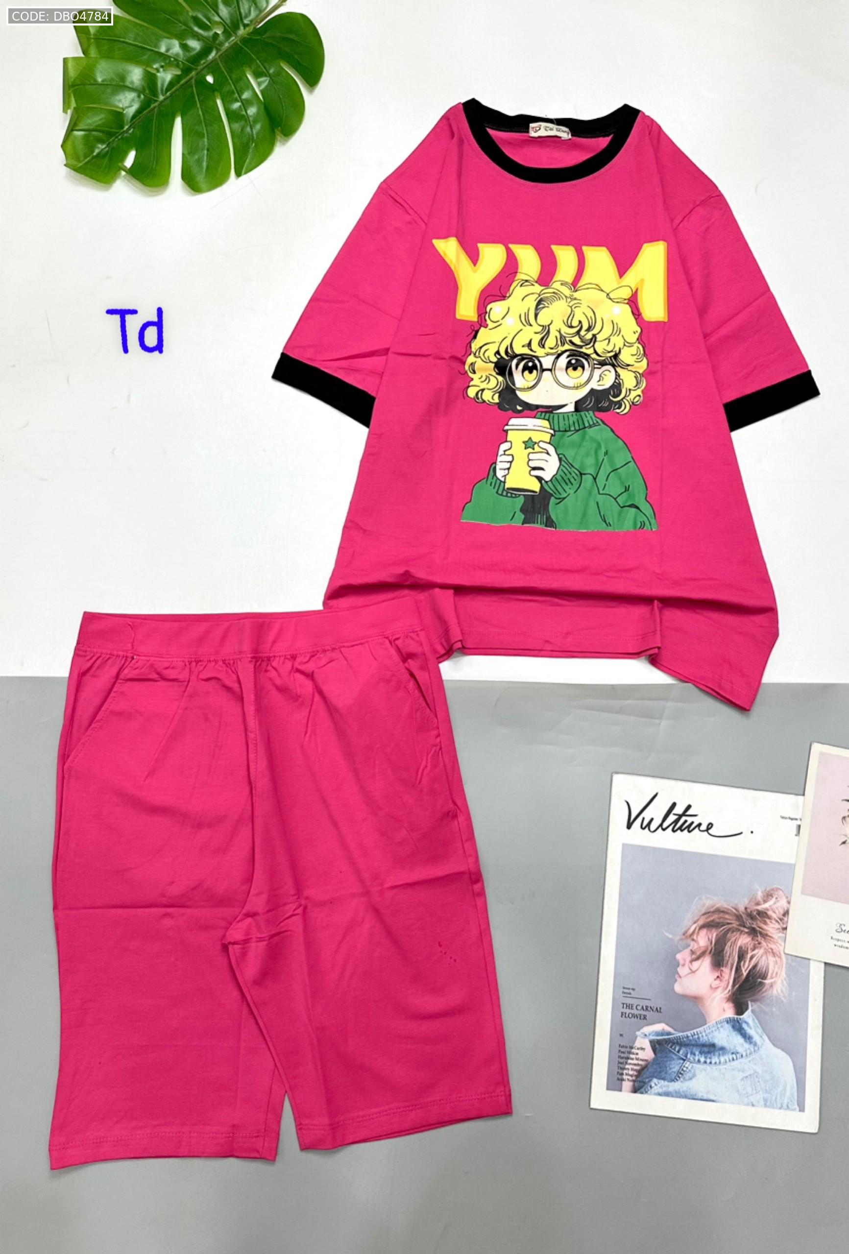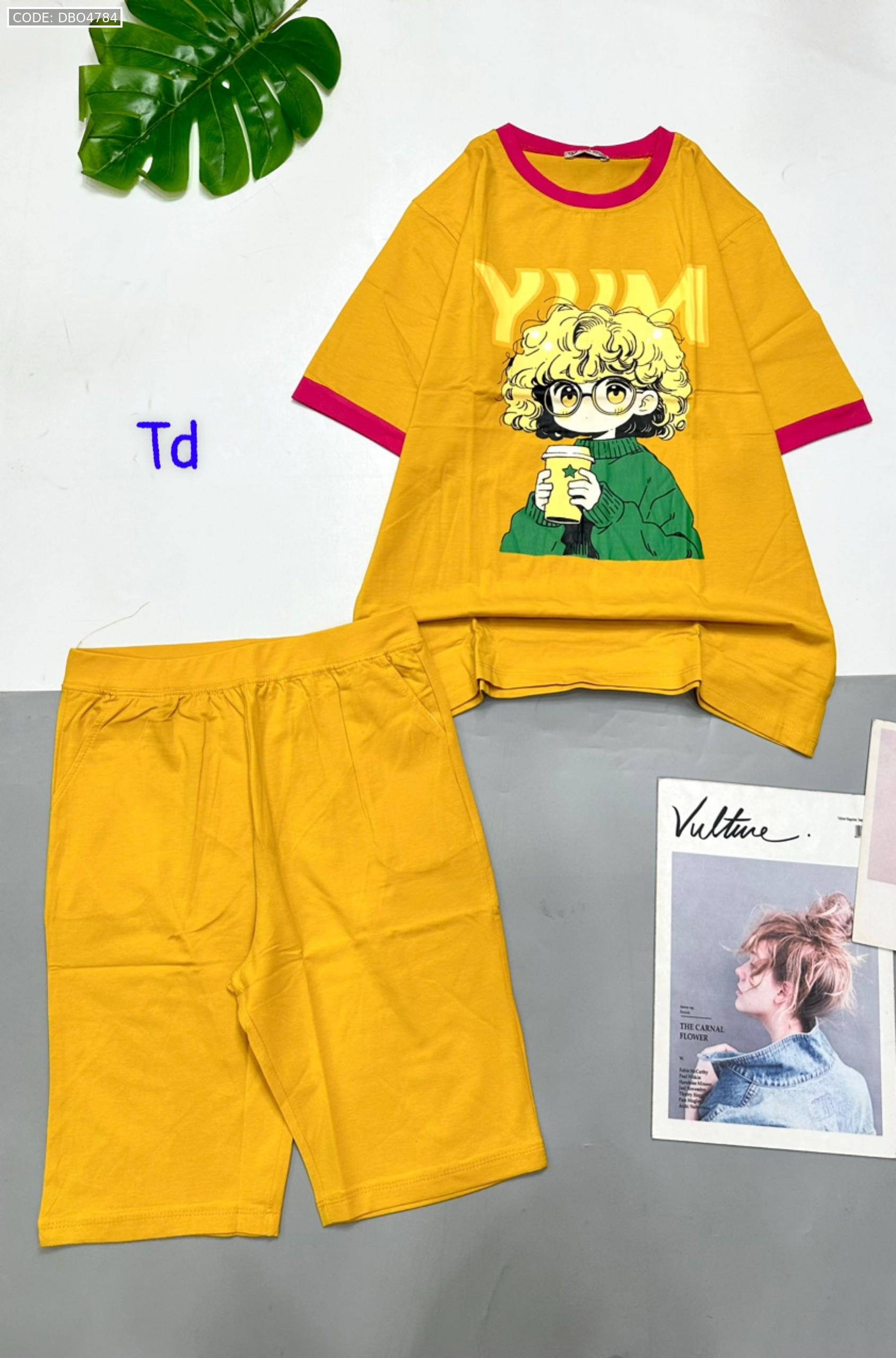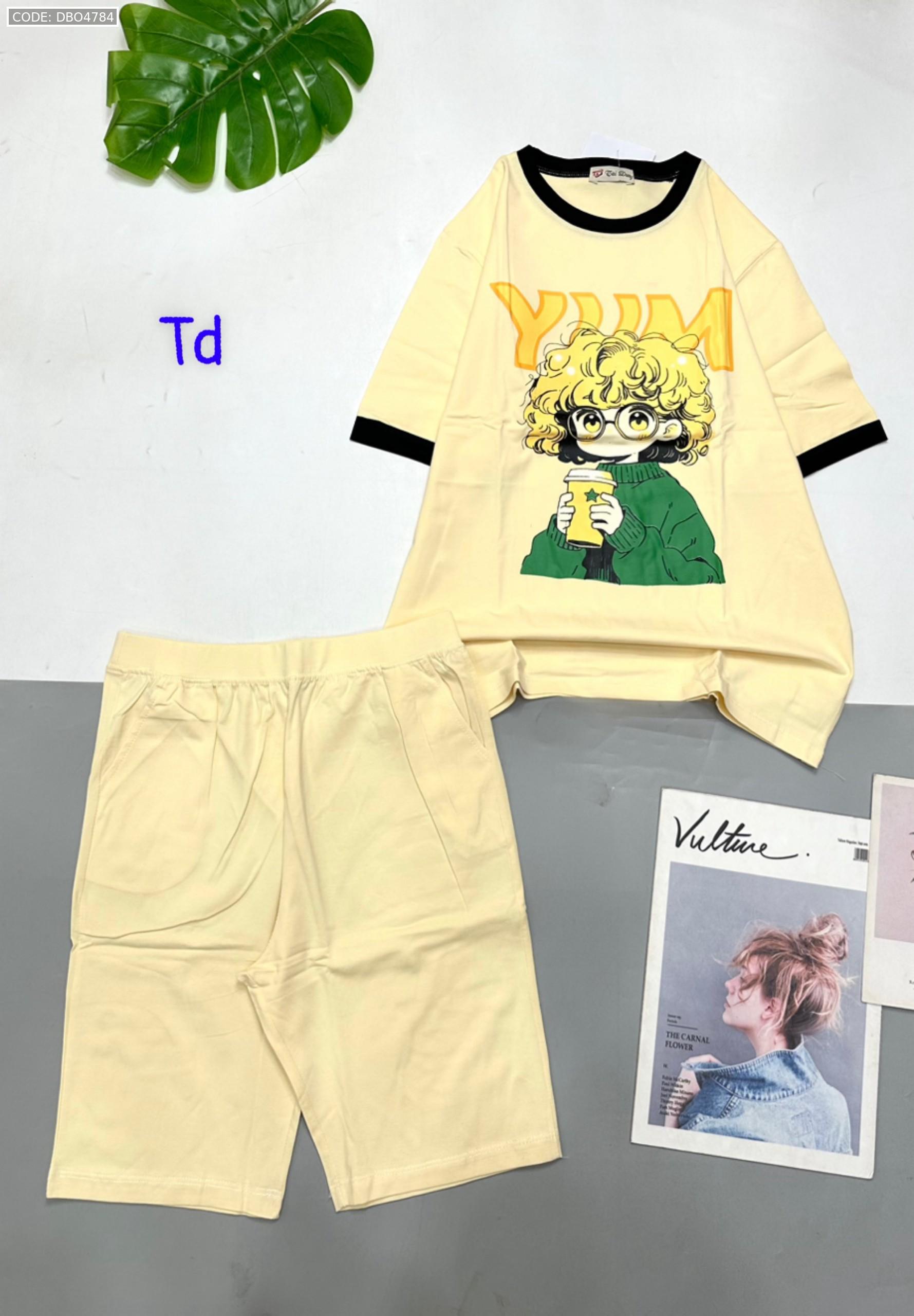Đồ bộ quần lửng áo tay ngắn in hình bé tóc rối