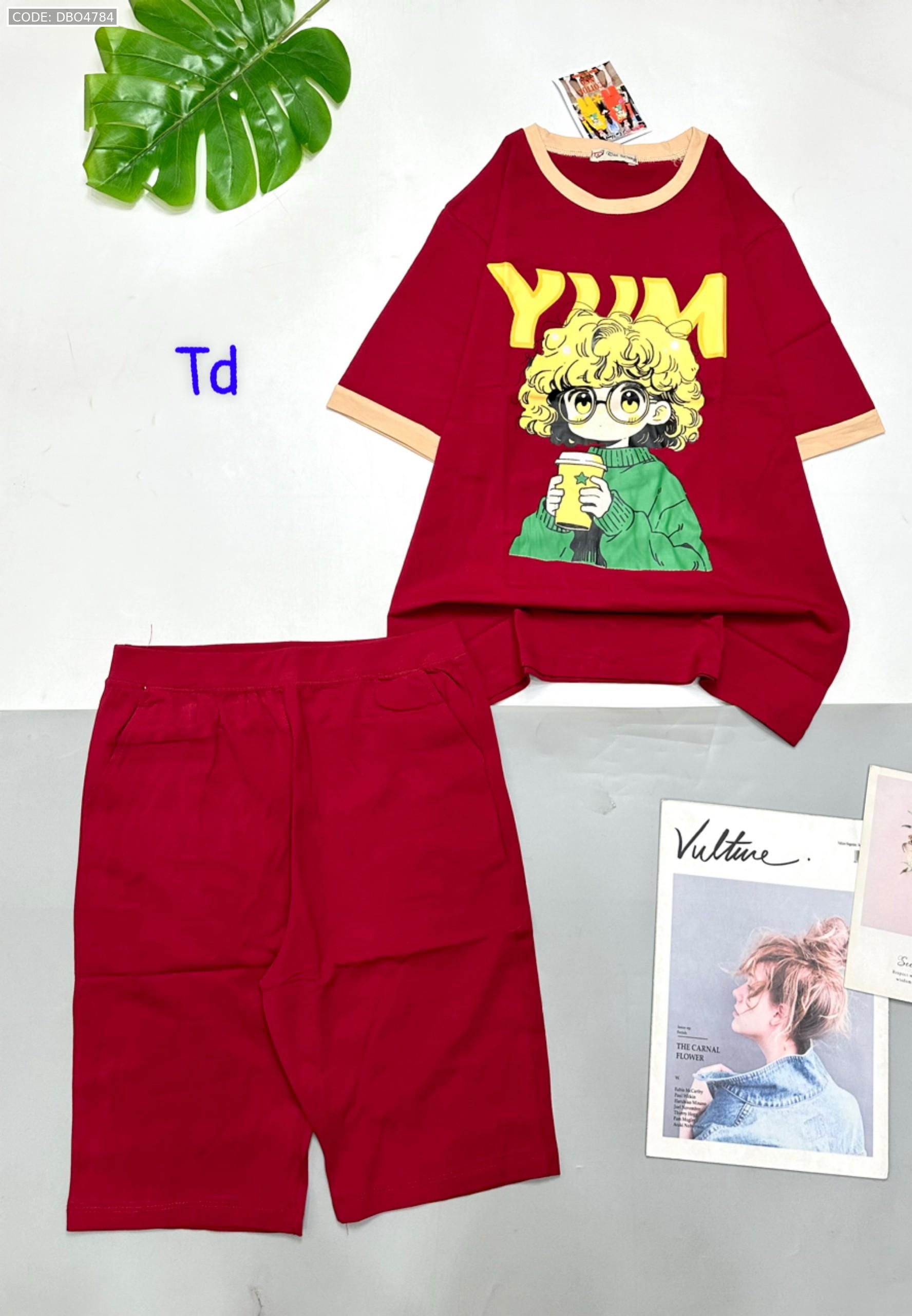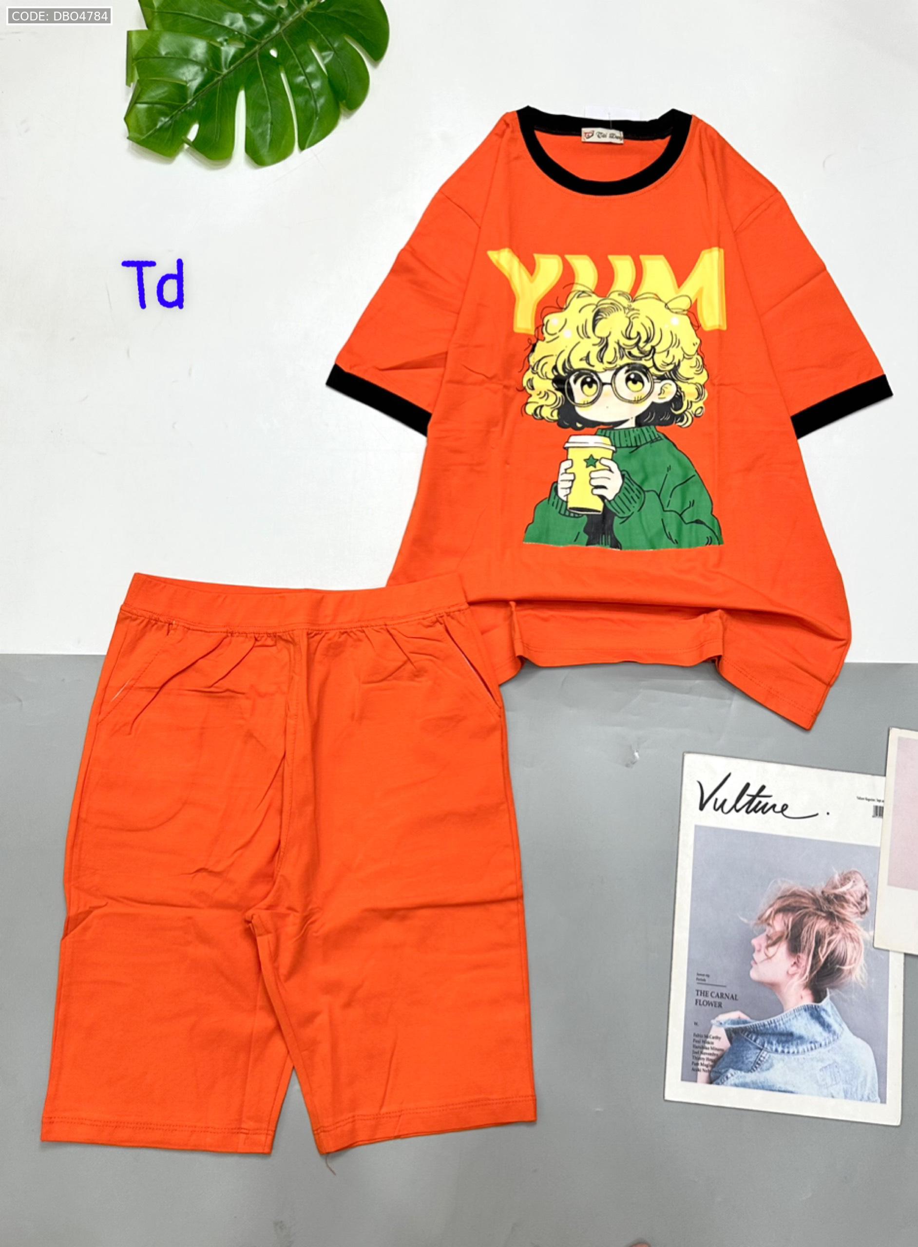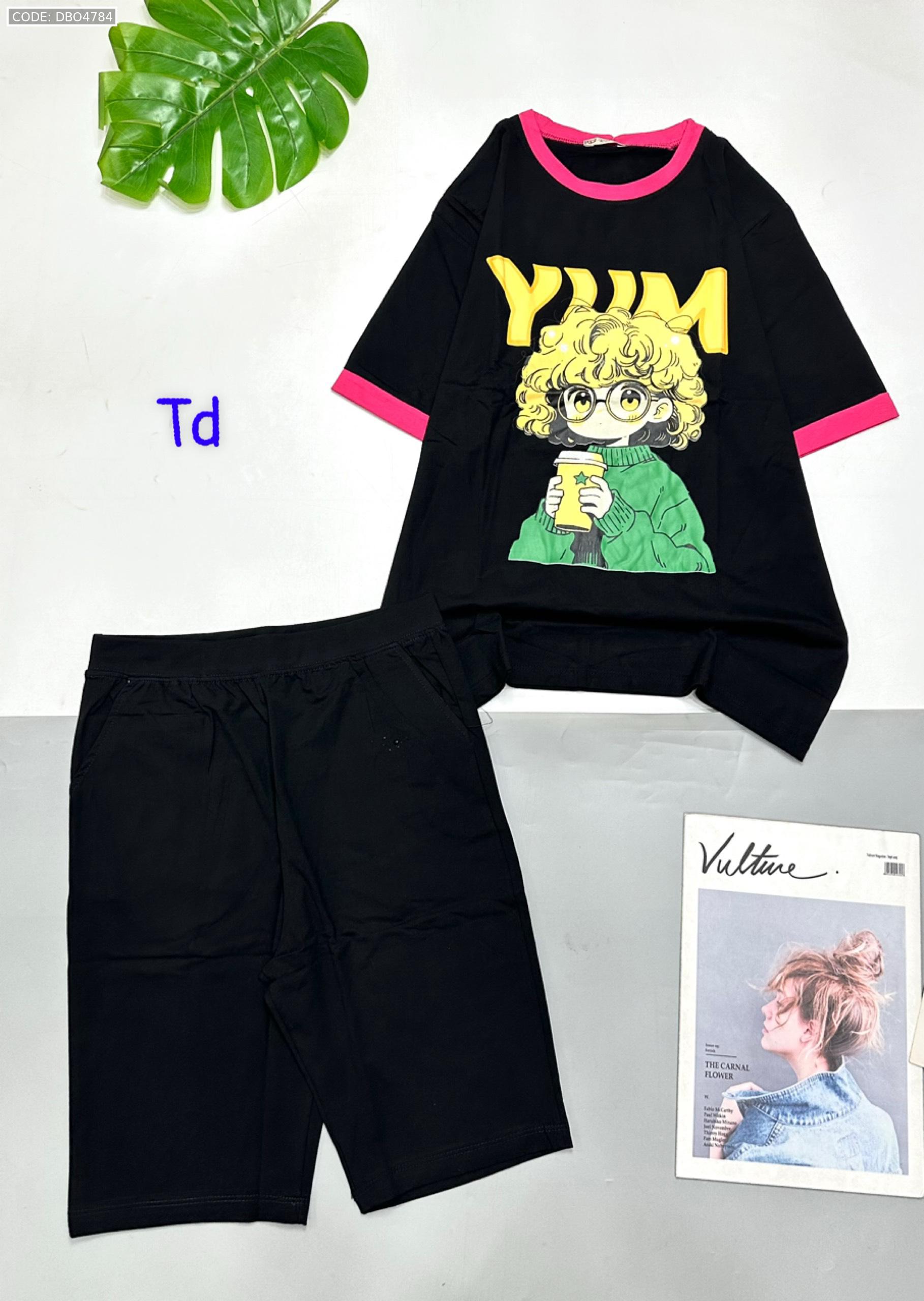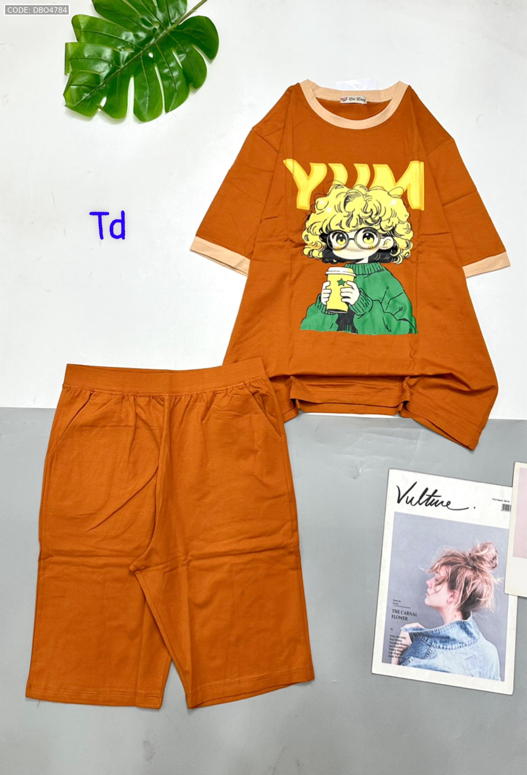 Đồ bộ quần lửng áo tay ngắn in hình bé tóc rối