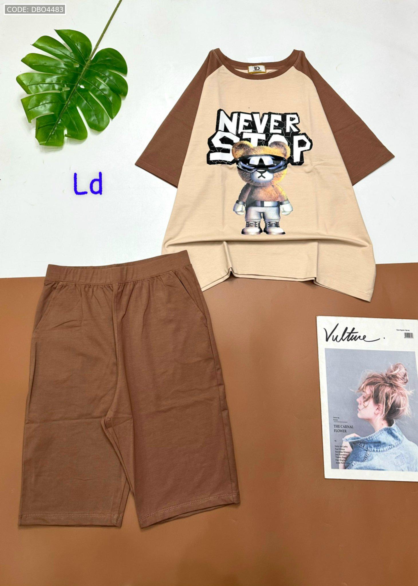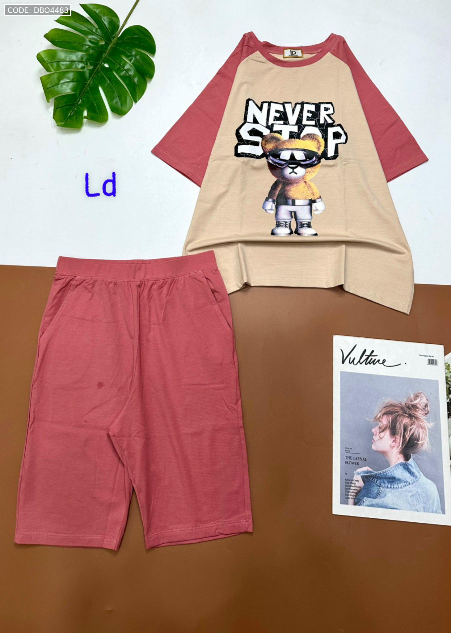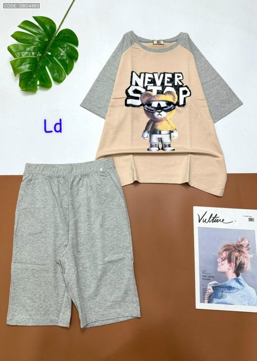 Đồ bộ quần lửng áo tay ngắn in hình gấu đeo kính