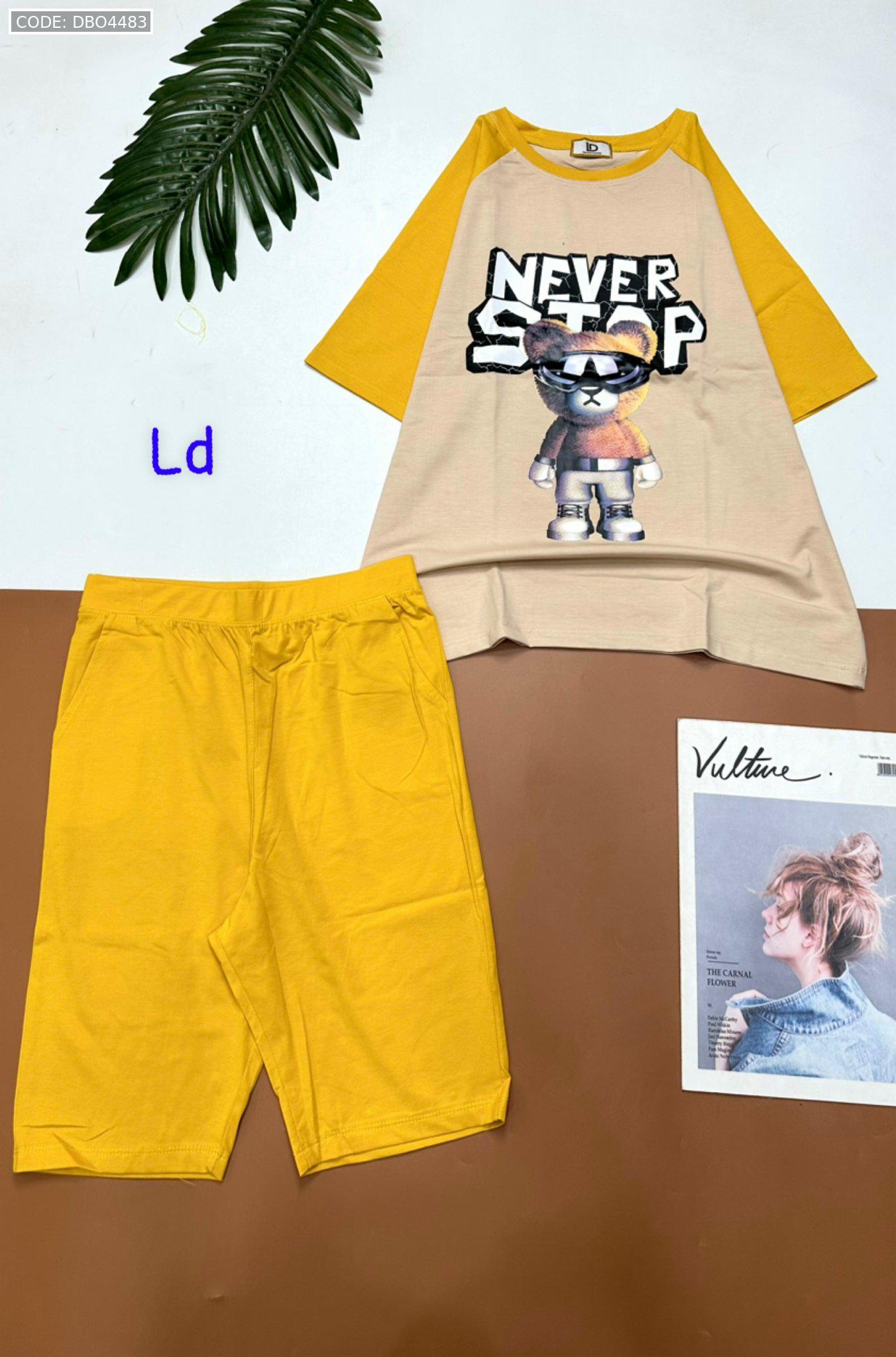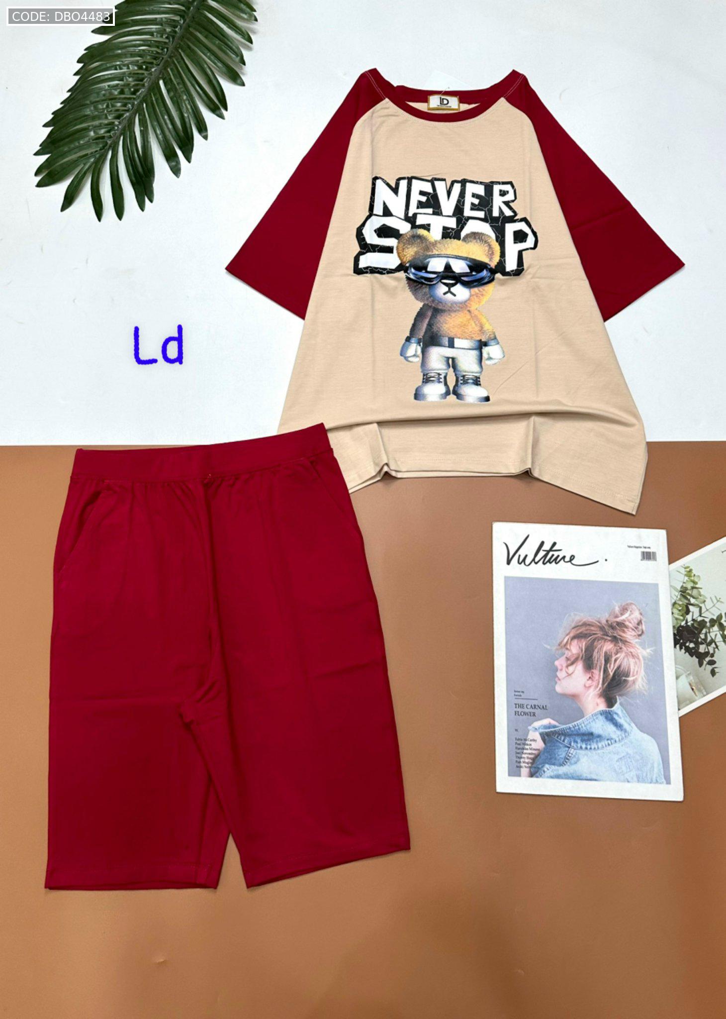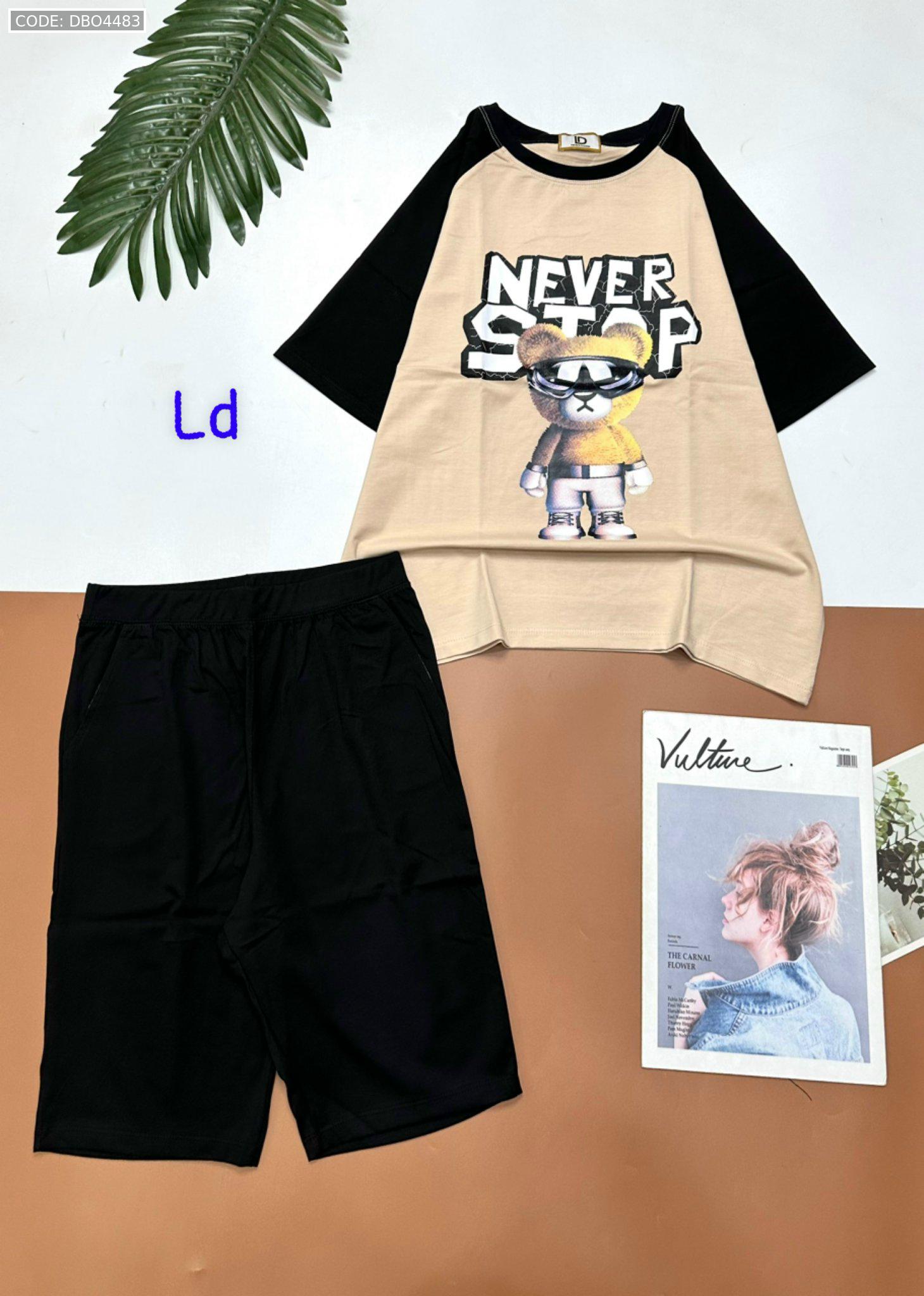 Đồ bộ quần lửng áo tay ngắn in hình gấu đeo kính