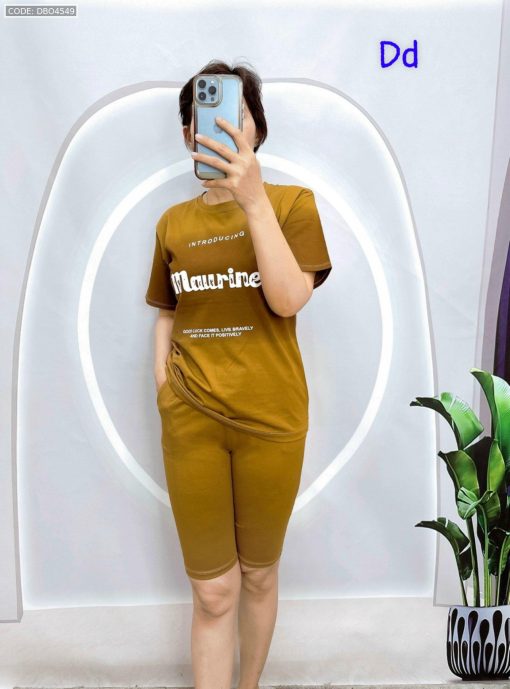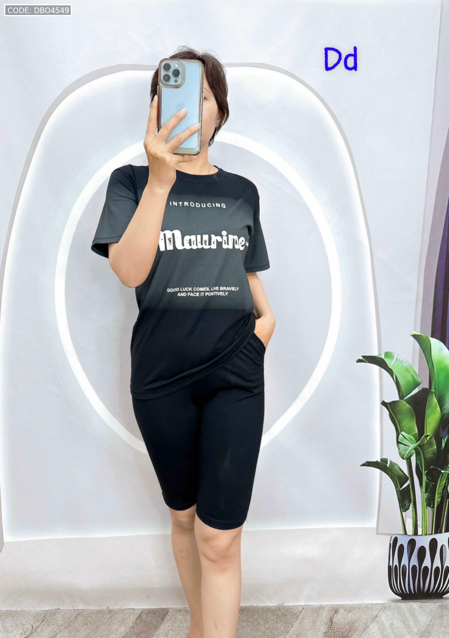 Đồ bộ quần lửng áo tay ngắn loang 2 màu in chữ maurine