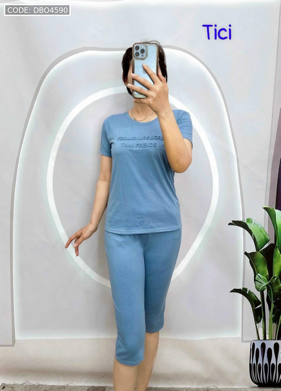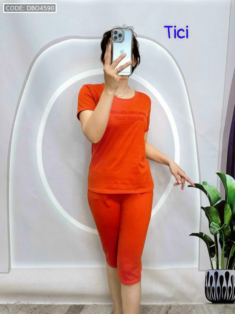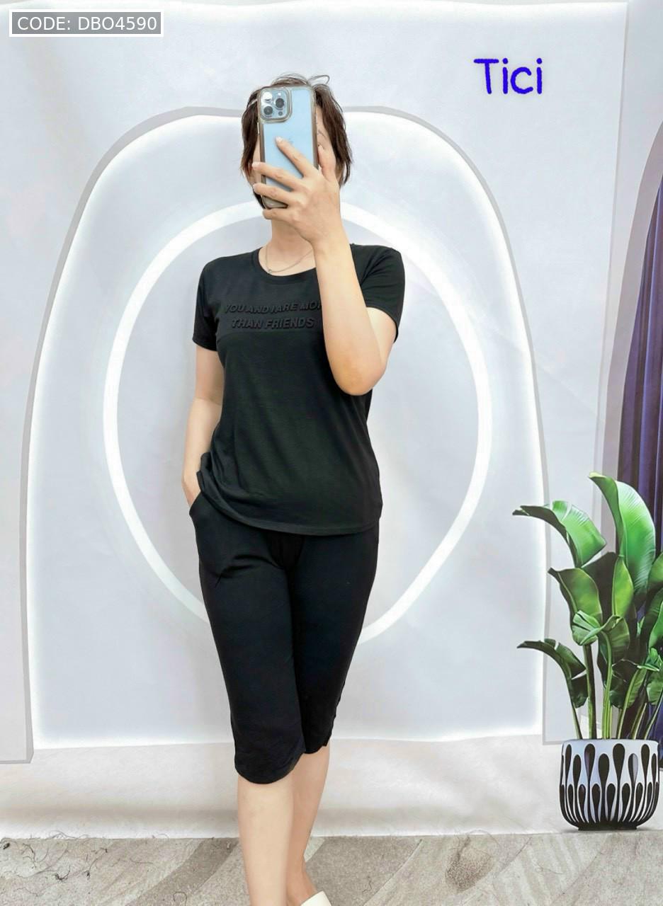 Đồ bộ quần lửng áo tay ngắn trơn in chữ nổi