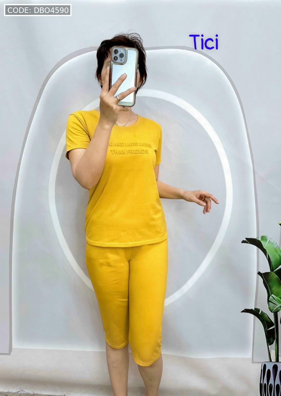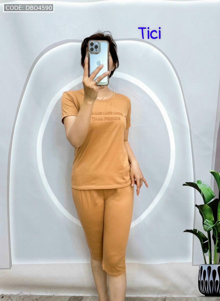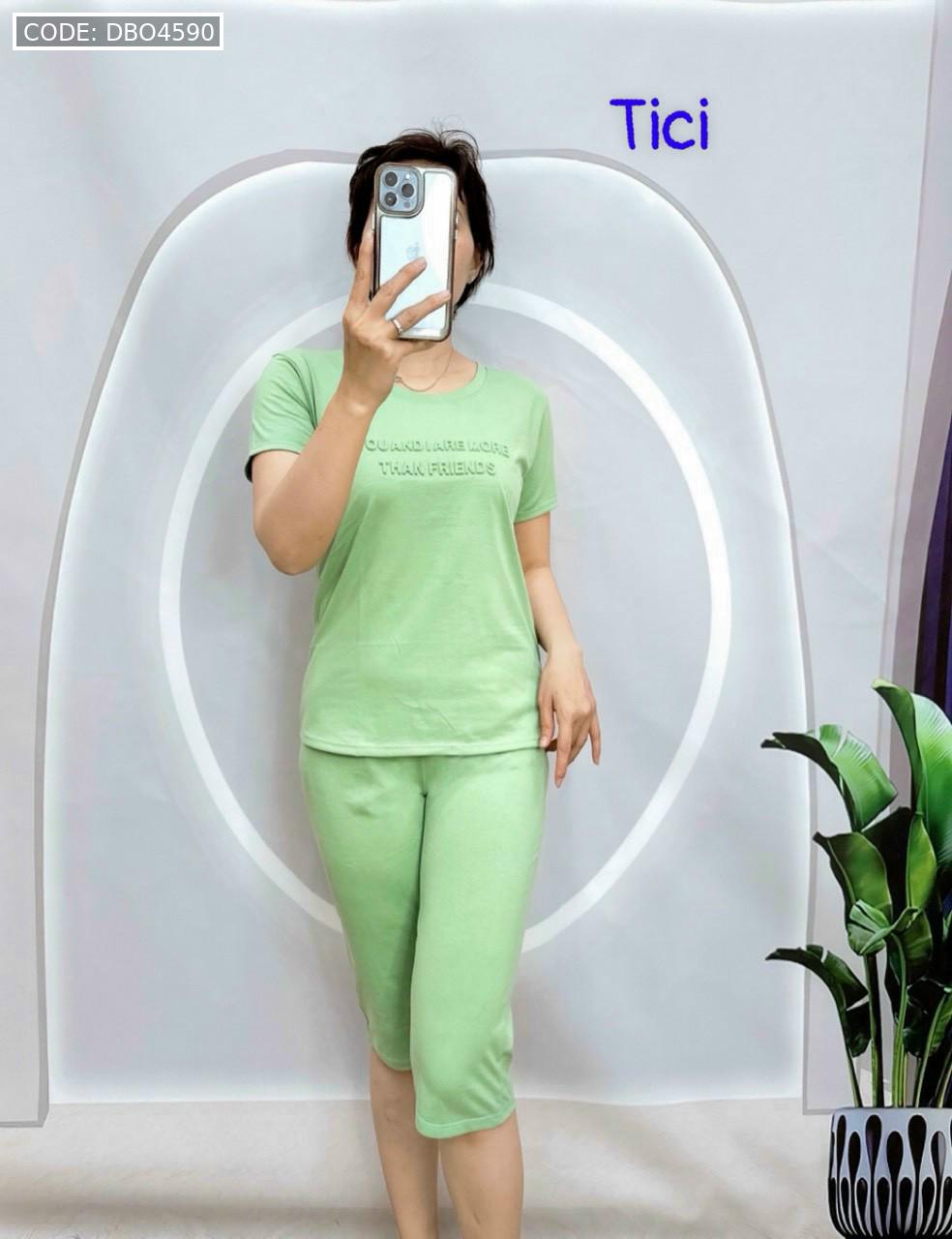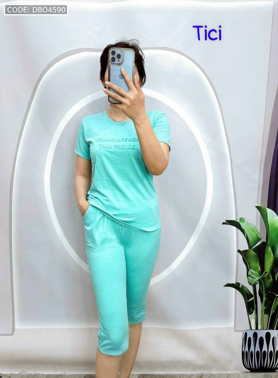Đồ bộ quần lửng áo tay ngắn trơn in chữ nổi