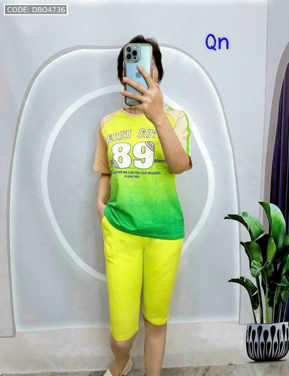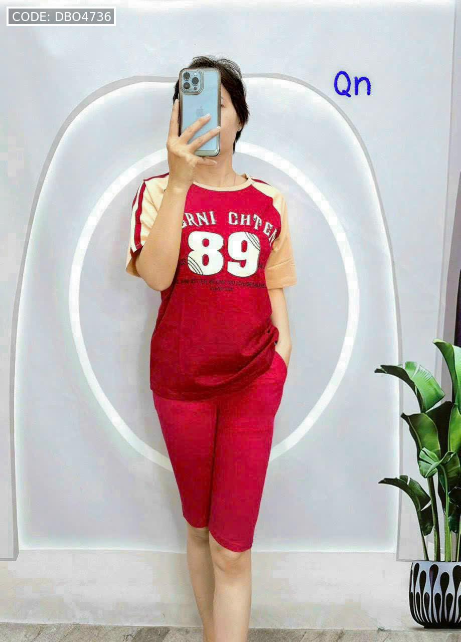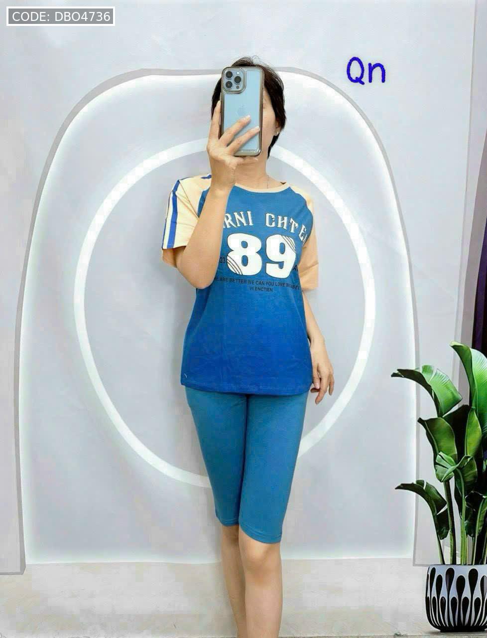 Đồ bộ quần lửng áo thun in số áo loang