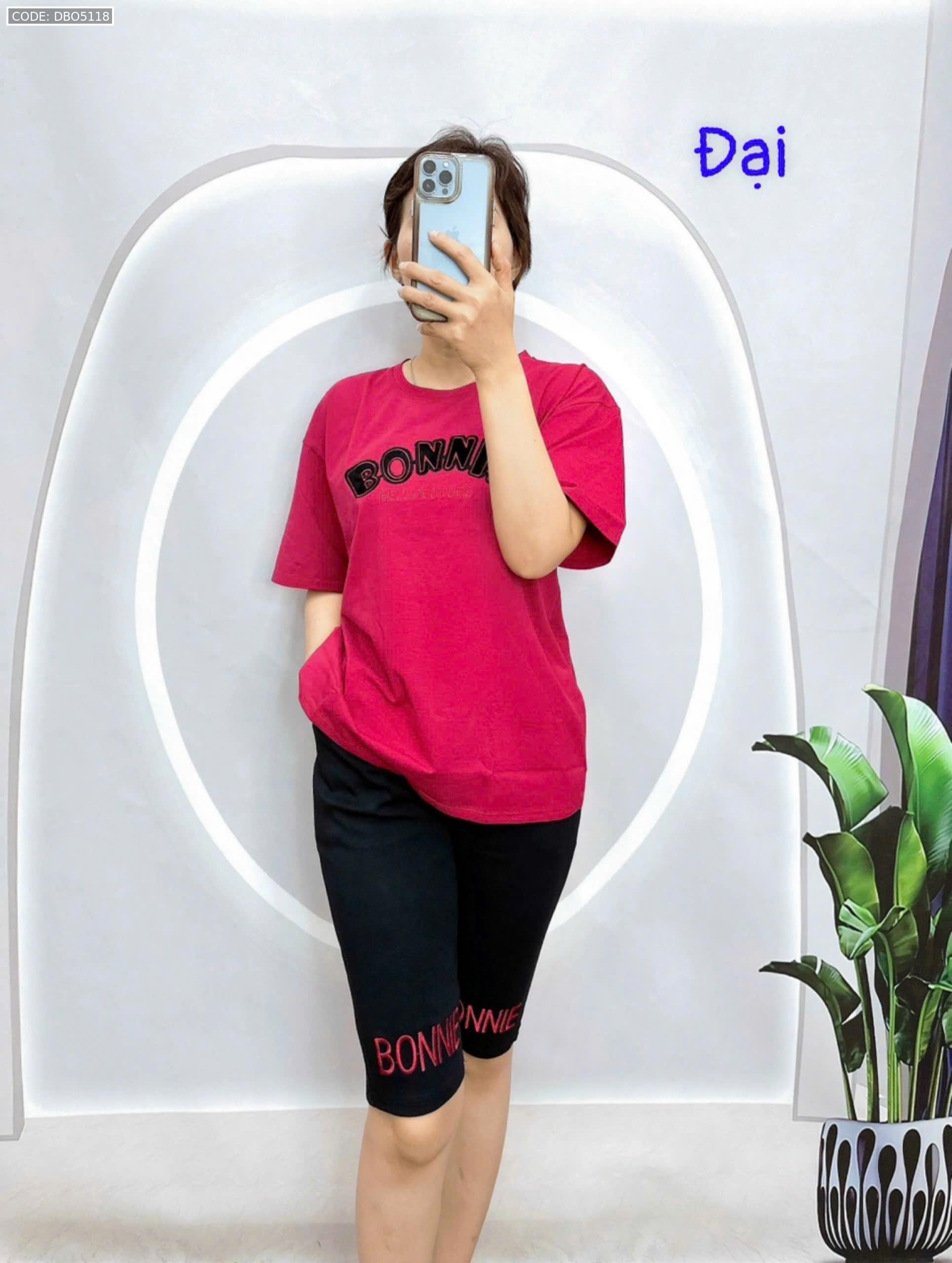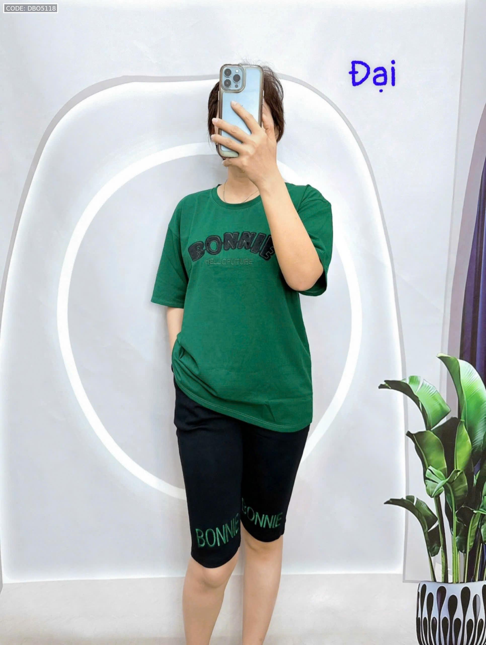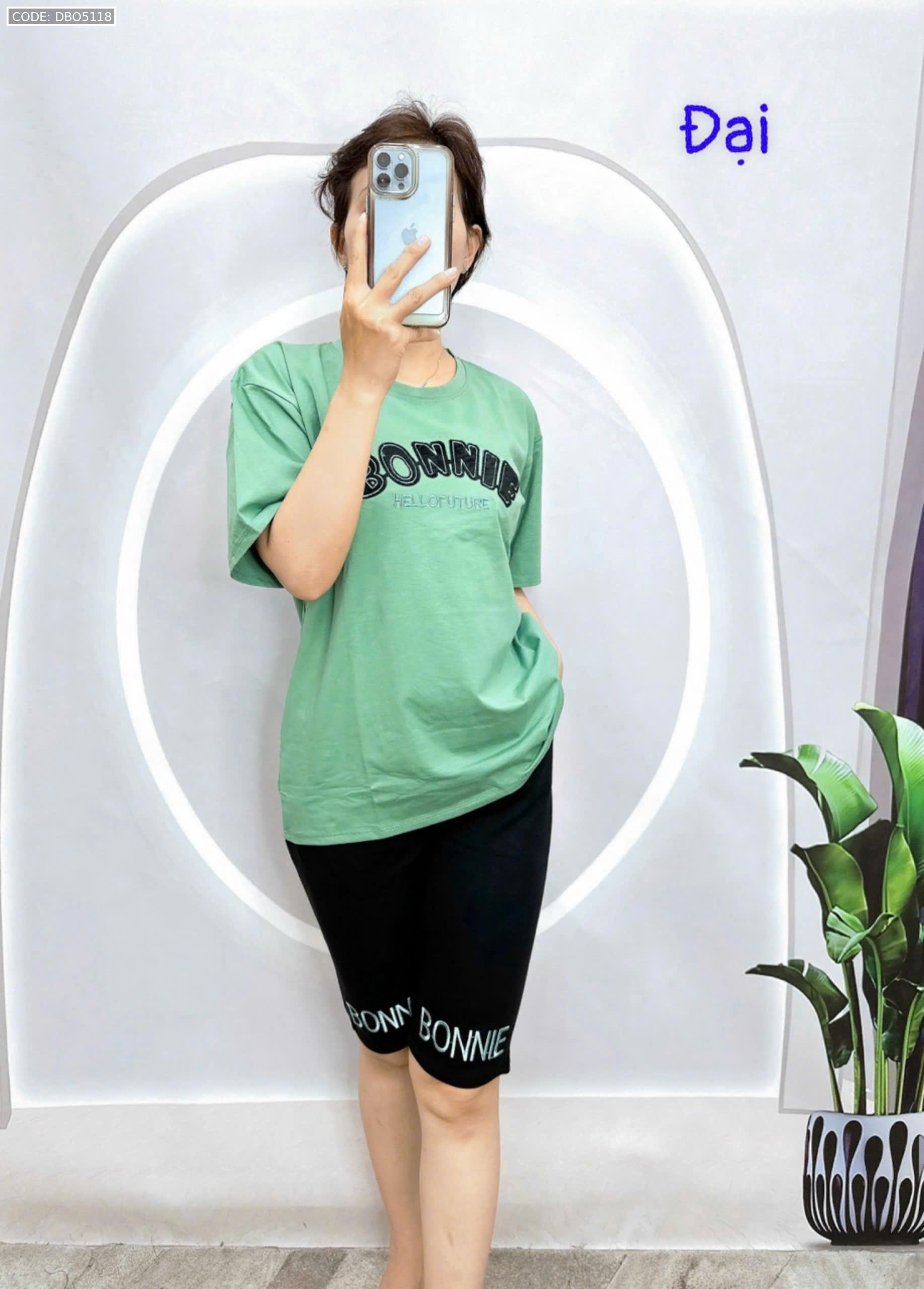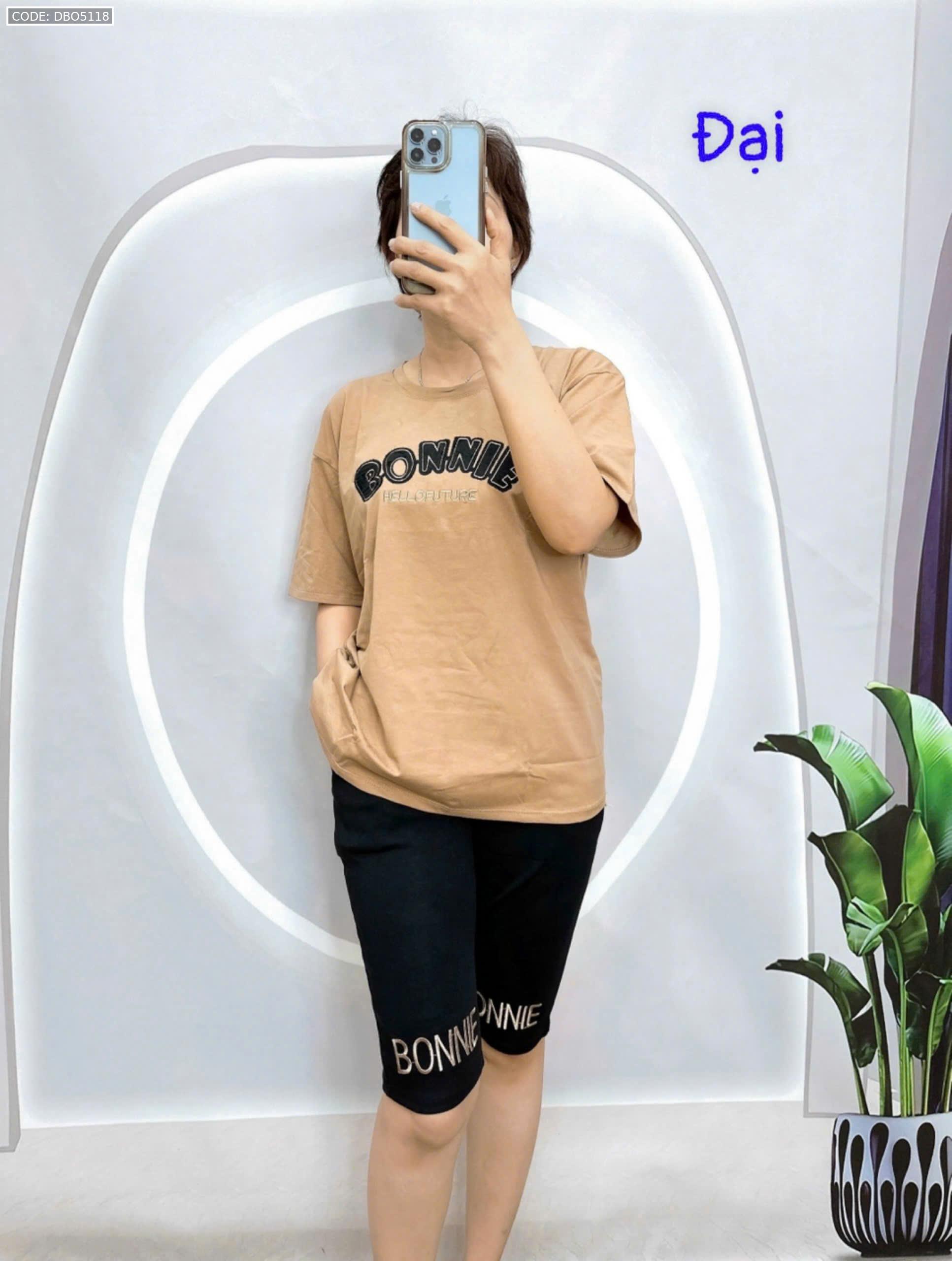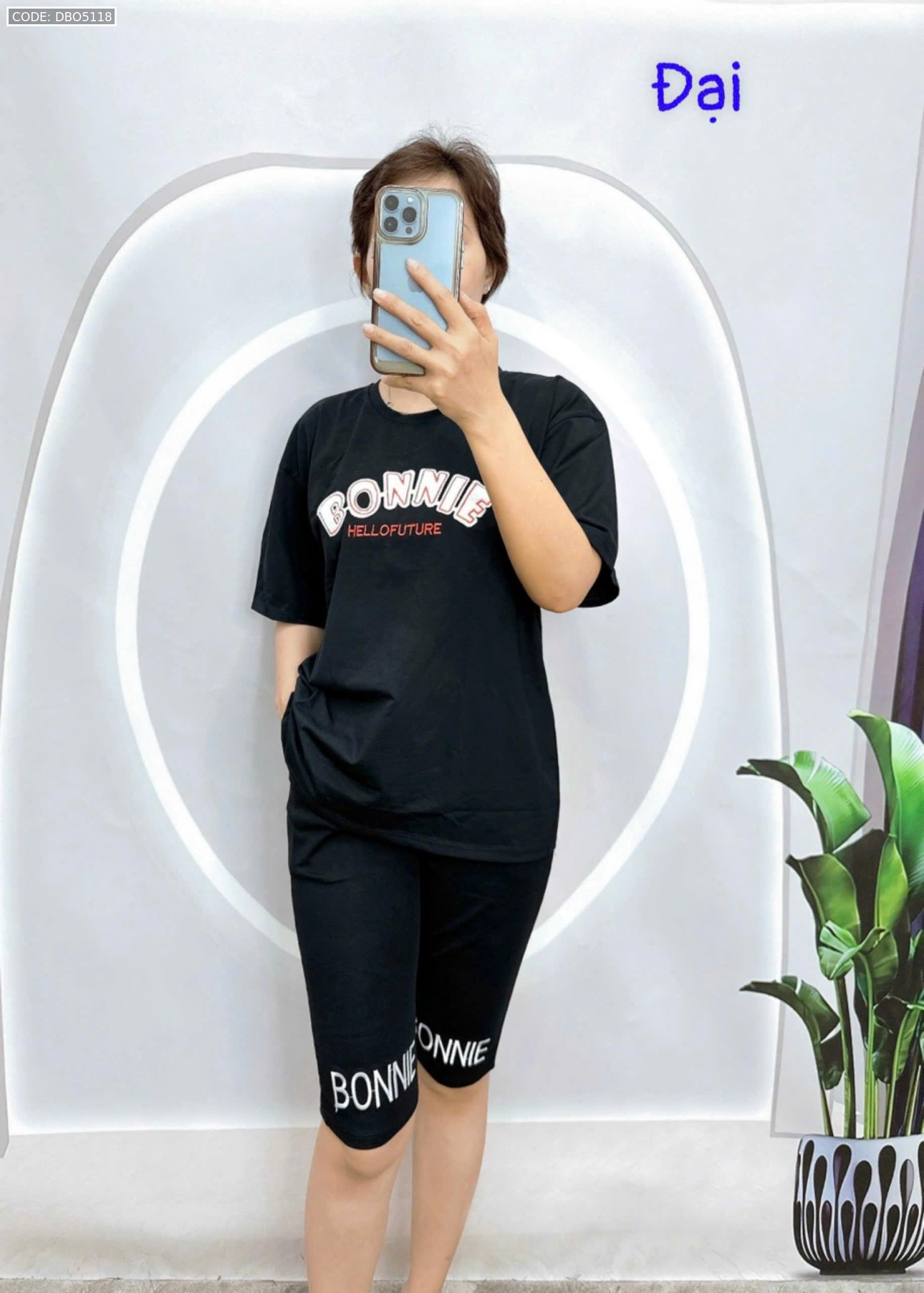 Đồ bộ quần lửng đen áo tay ngắn in chữ