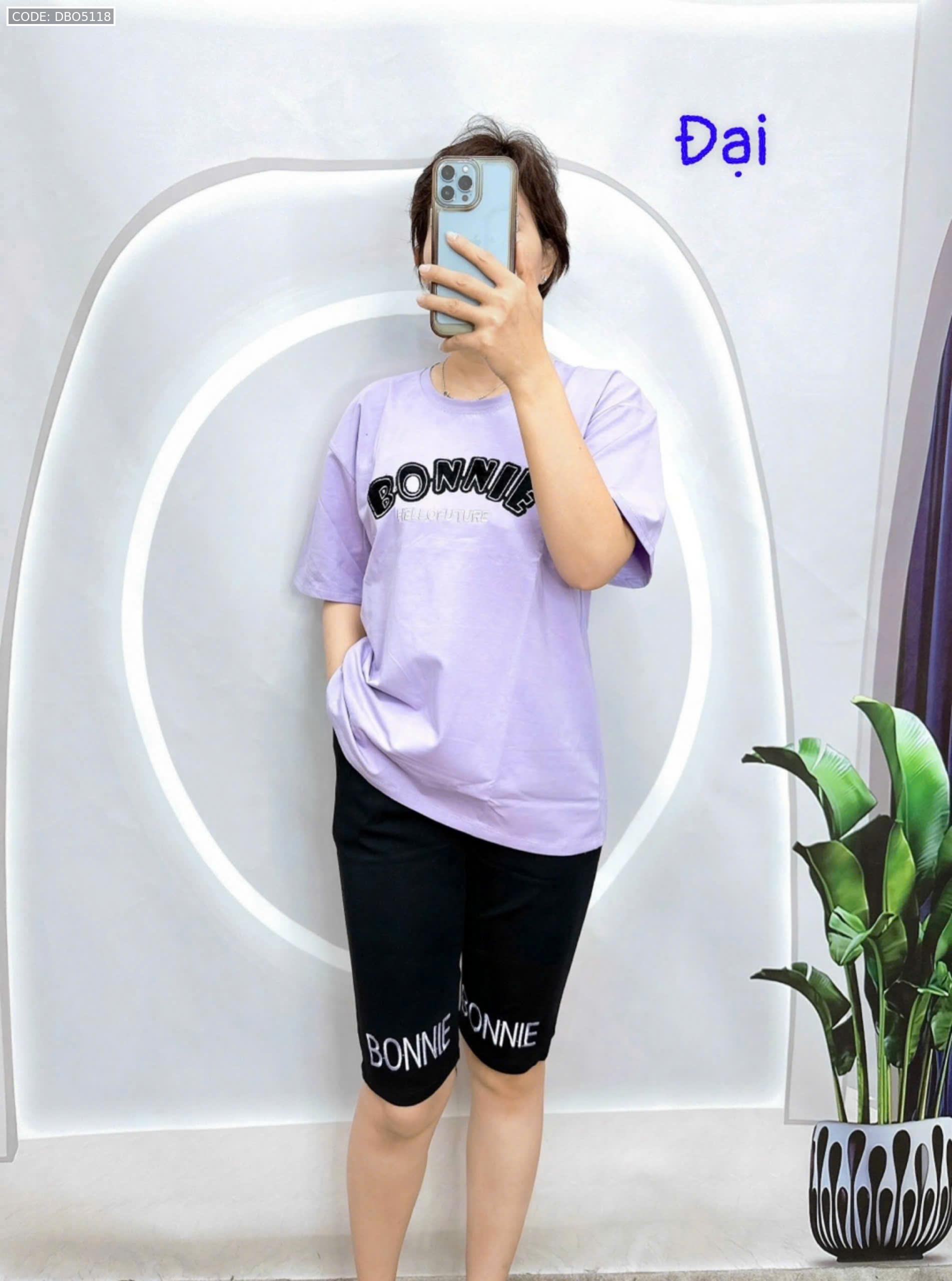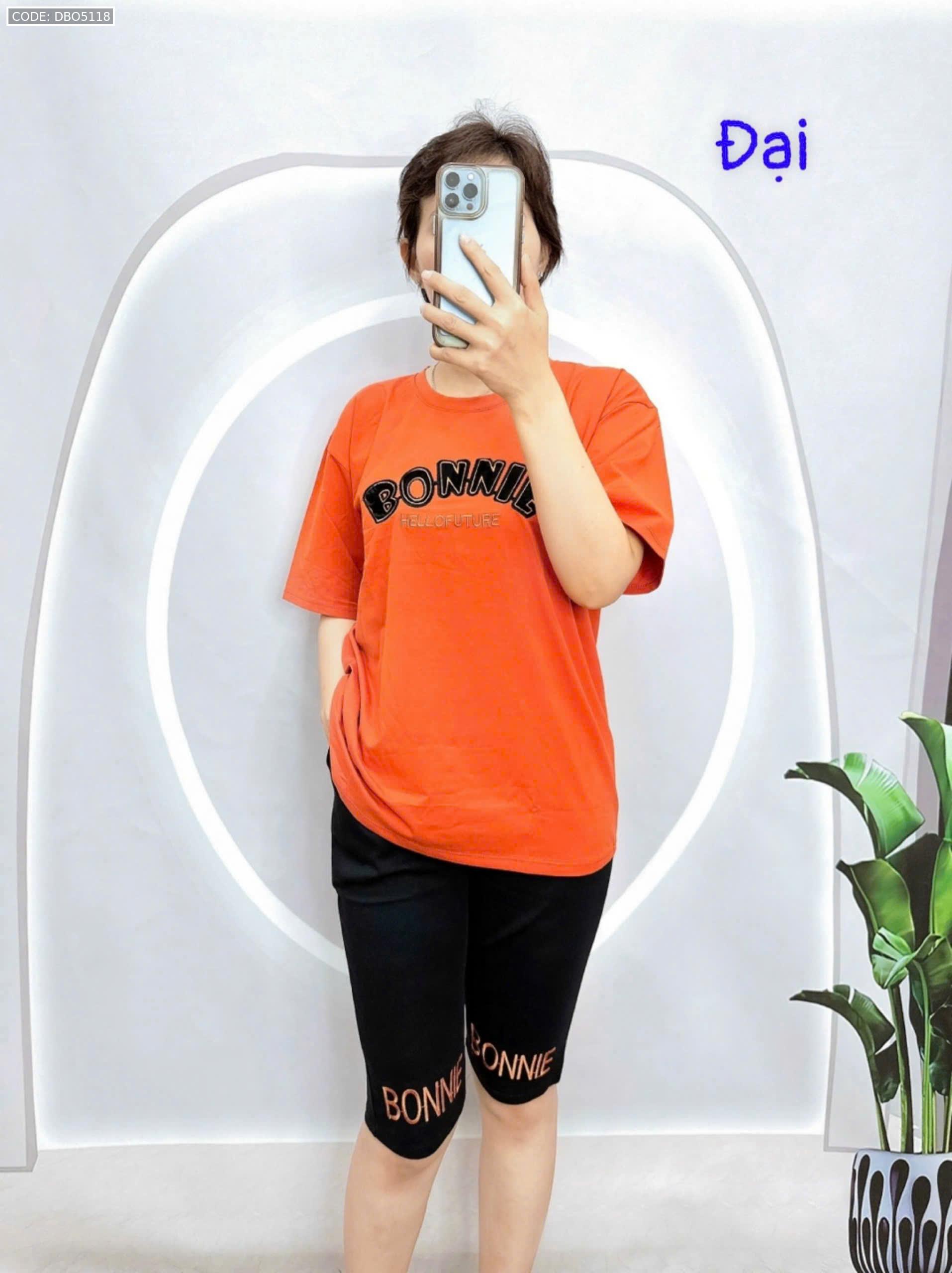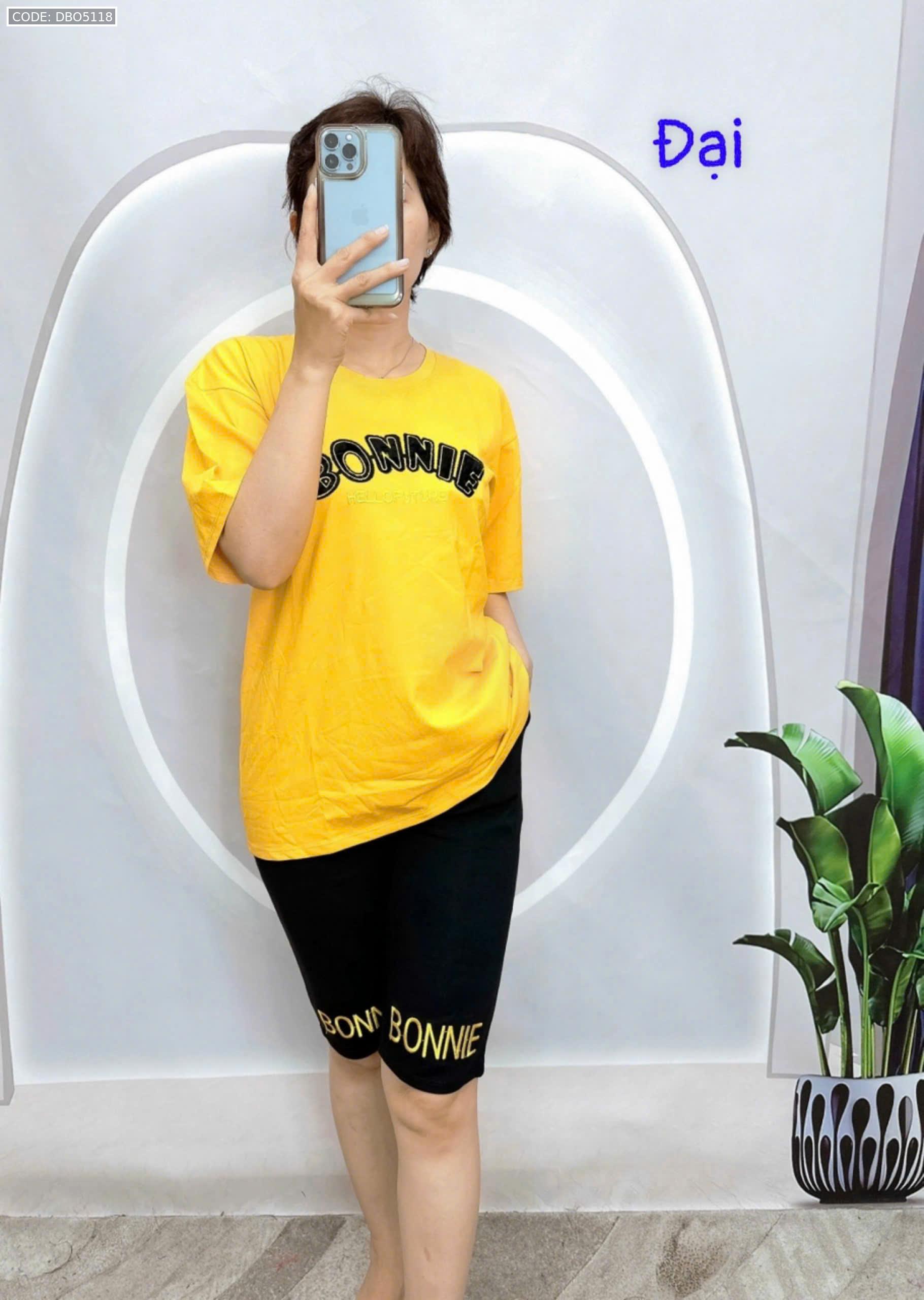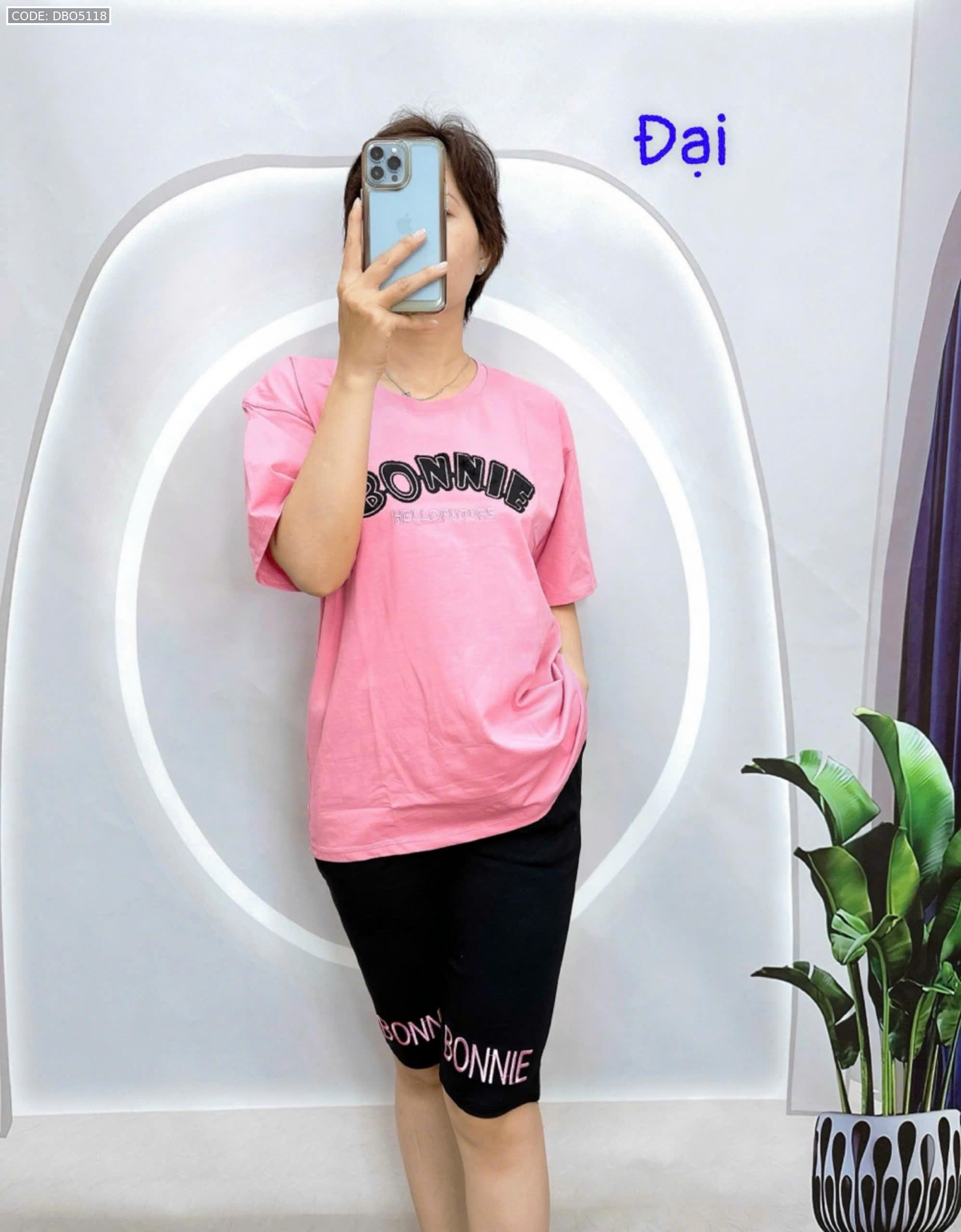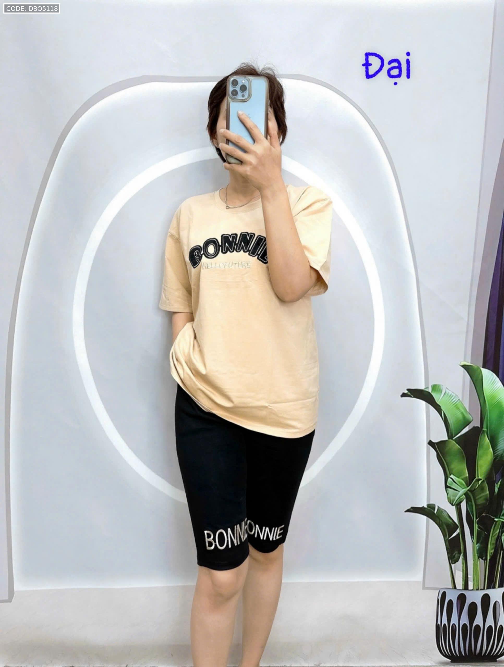 Đồ bộ quần lửng đen áo tay ngắn in chữ