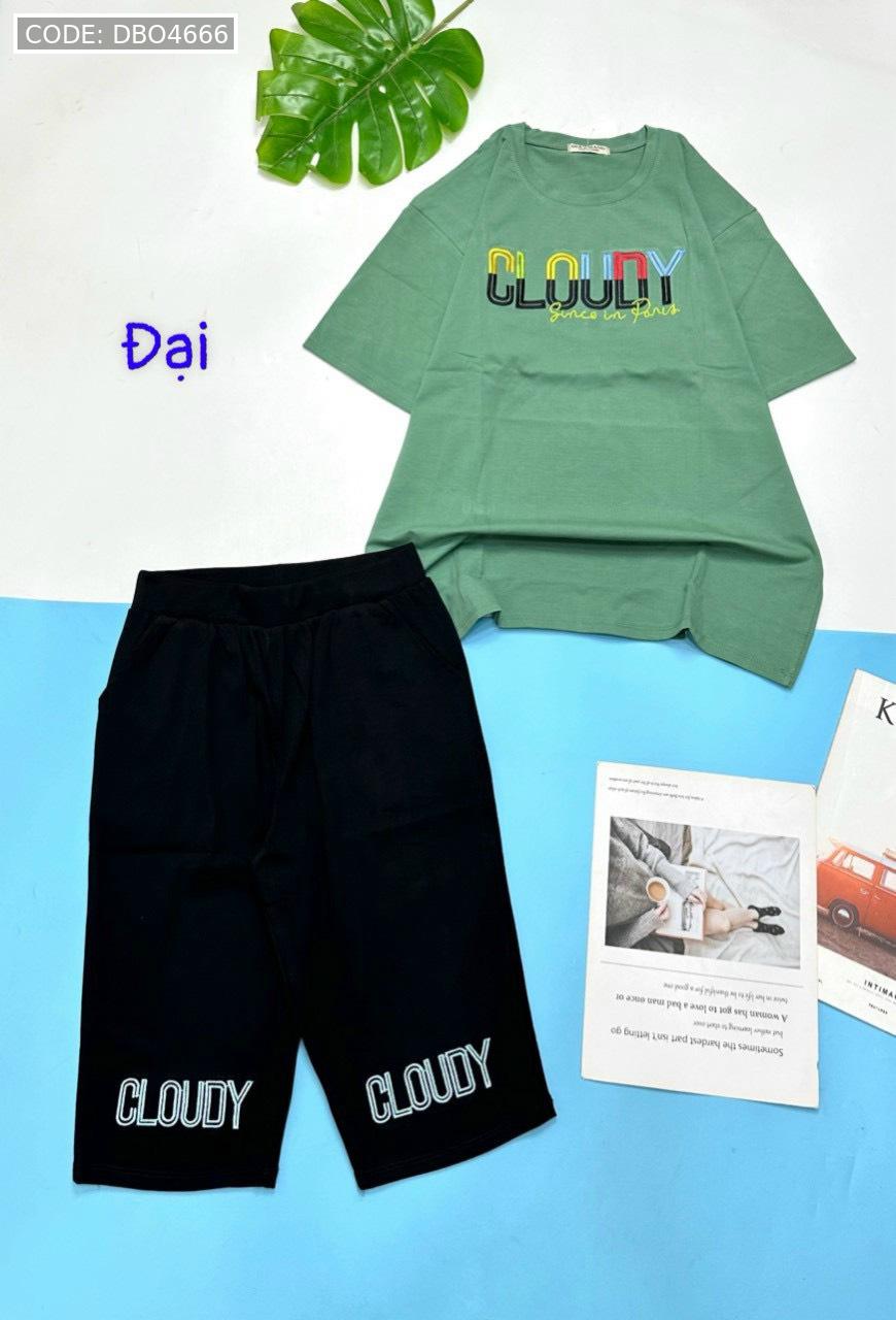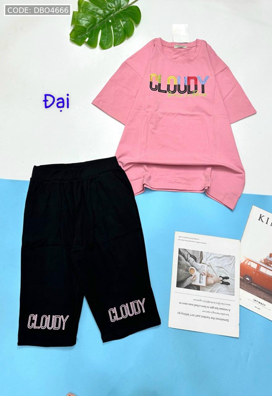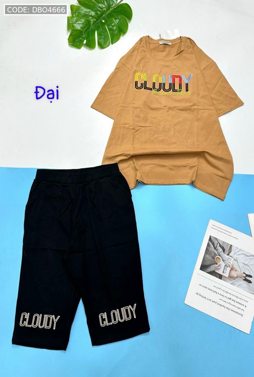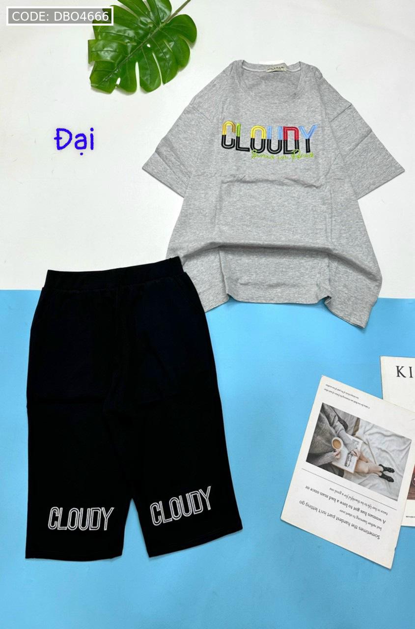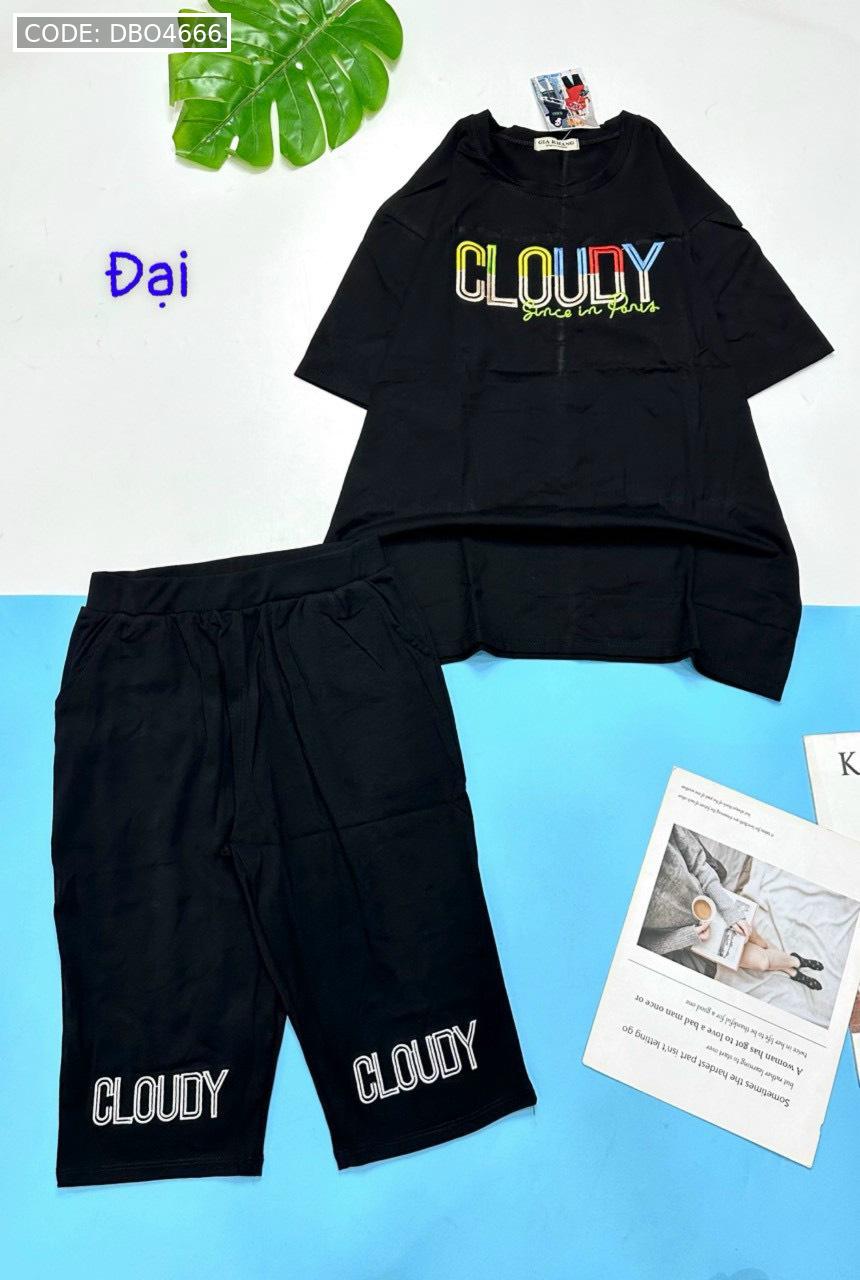Đồ bộ quần lửng đen áo tay ngắn in chữ CLOUDY