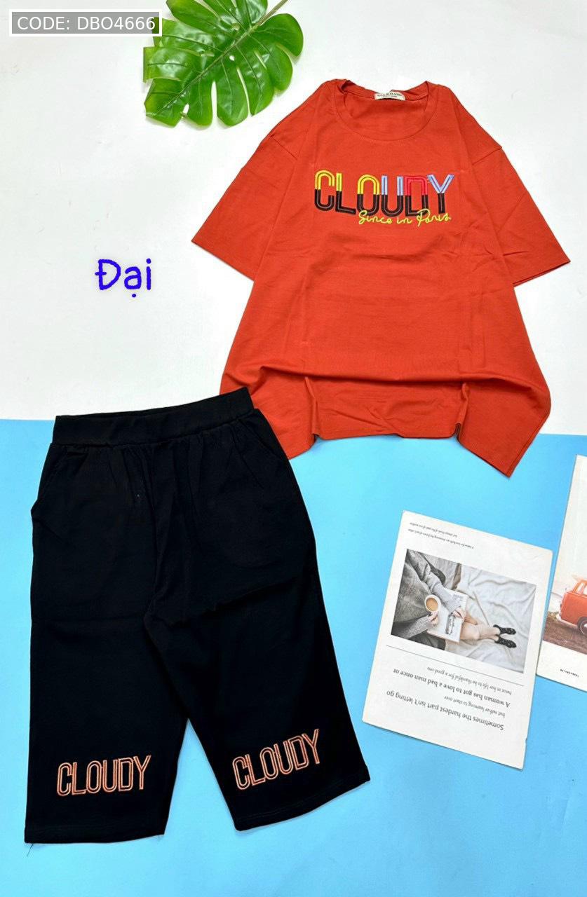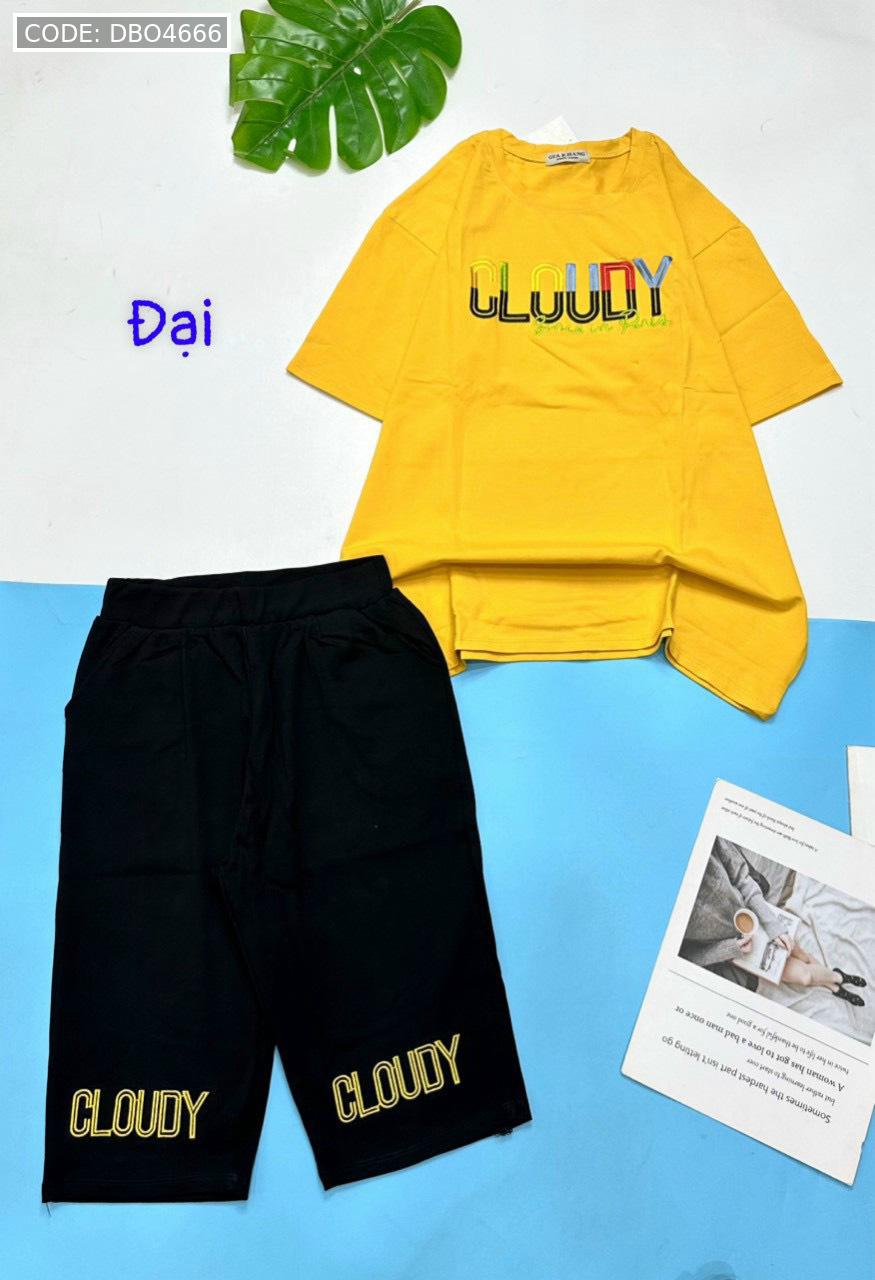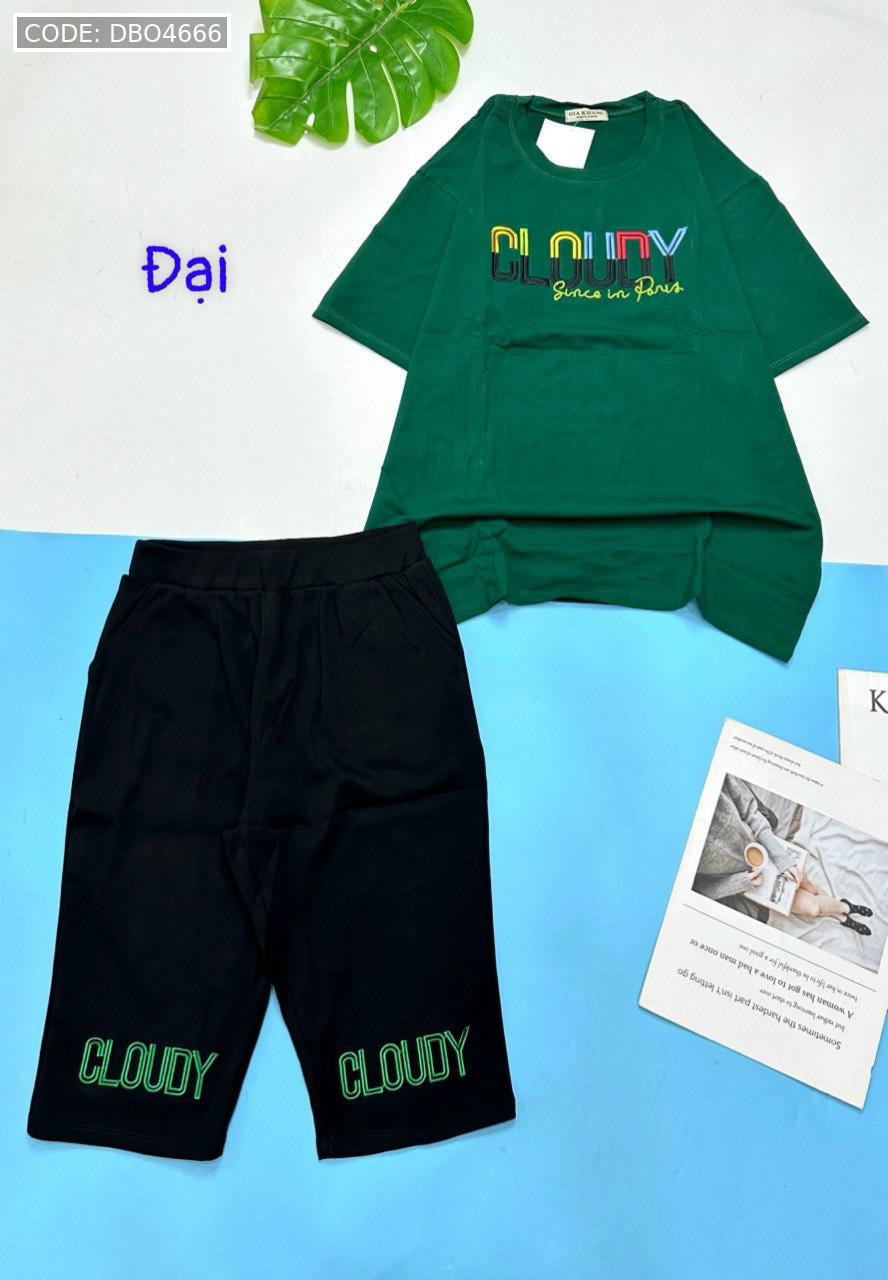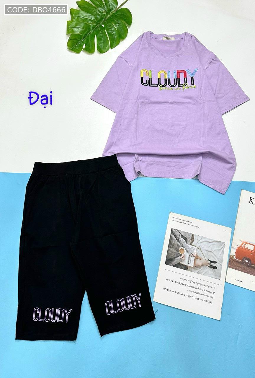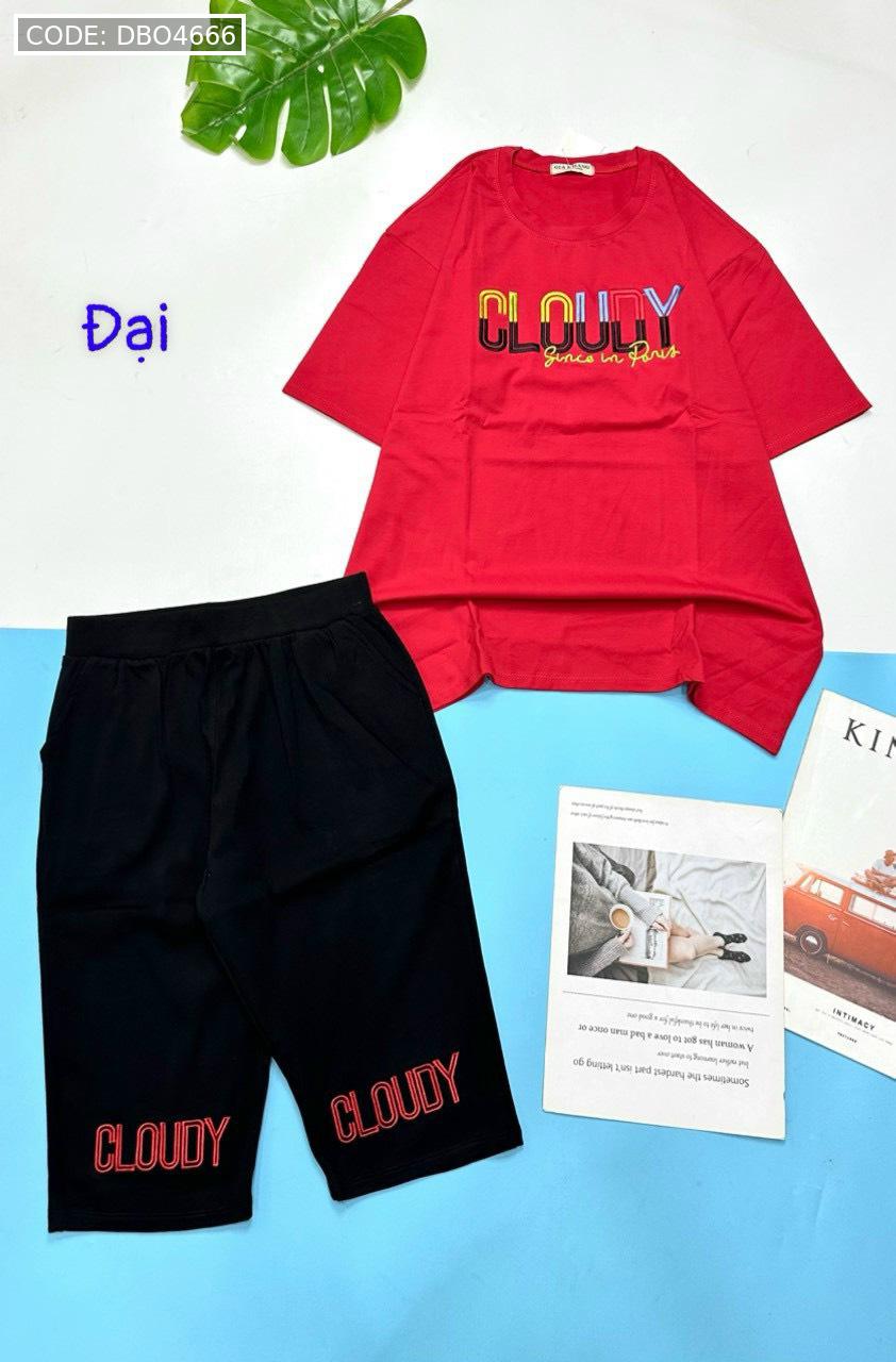 Đồ bộ quần lửng đen áo tay ngắn in chữ CLOUDY