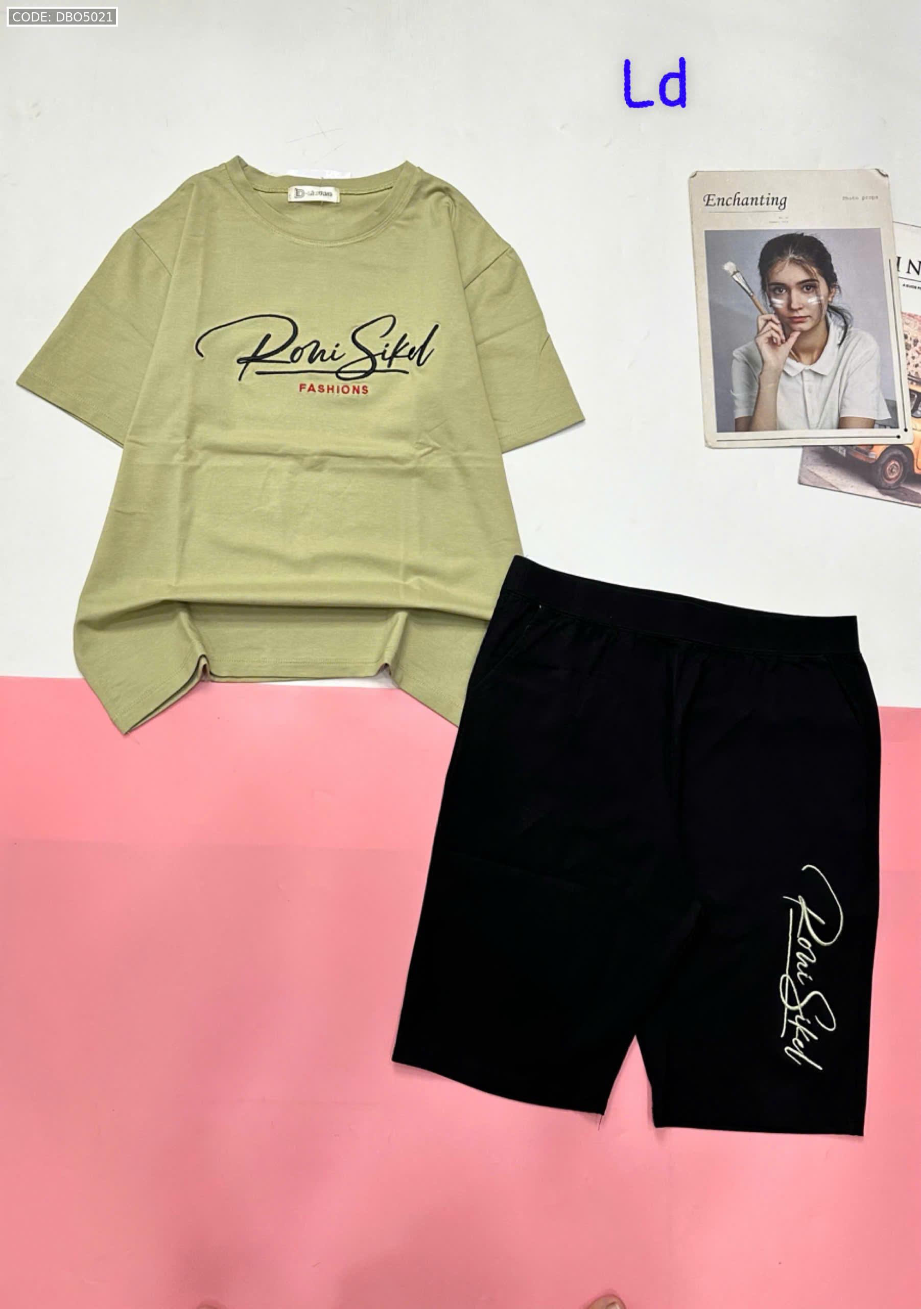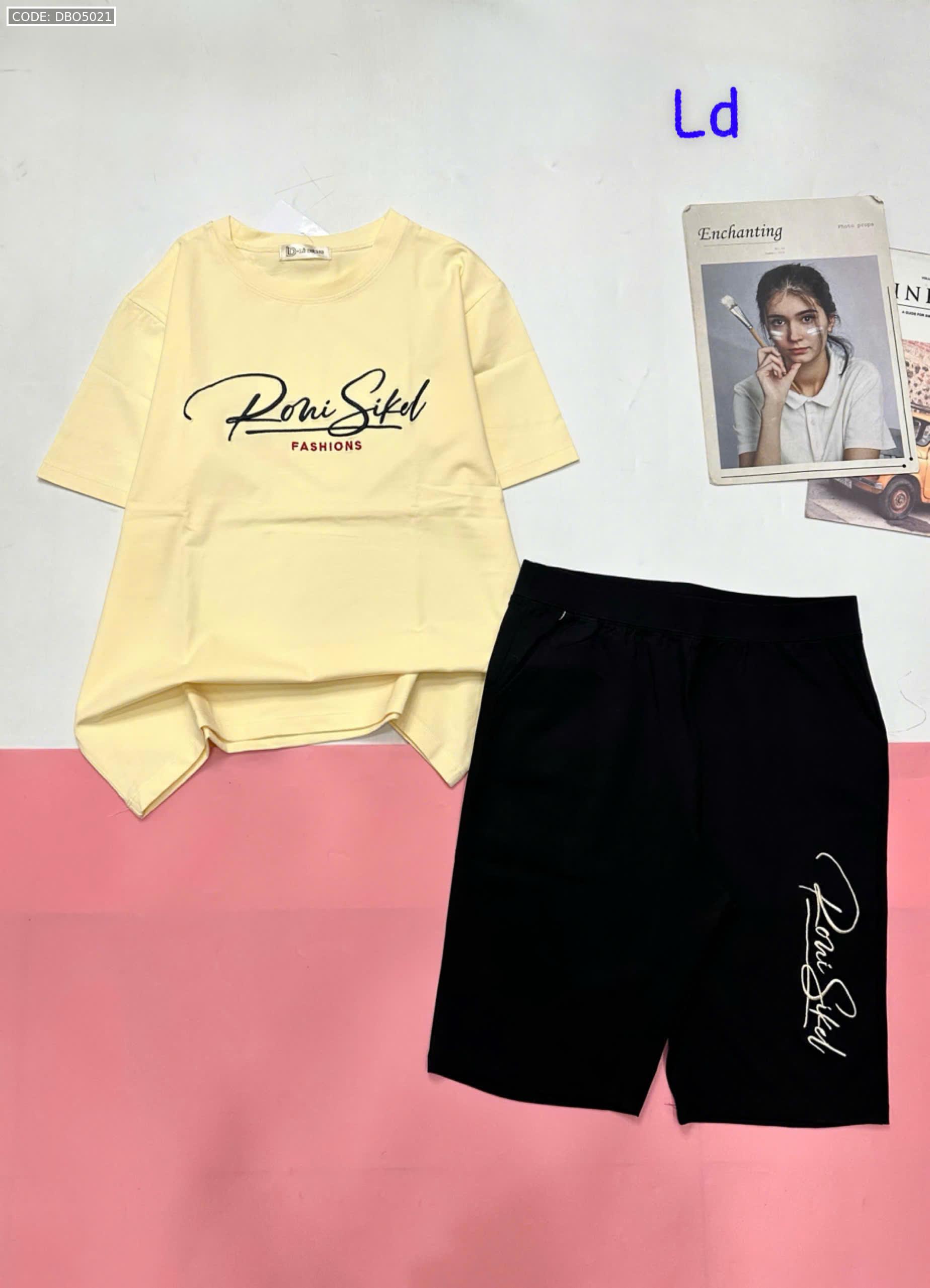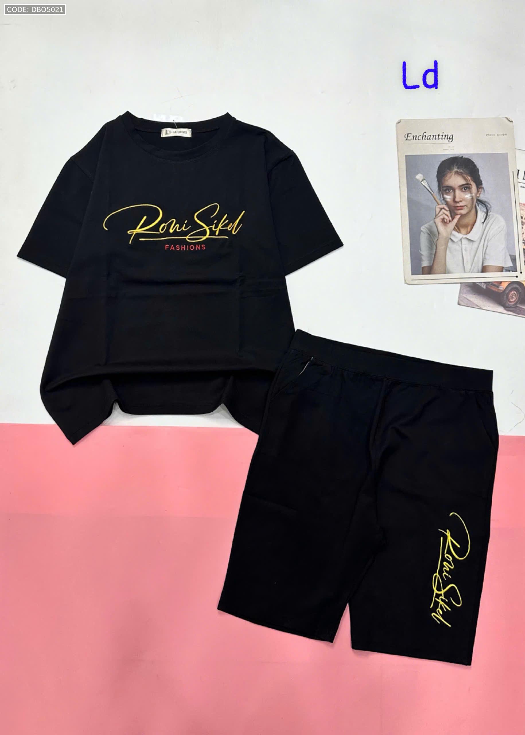 Đồ bộ quần lửng đen áo tay ngắn in nhiều chữ áo và quần