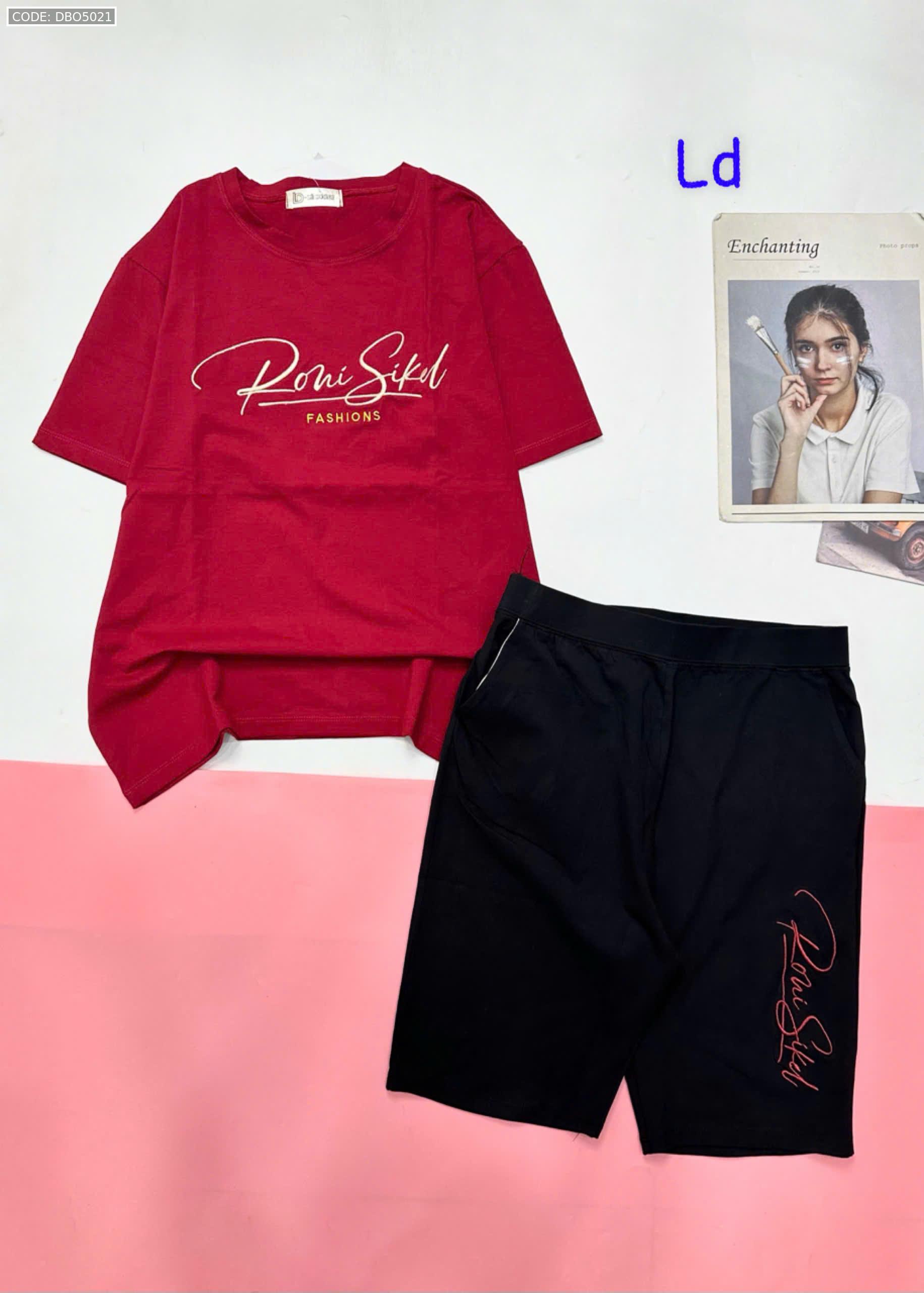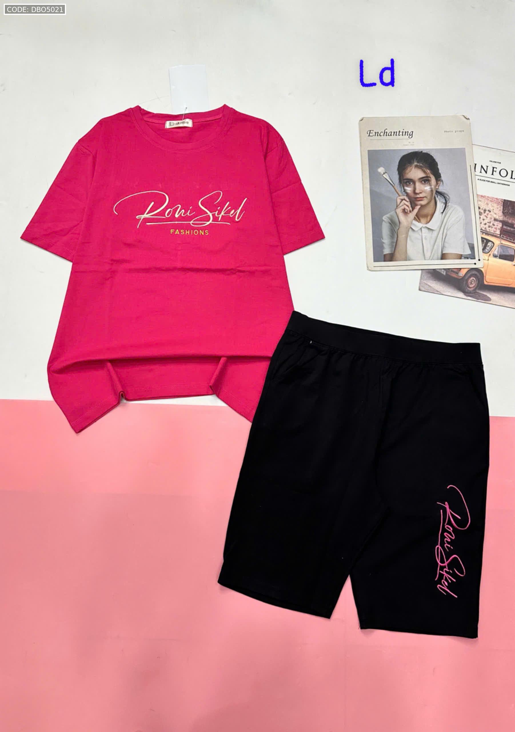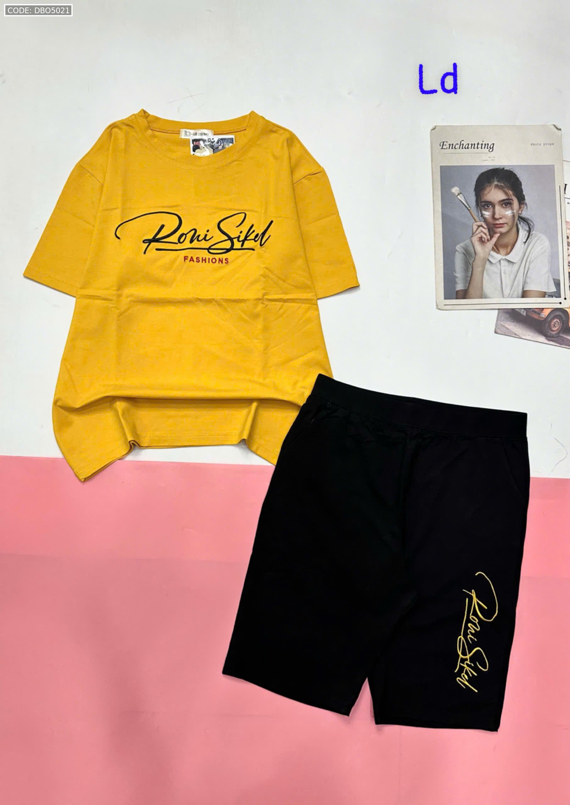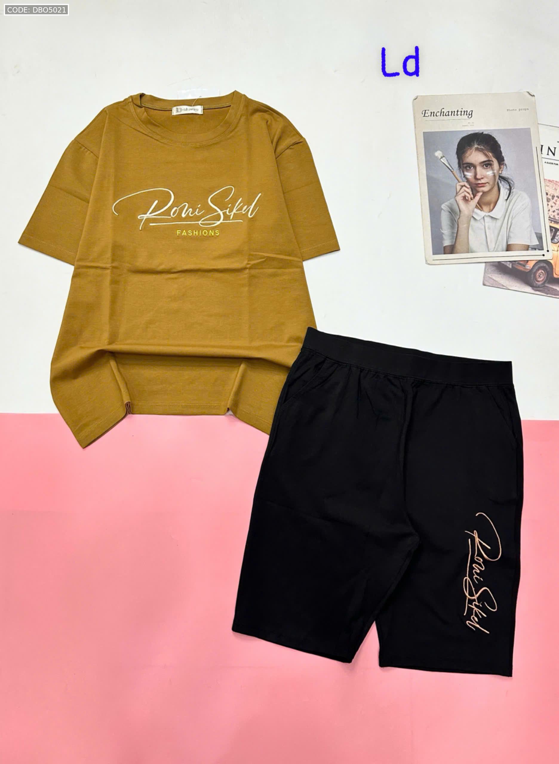 Đồ bộ quần lửng đen áo tay ngắn in nhiều chữ áo và quần