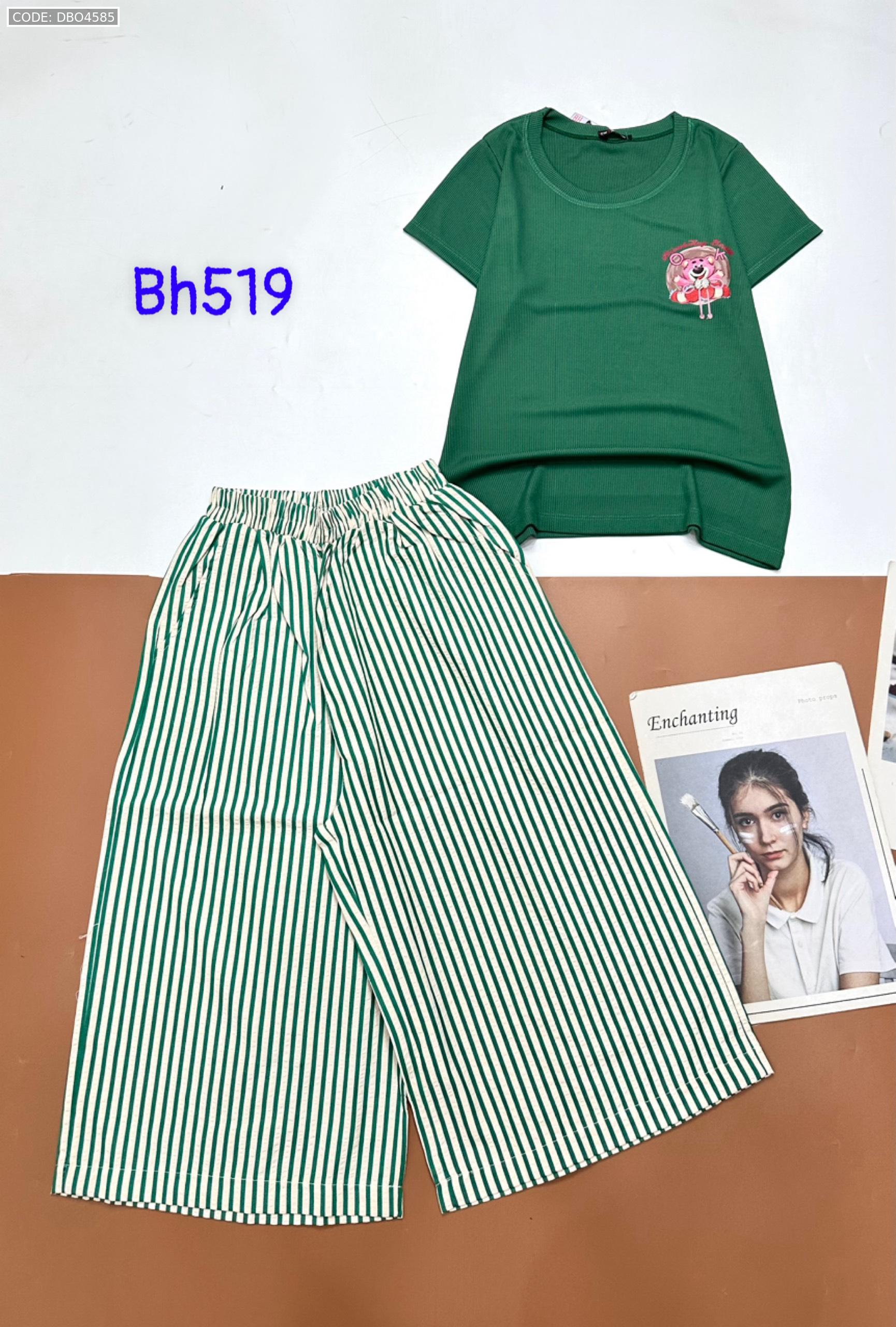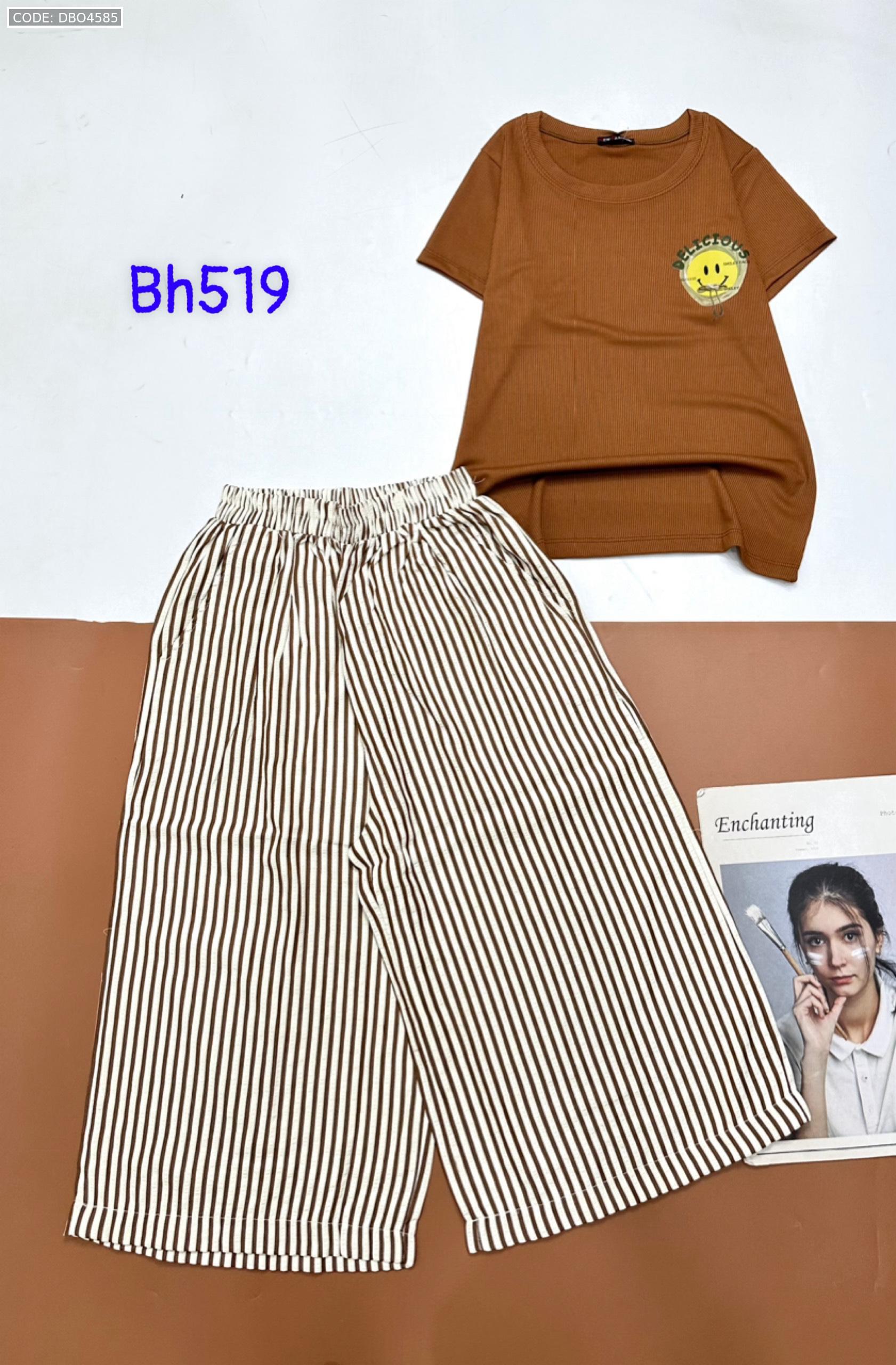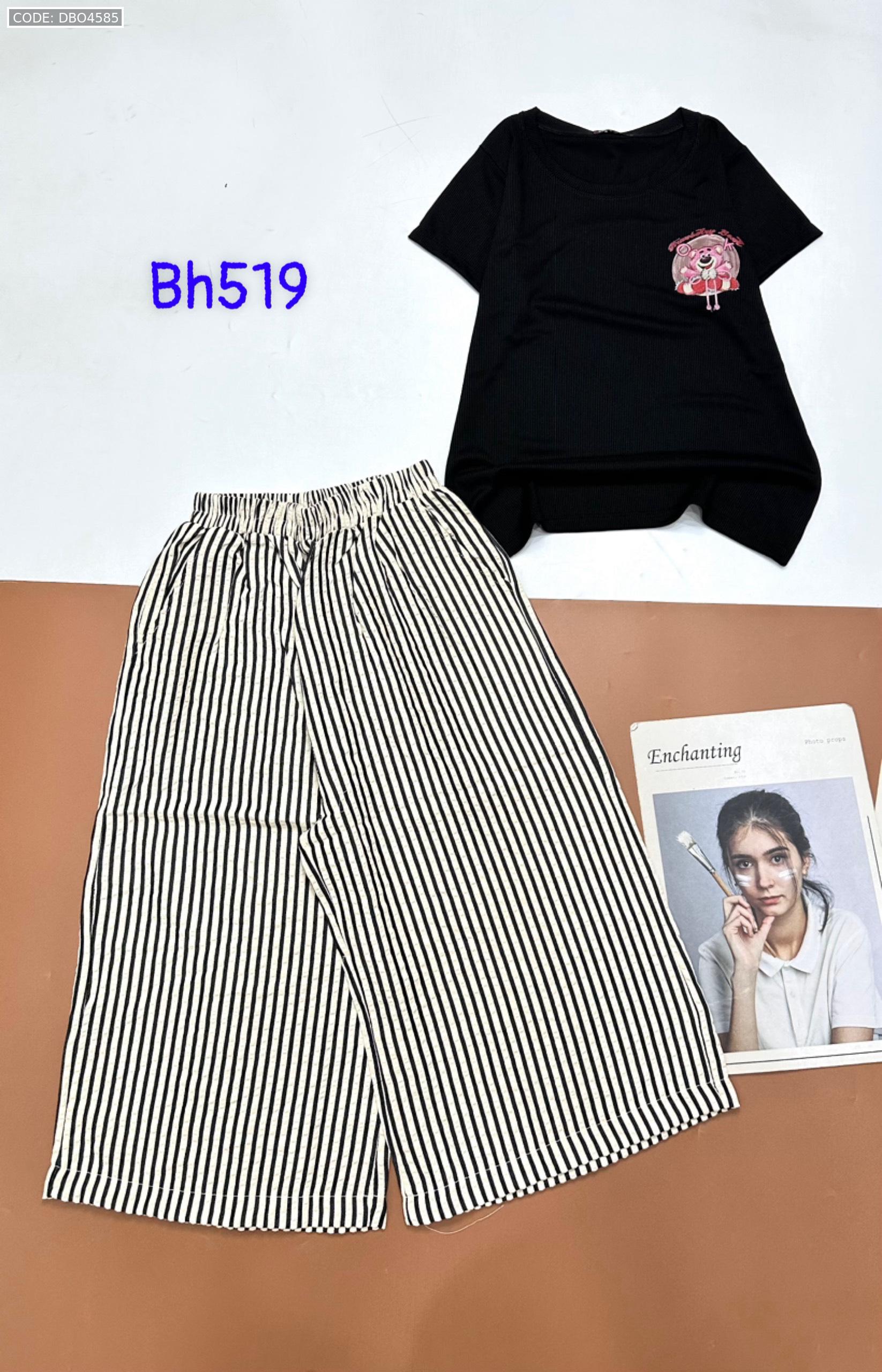 Đồ bộ quần lửng sọc áo tay ngắn in mèo mặt cười gấu