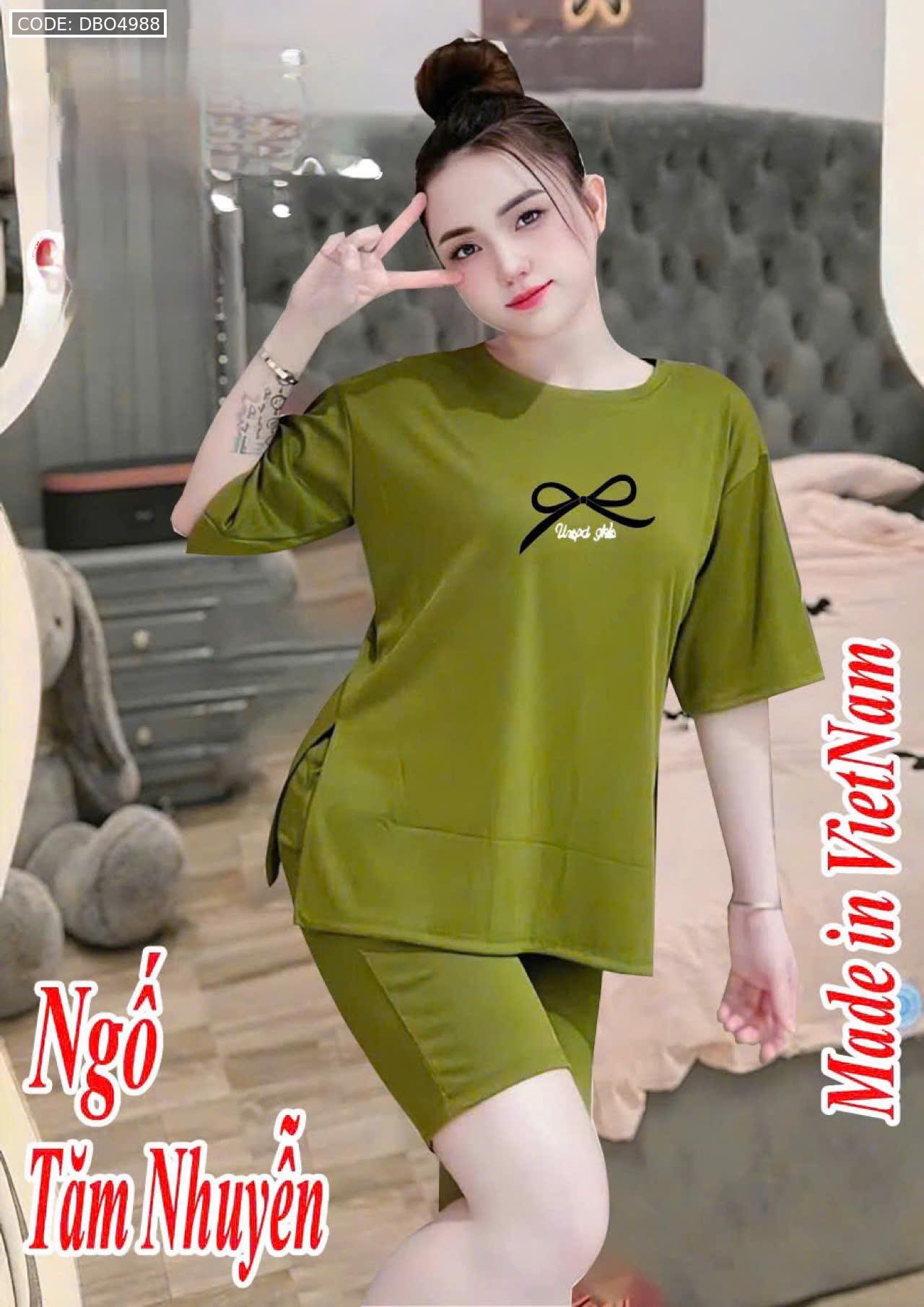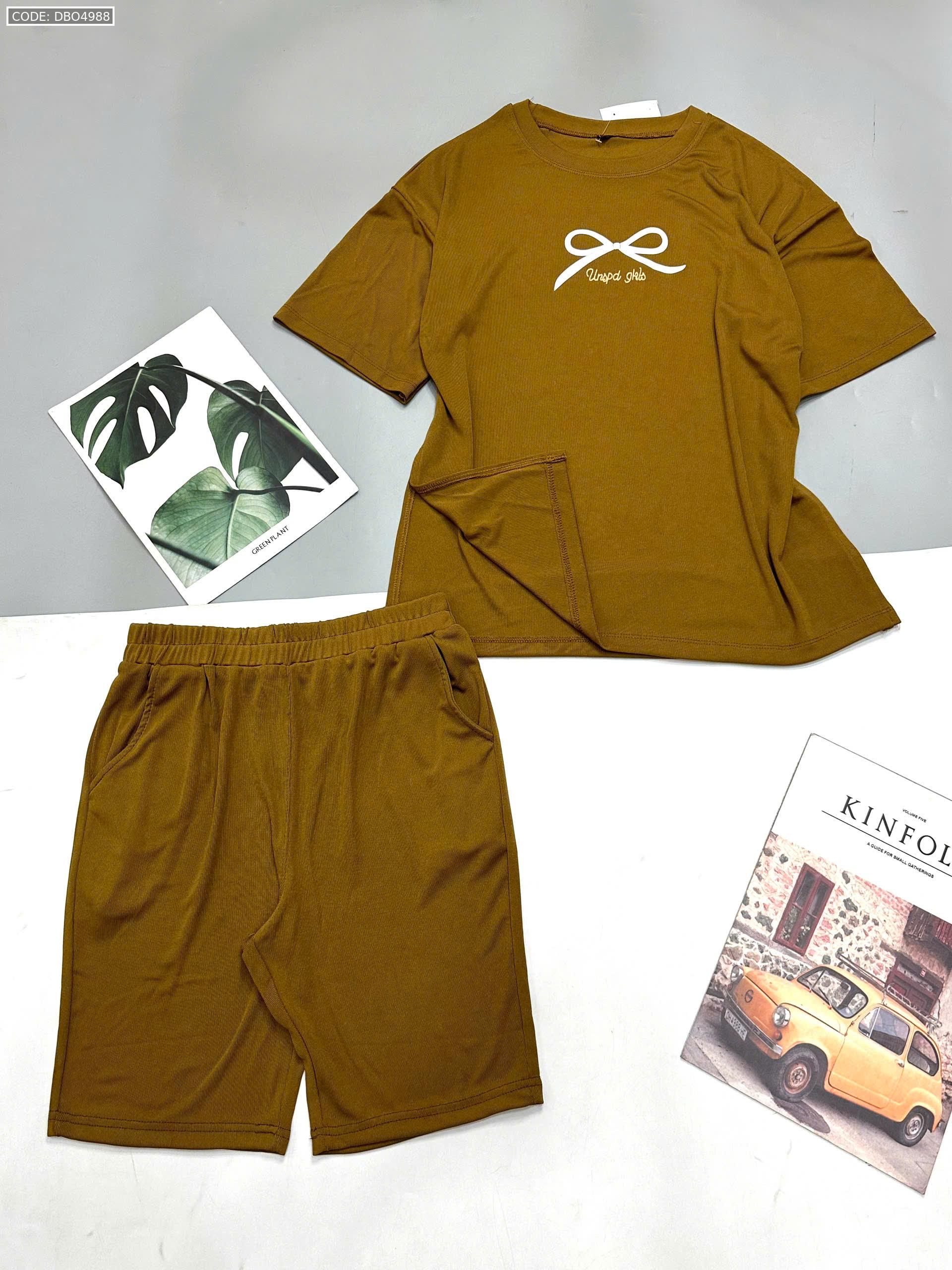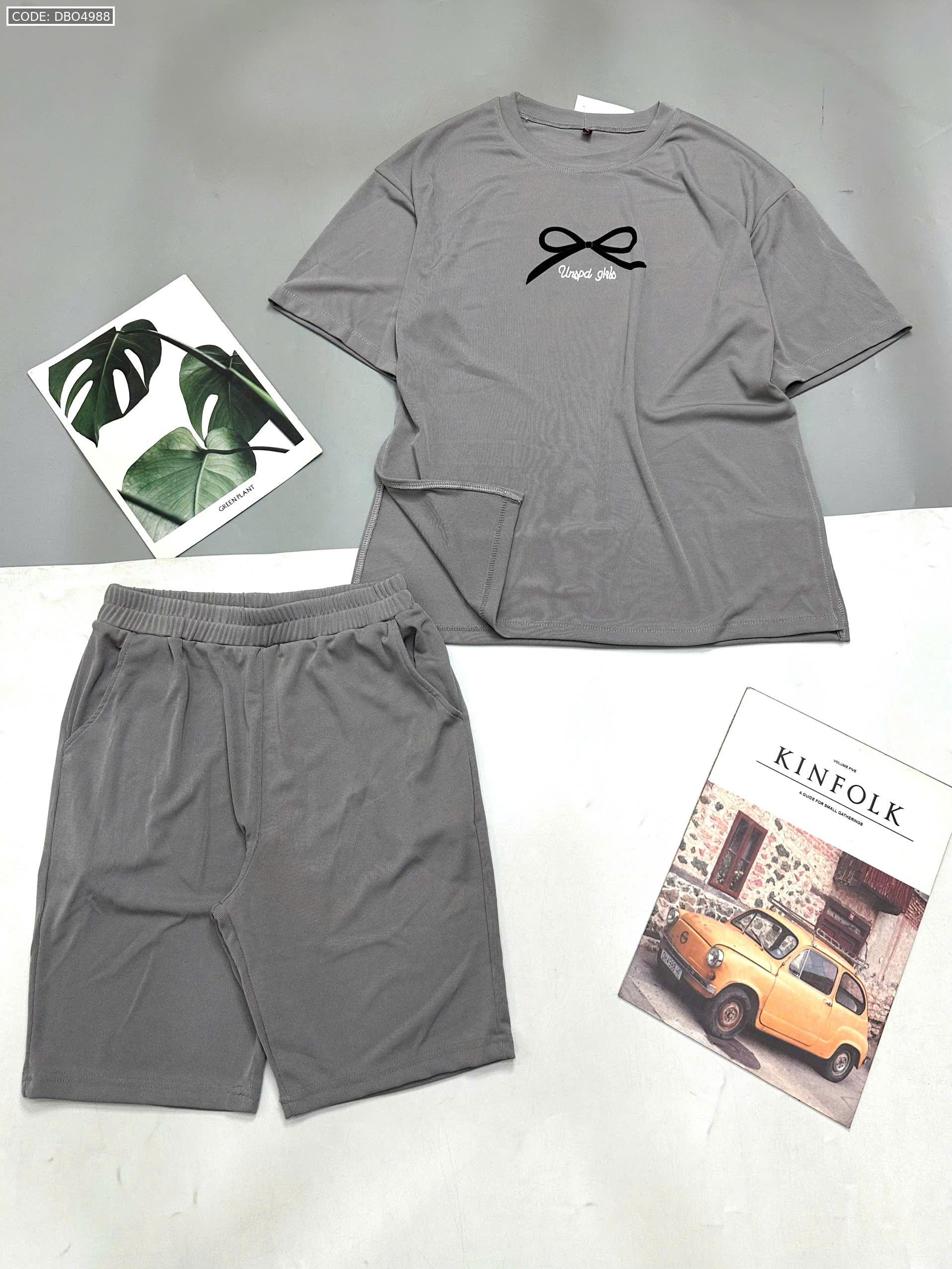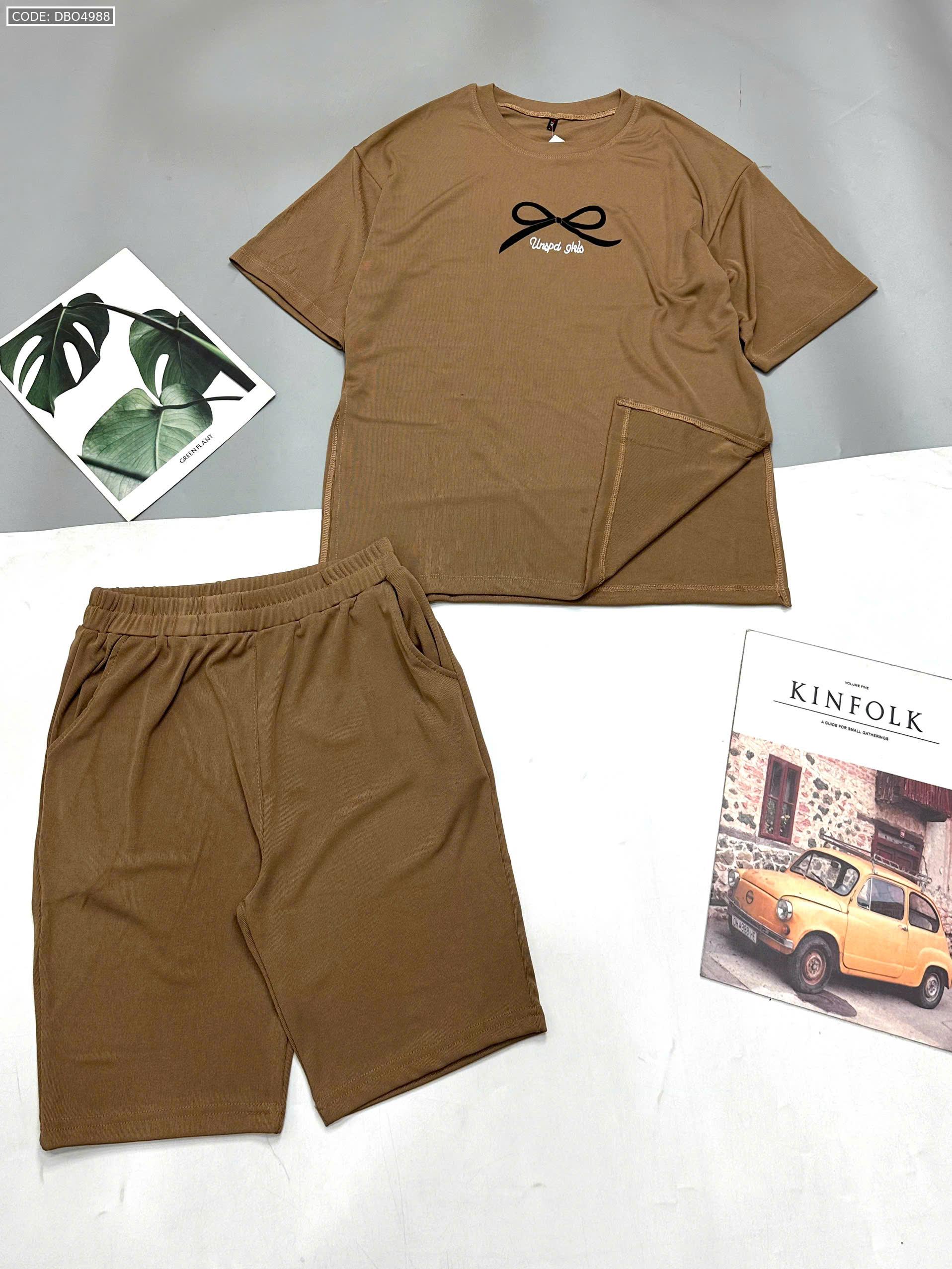 Đồ bộ quần ngố áo tay ngắn tăm nhuyễn xẻ tà nơ