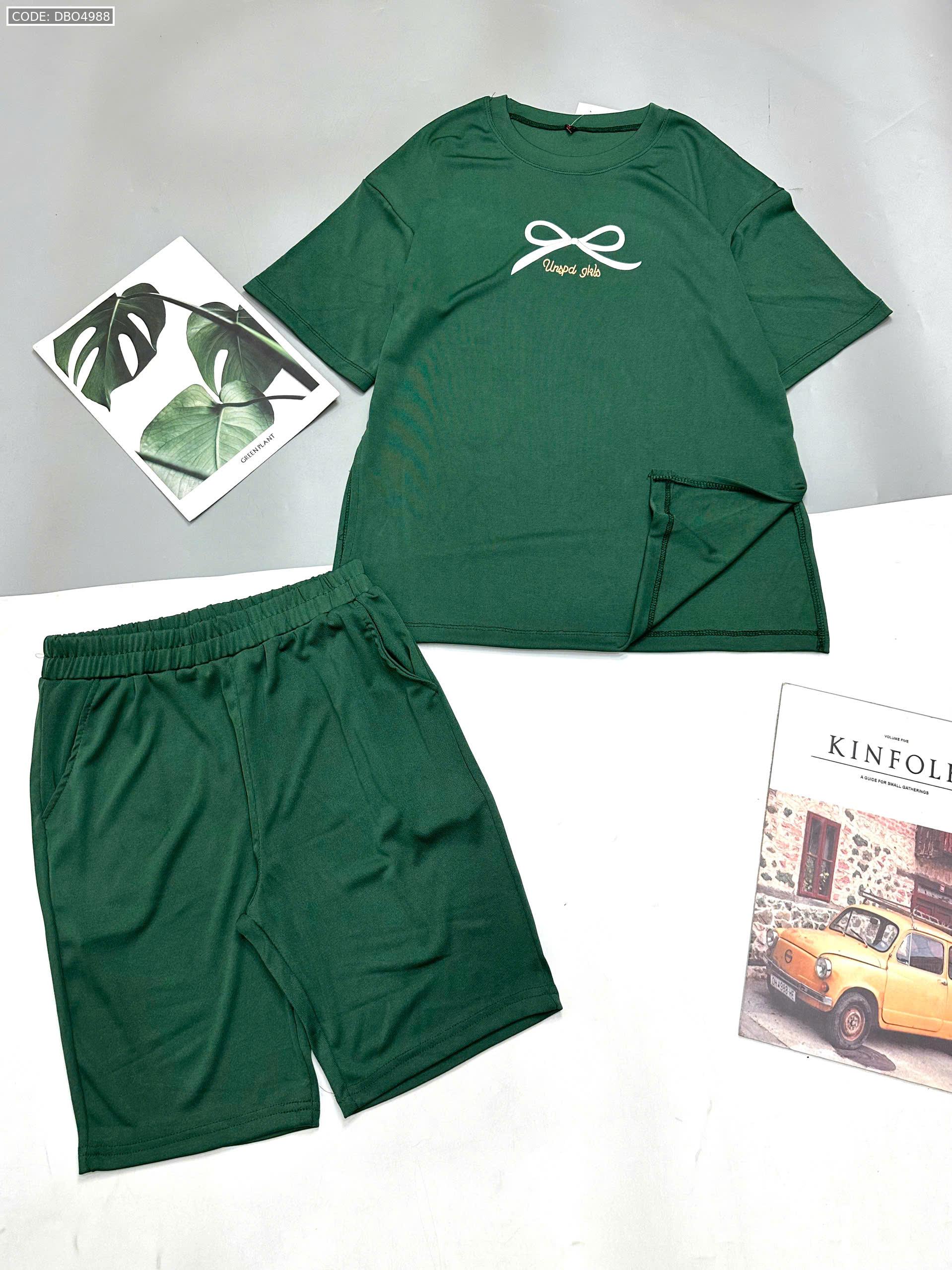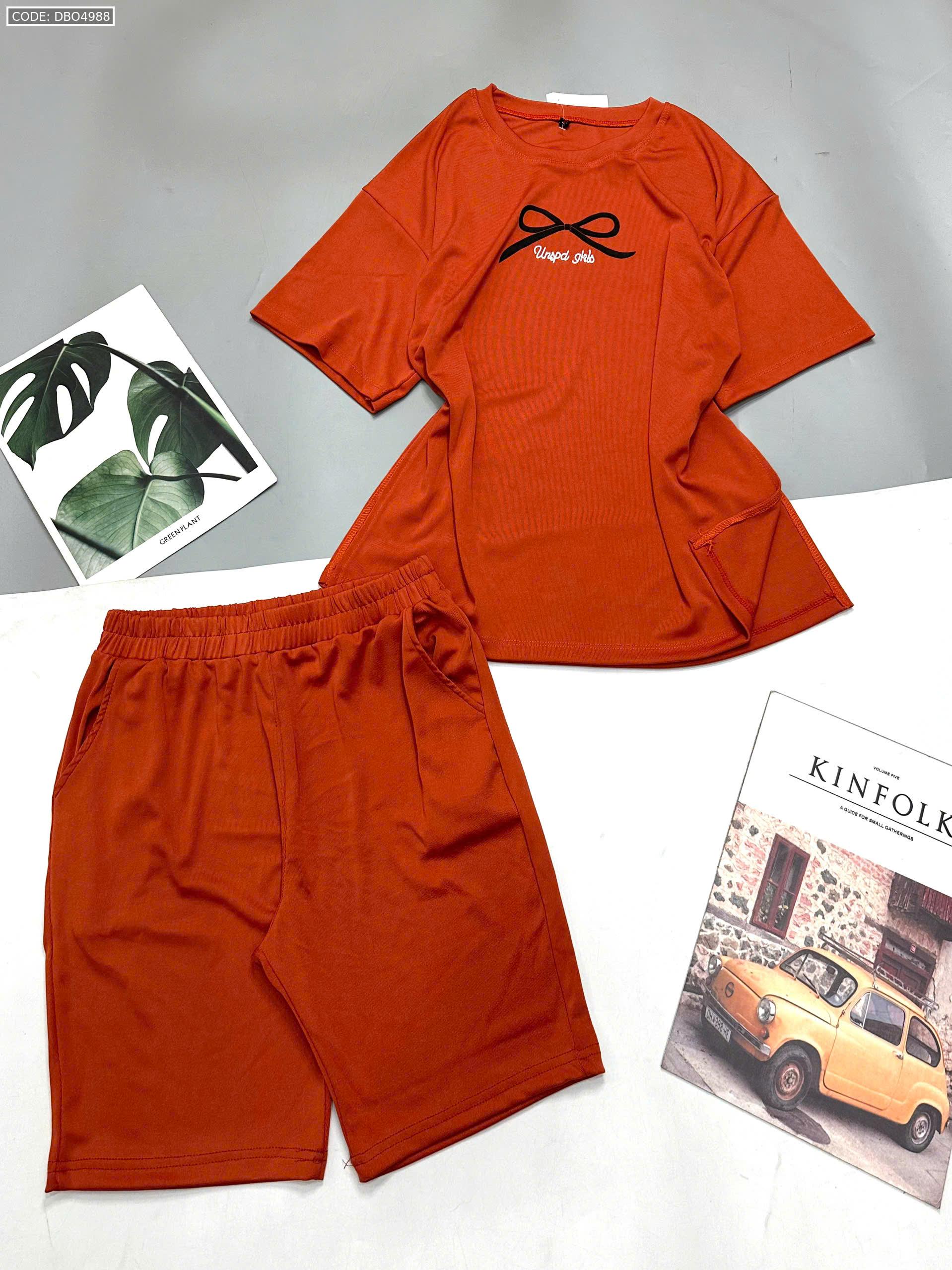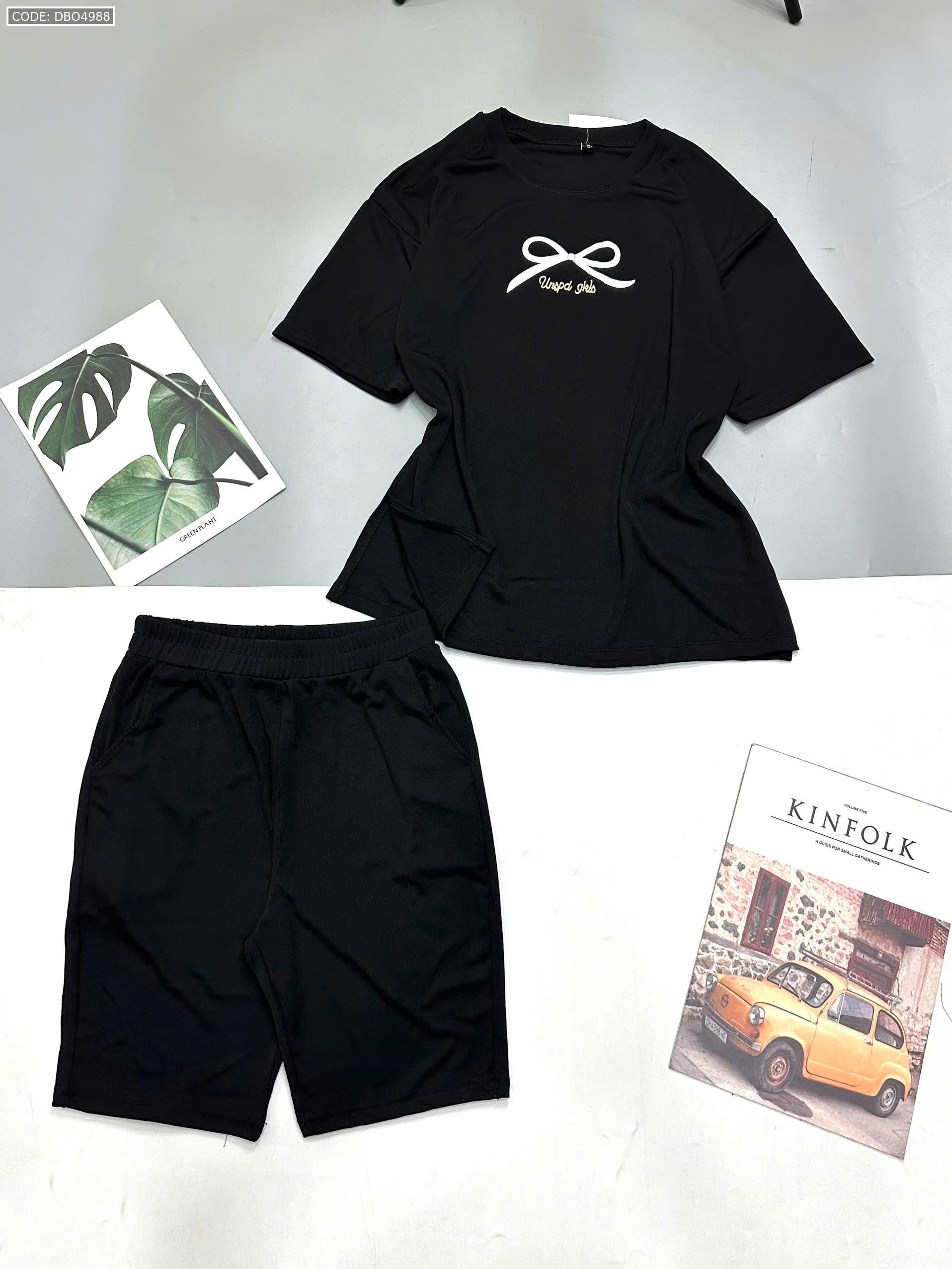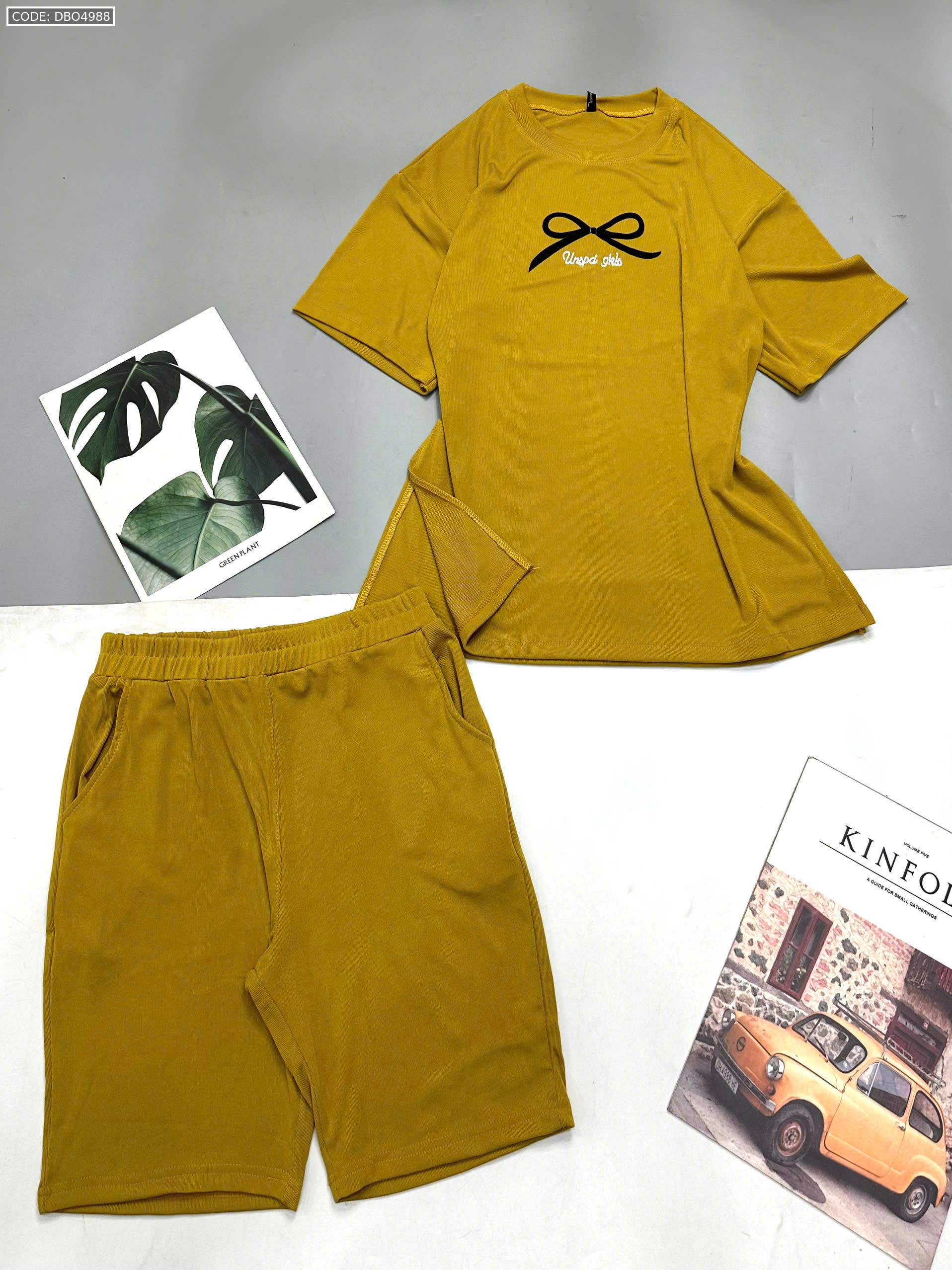 Đồ bộ quần ngố áo tay ngắn tăm nhuyễn xẻ tà nơ