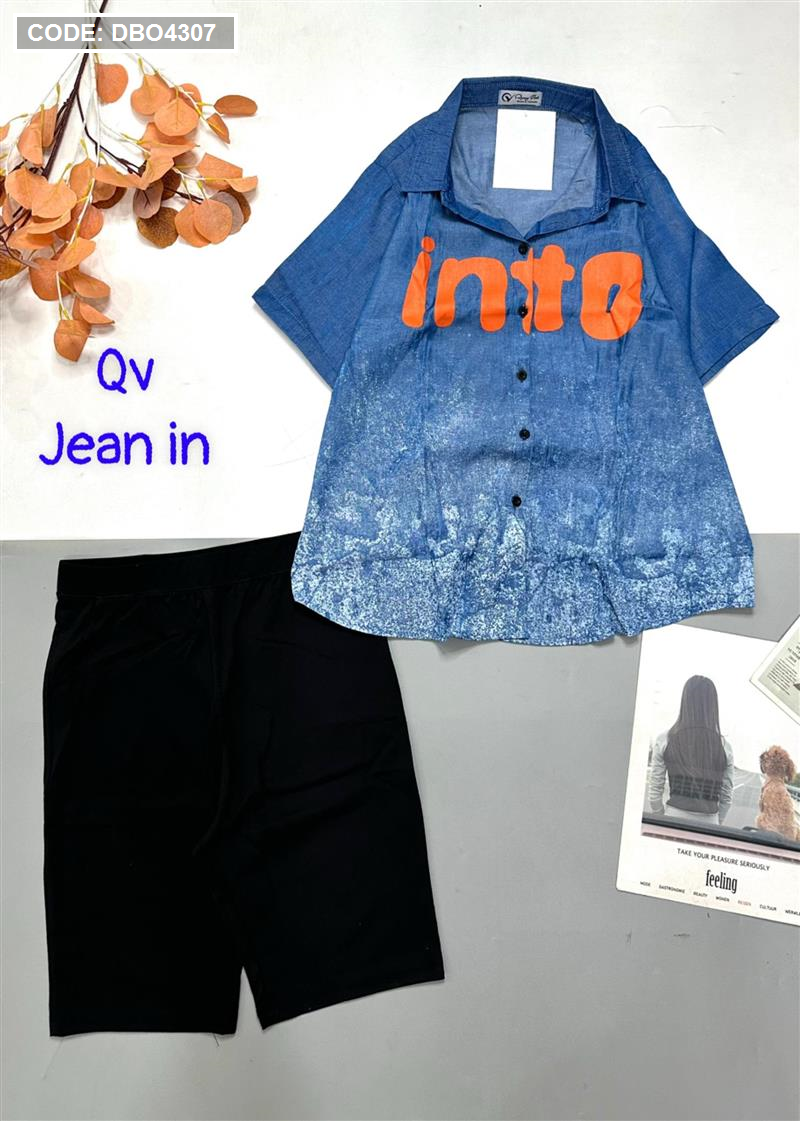 Chất liệu jean in, form 40-55kg vừa tùy chiều cao