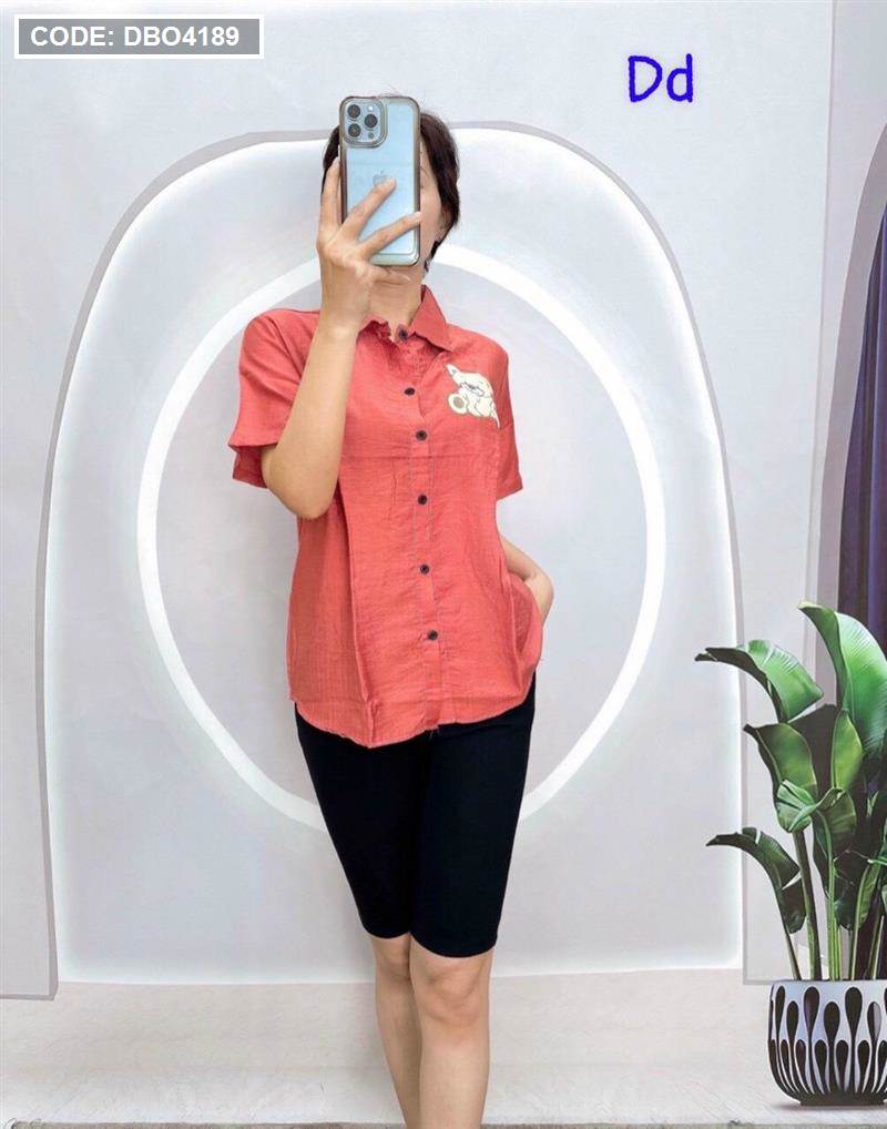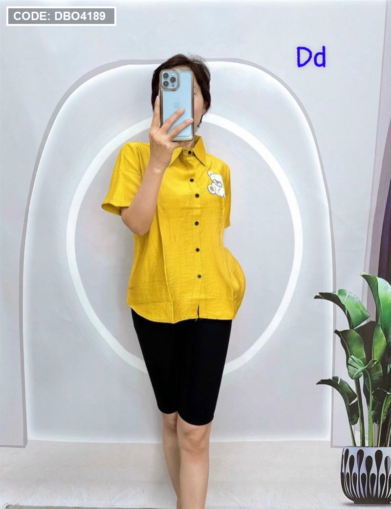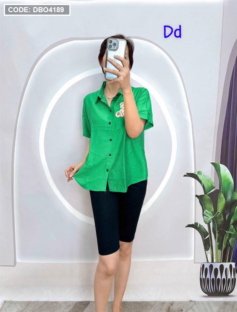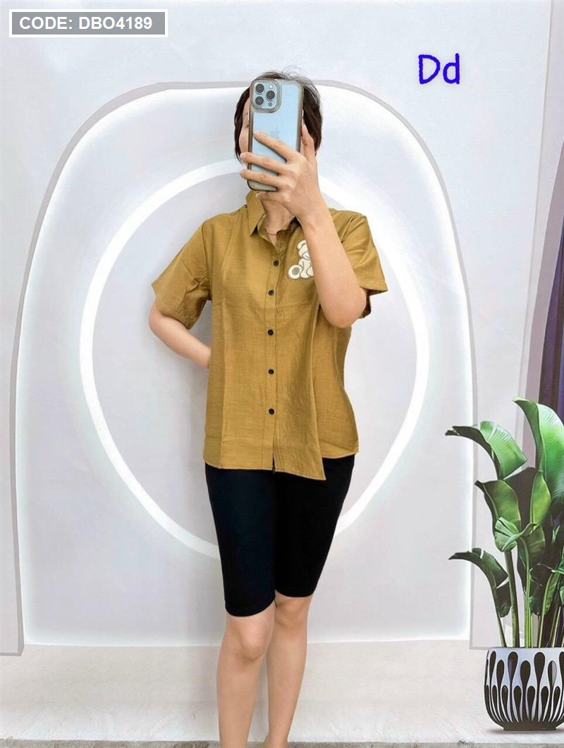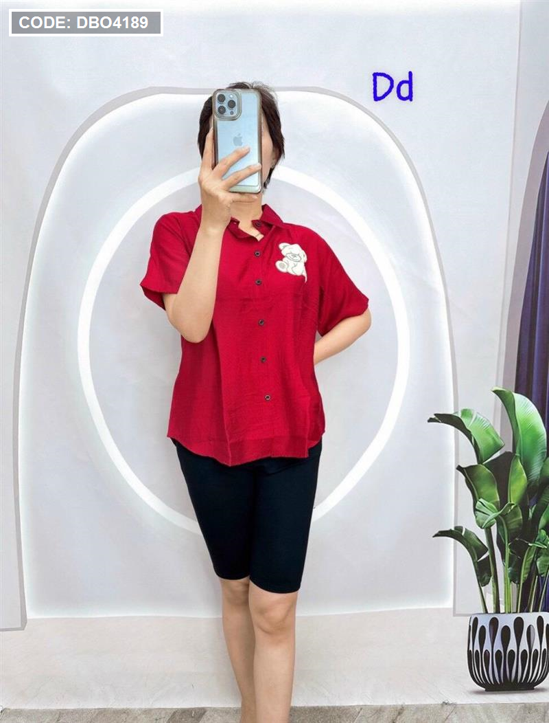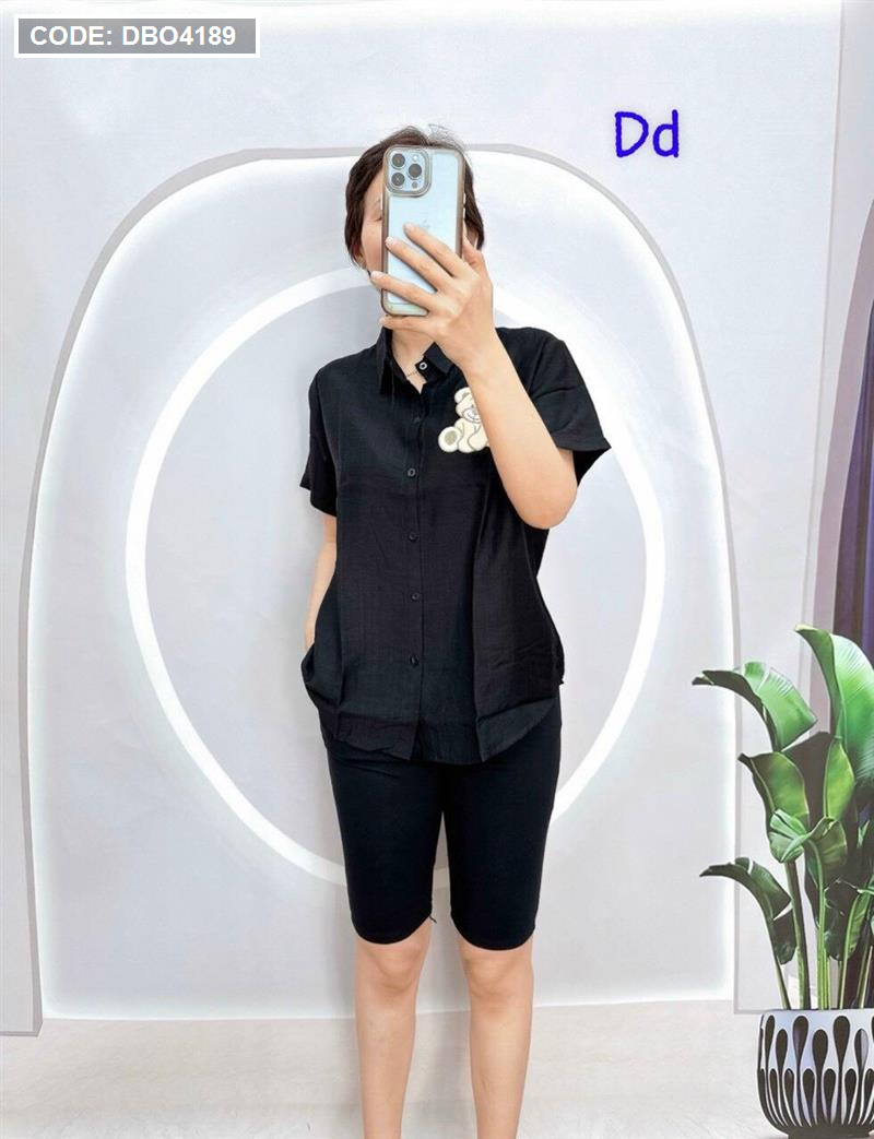 Đồ bộ quần ngố đen áo sơ mi tay ngắn in hình