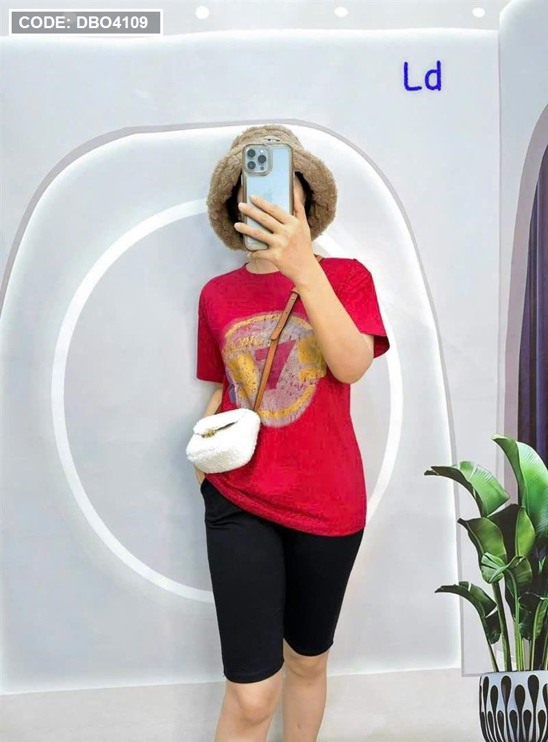 Đồ bộ quần ngố đen áo tay ngắn cổ tròn in chữ