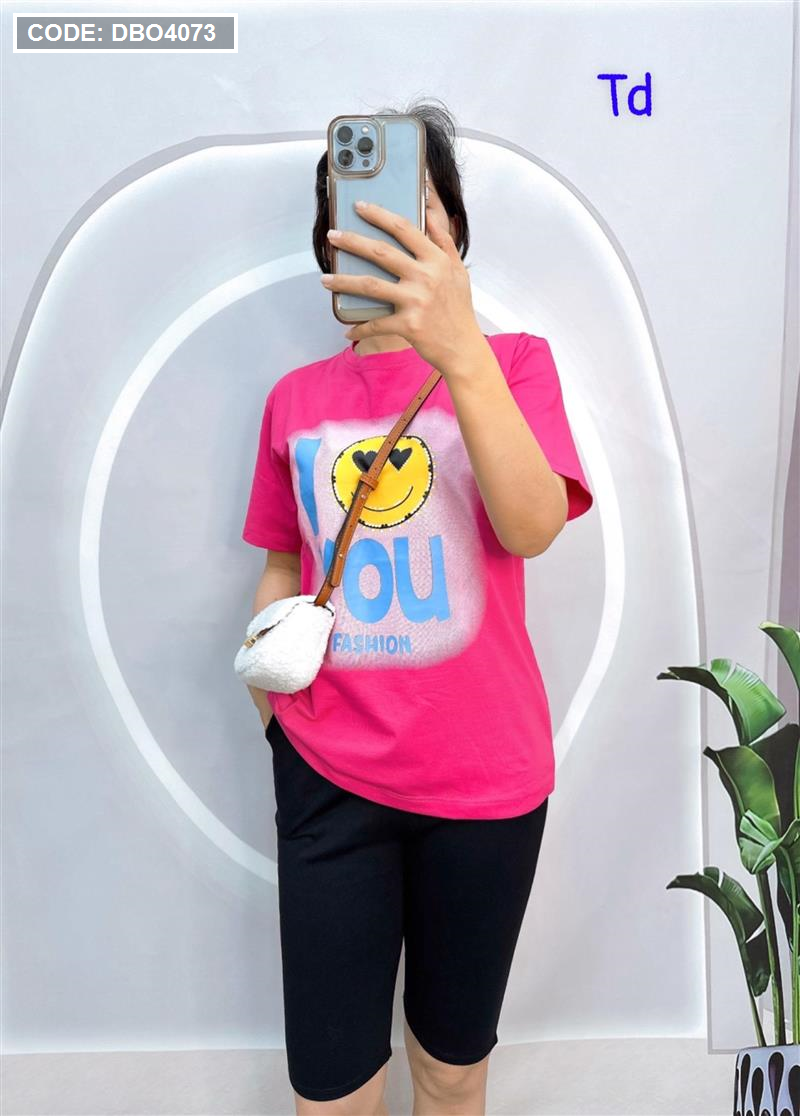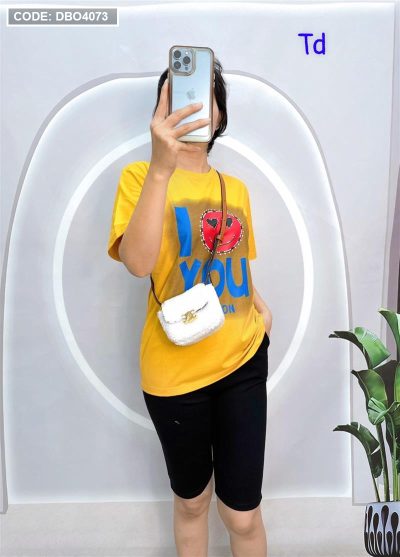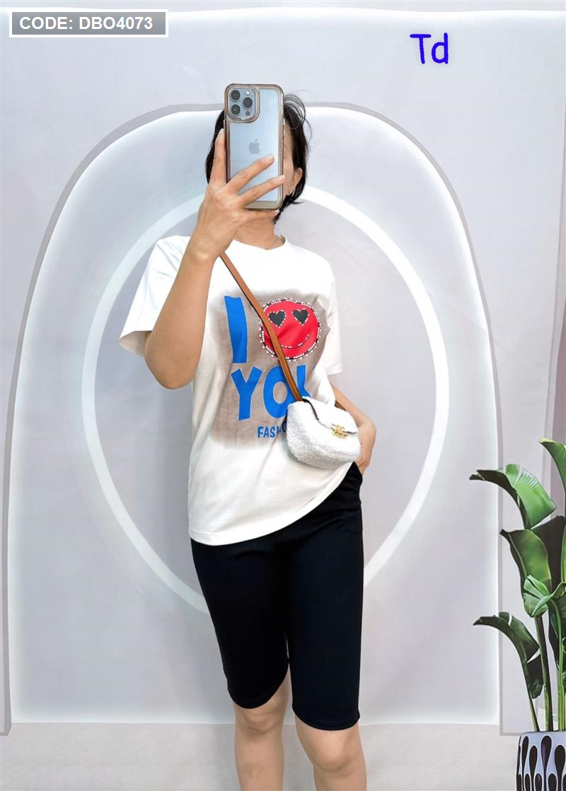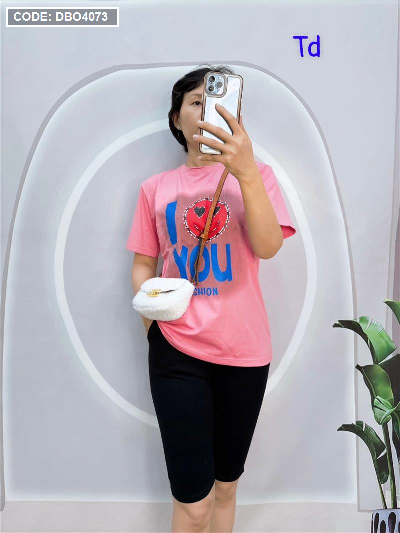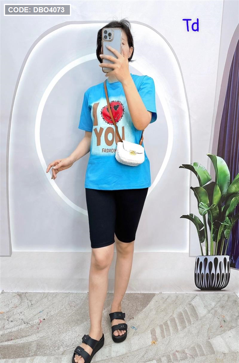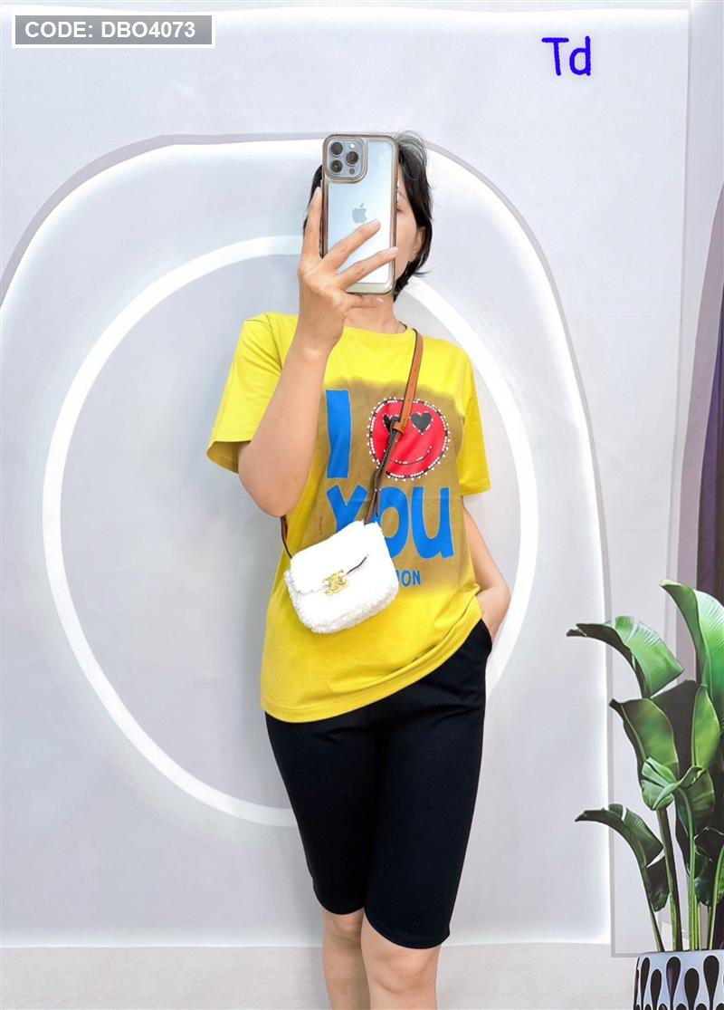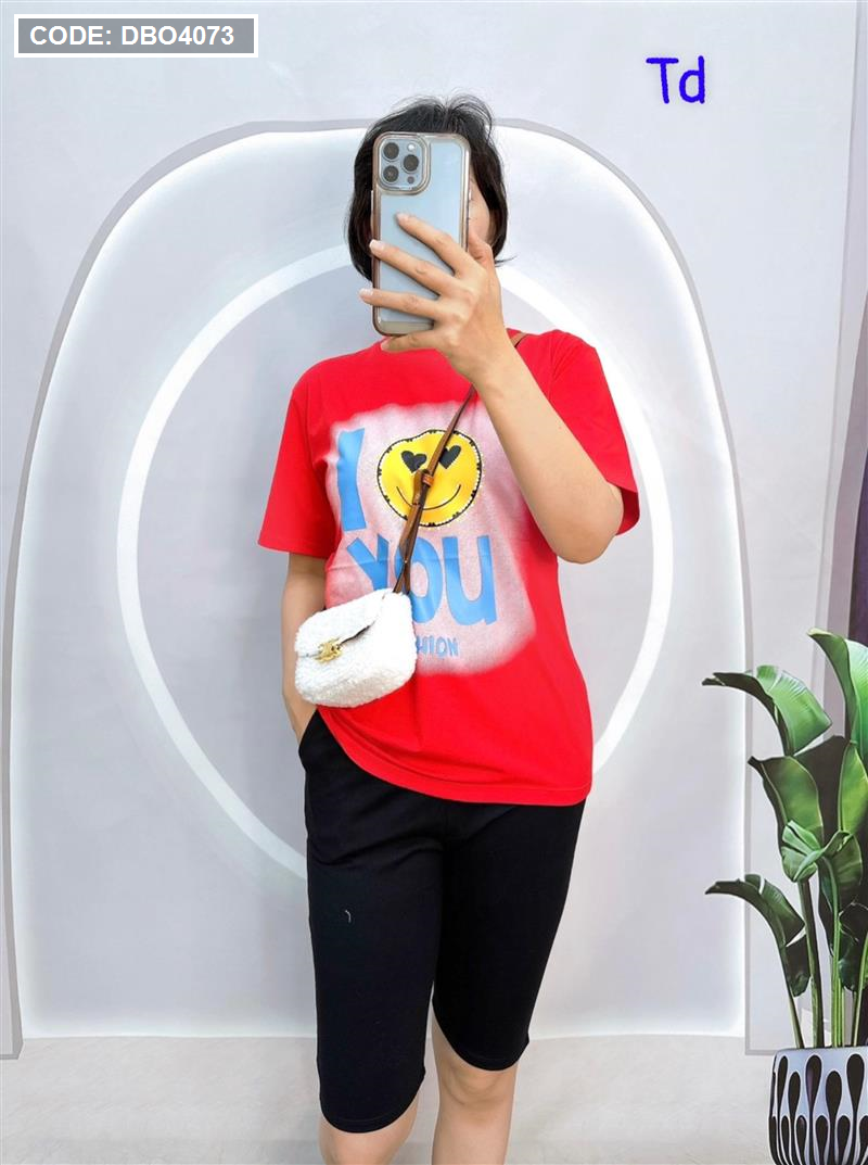 Đồ bộ quần ngố đen áo tay ngắn in chữ